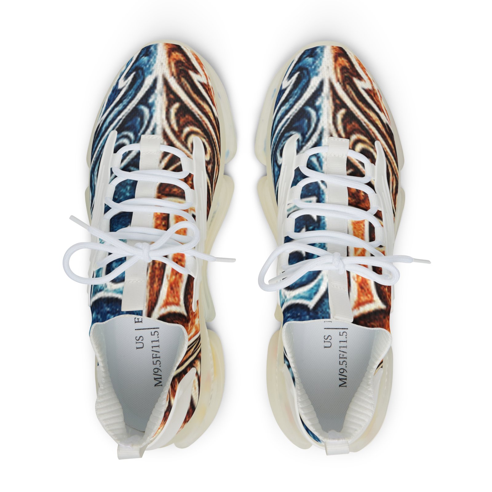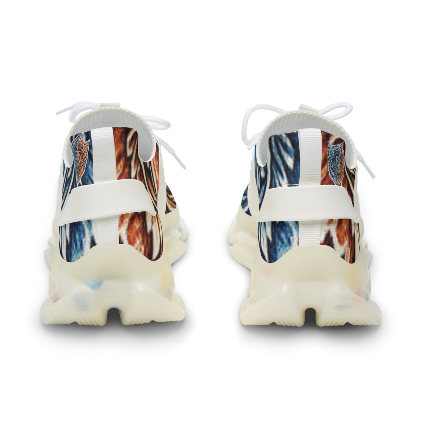 These mesh sneakers bring bold, flowing color to every step. Lightweight EVA cushioning and a breathable deodorant memory foam insole keep feet cool and supported during long days on the move. The all-over print wraps the knit polyester upper in an organic, marbled pattern that reads like street-art or abstract waves, while durable KPU overlays add sculpted structure and weather-resistant detailing. Lace-up closure and choice of black or white trim let you dial the contrast. Wear them when you want footwear that feels as energetic and mobile as your day—from city walks and gallery visits to weekend adventures that start at sunrise. Product features – Lightweight EVA sole with shock-absorbing layer – Breathable deodorant memory-foam insole for cooling comfort – All-over printed mesh-knit polyester upper – Durable weather-resistant KPU decorative overlays – Lace-up closure with black or white stitching/trim variants Care instructions – To maintain clean, use warm water with dish soap to clean off any dirt spots. It’s not necessary to soak the whole item. For hard-to-clean spots, use a soft-bristled brush.