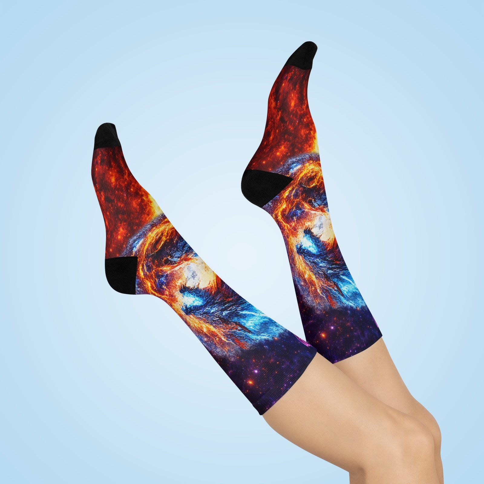 These socks are for people who chase wonder—stargazers, sci-fi fans, and anyone who likes their wardrobe to tell a story. Bring them out for night hikes, cozy movie marathons, con nights, or simply to brighten a routine morning. The intense colors and detailed print make these socks a small, joyful statement that blends comfort with a little cosmic drama.