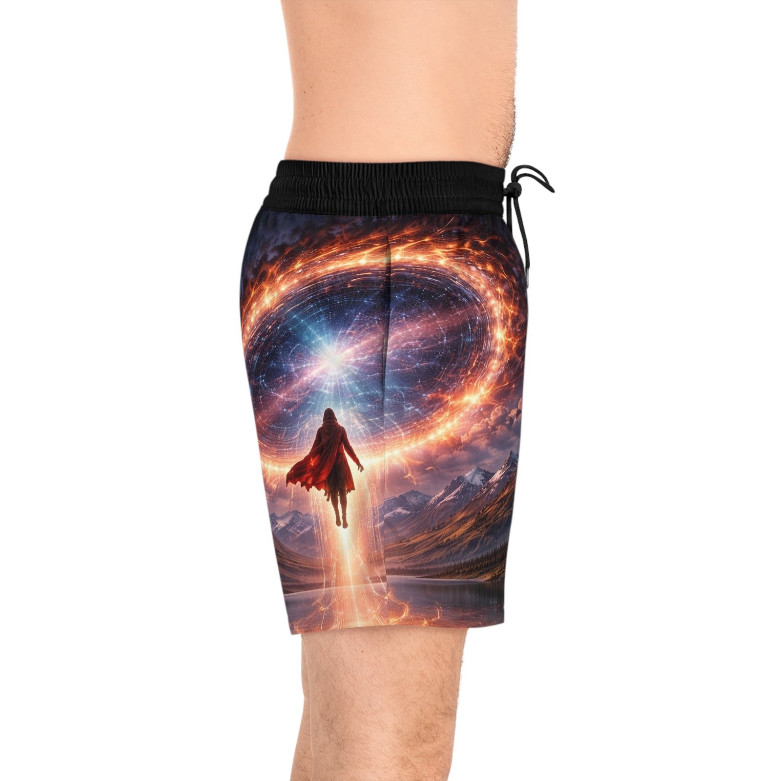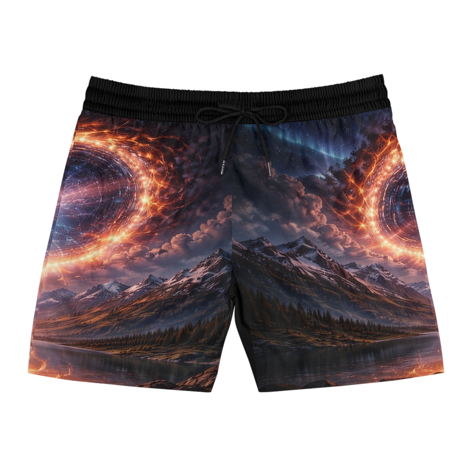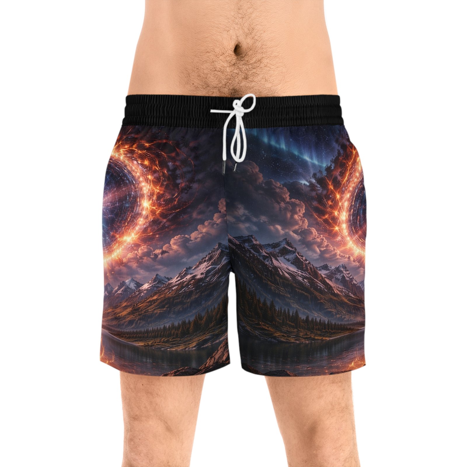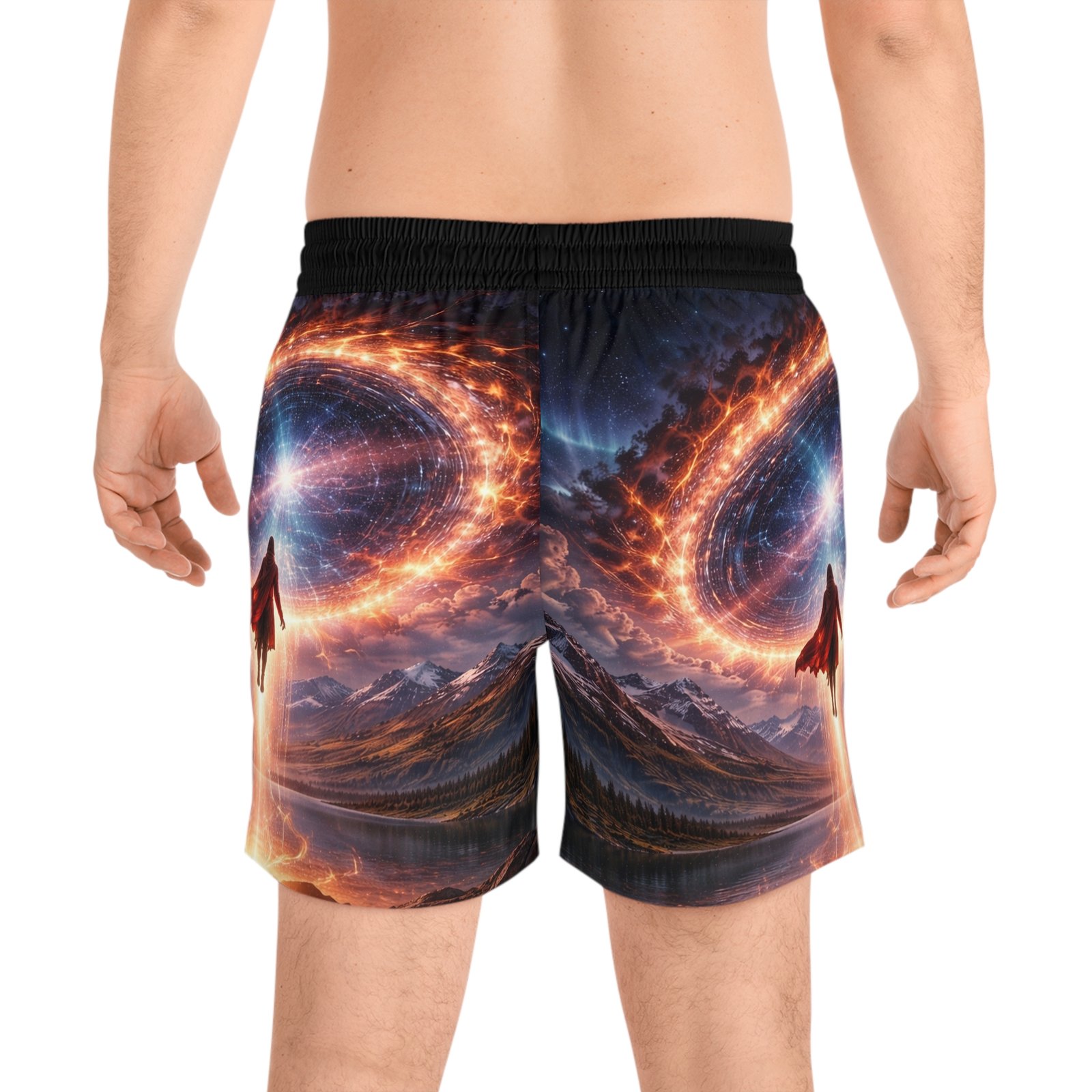 echoflame cosmic portal mountain scene swim shorts | superhero silhouetteEchoFlame Cosmic Portal Mountain Scene Swim Shorts | Superhero Silhouette