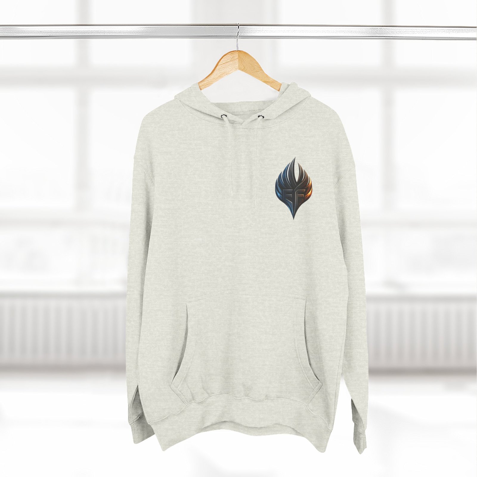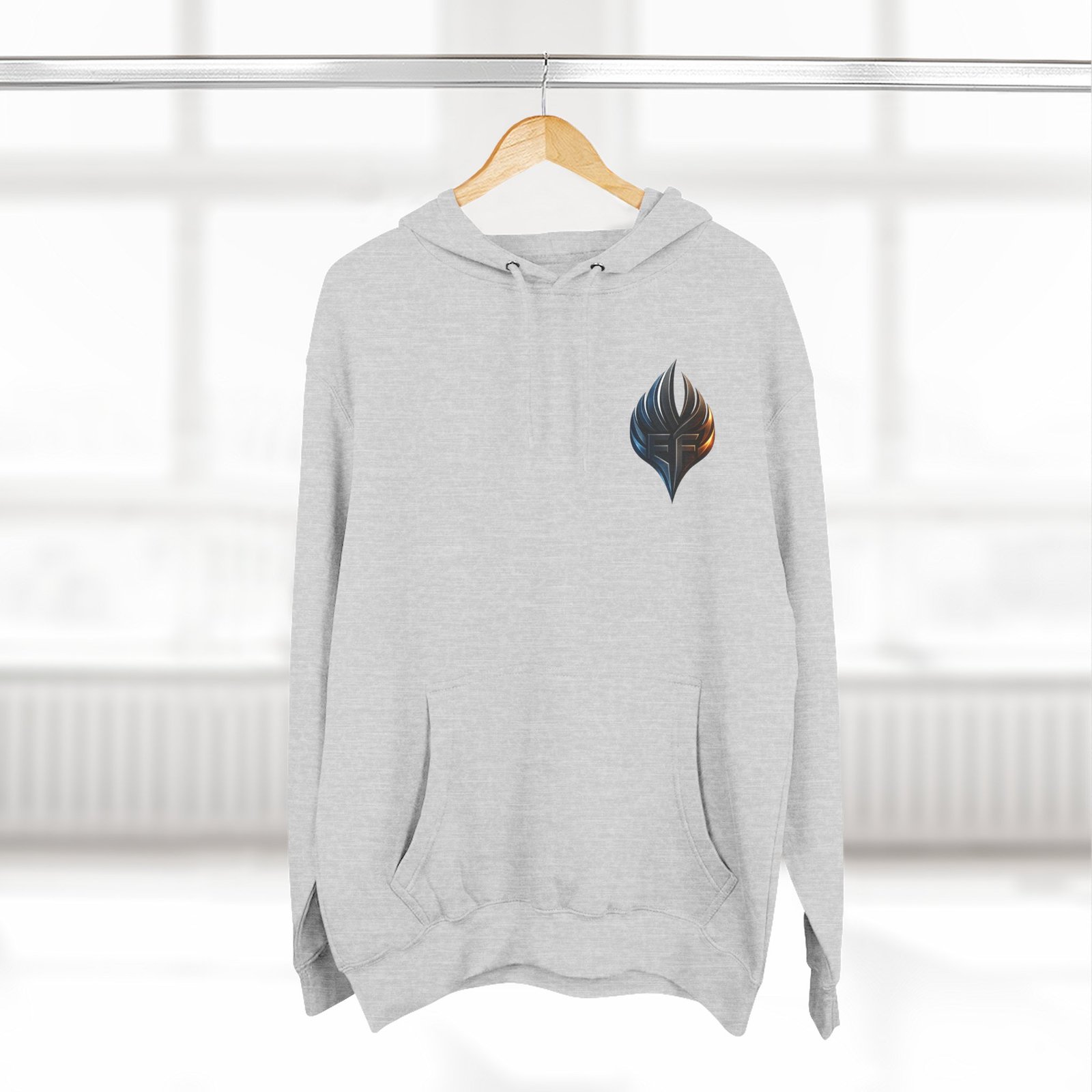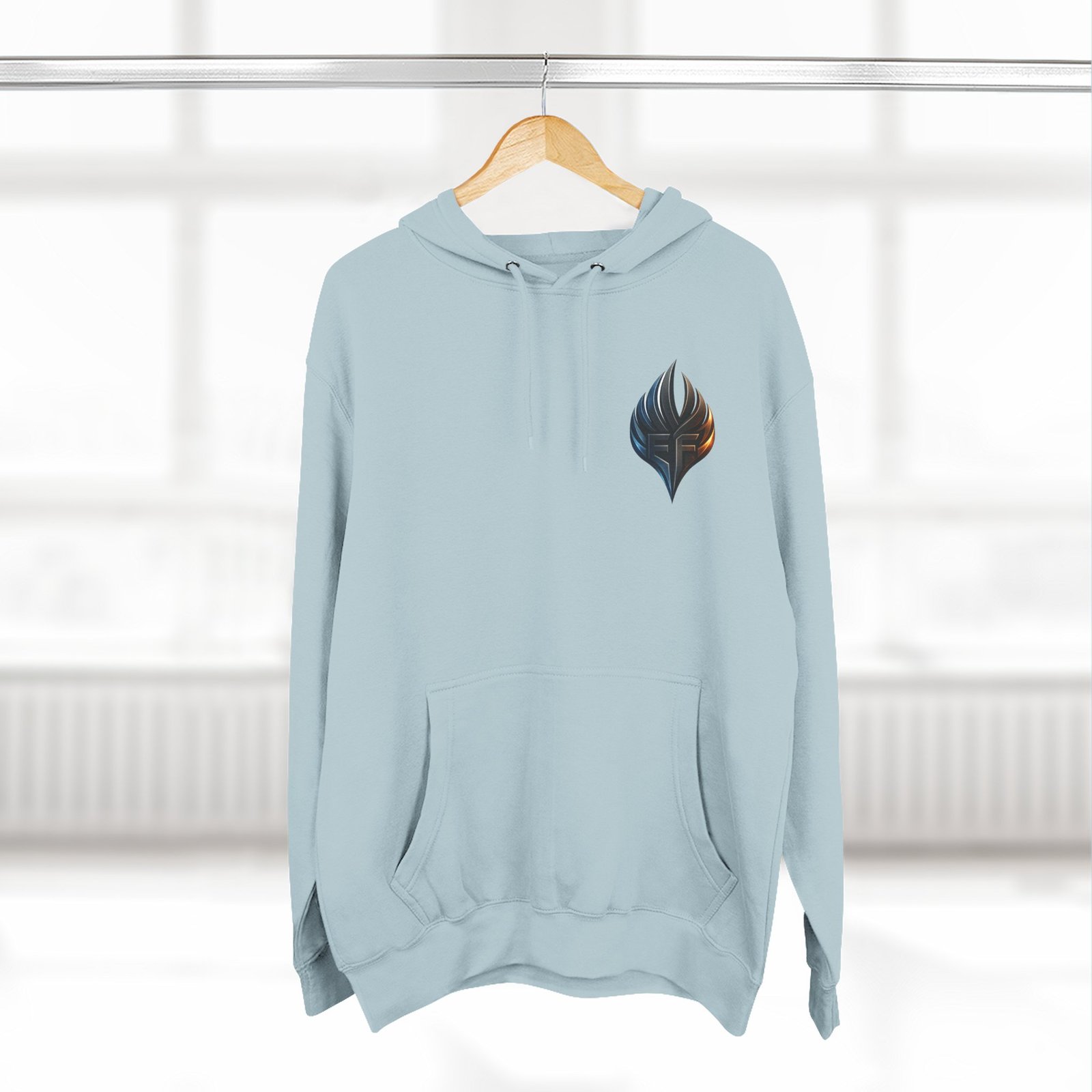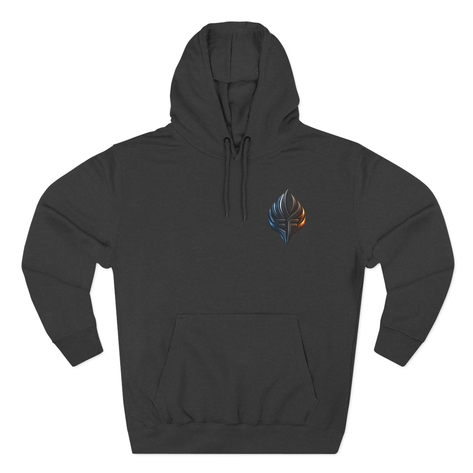 This mid-weight fleece hoodie carries a quiet confidence—soft, structured, and ready for everyday wear. The sculpted emblem on the chest blends metallic blues and warm copper tones, giving the piece an urban-armor vibe that reads modern and intentional. The roomy kangaroo pocket and adjustable hood keep you comfortable on cool mornings or late-night walks. Subtle details—twill neck tape, double-needle topstitching, and the option for embroidered placement—lift the garment beyond basic streetwear into something you’ll reach for when you want to feel put-together without trying too hard. It fits true to size with a regular cut, holds its shape through light wear, and retains its softness after washing.