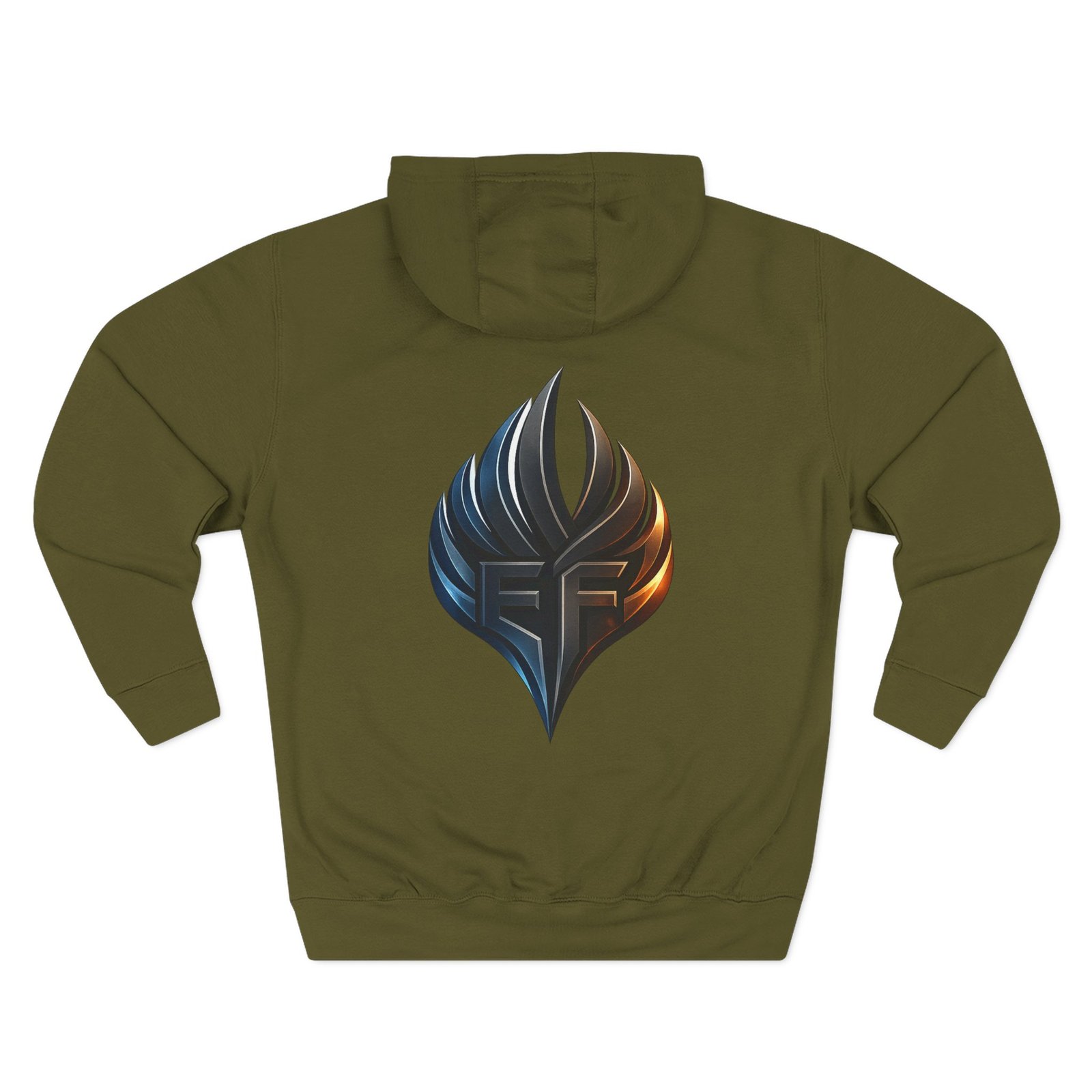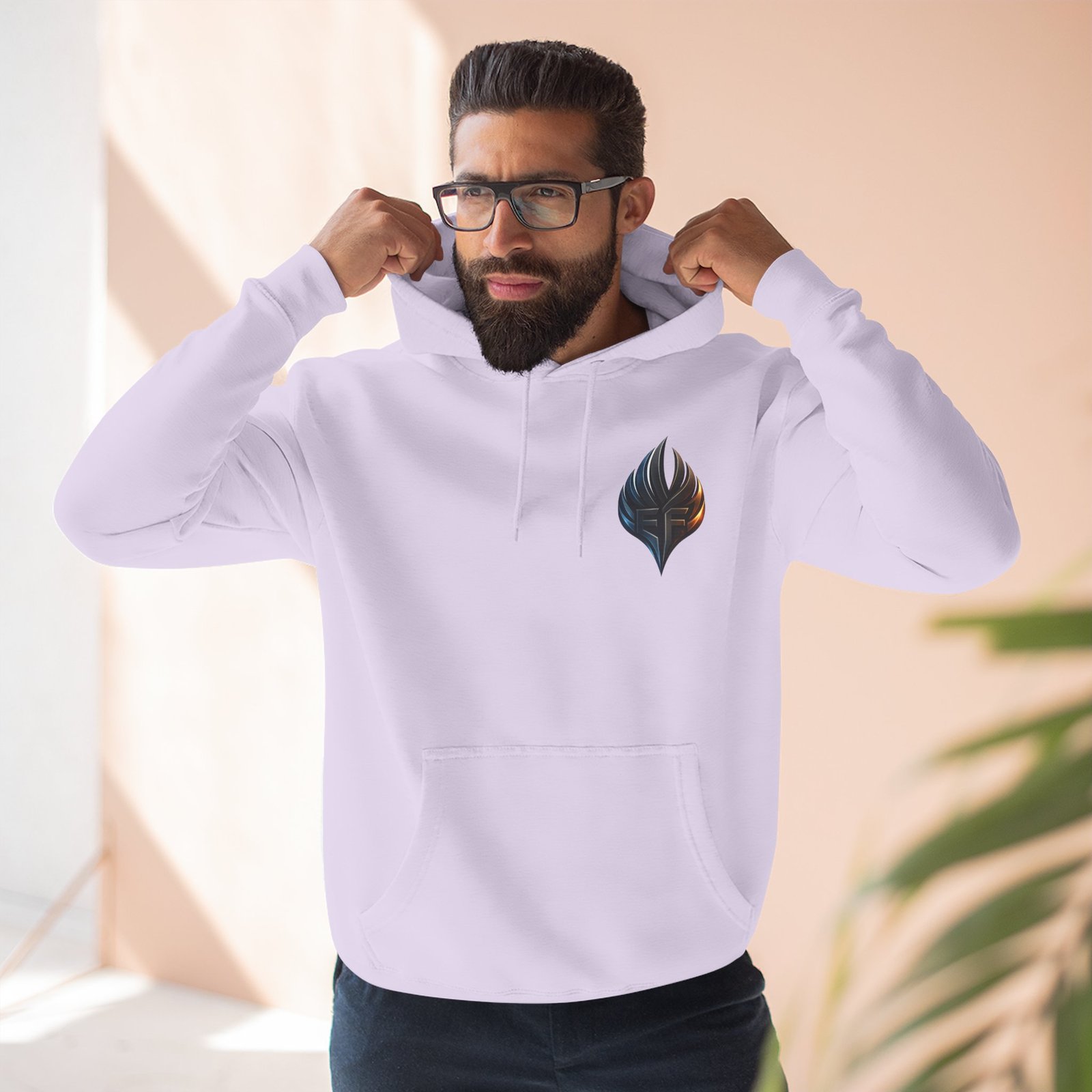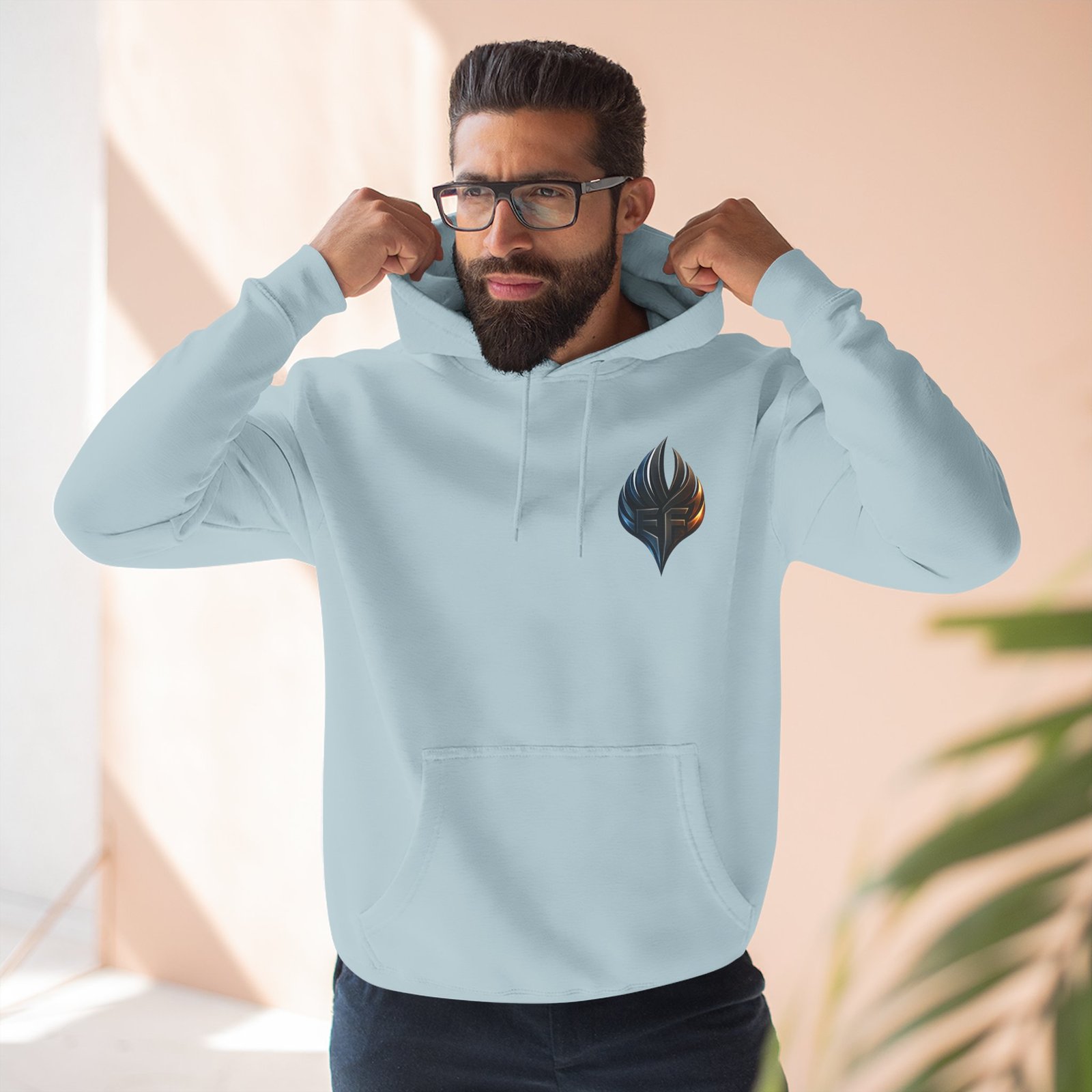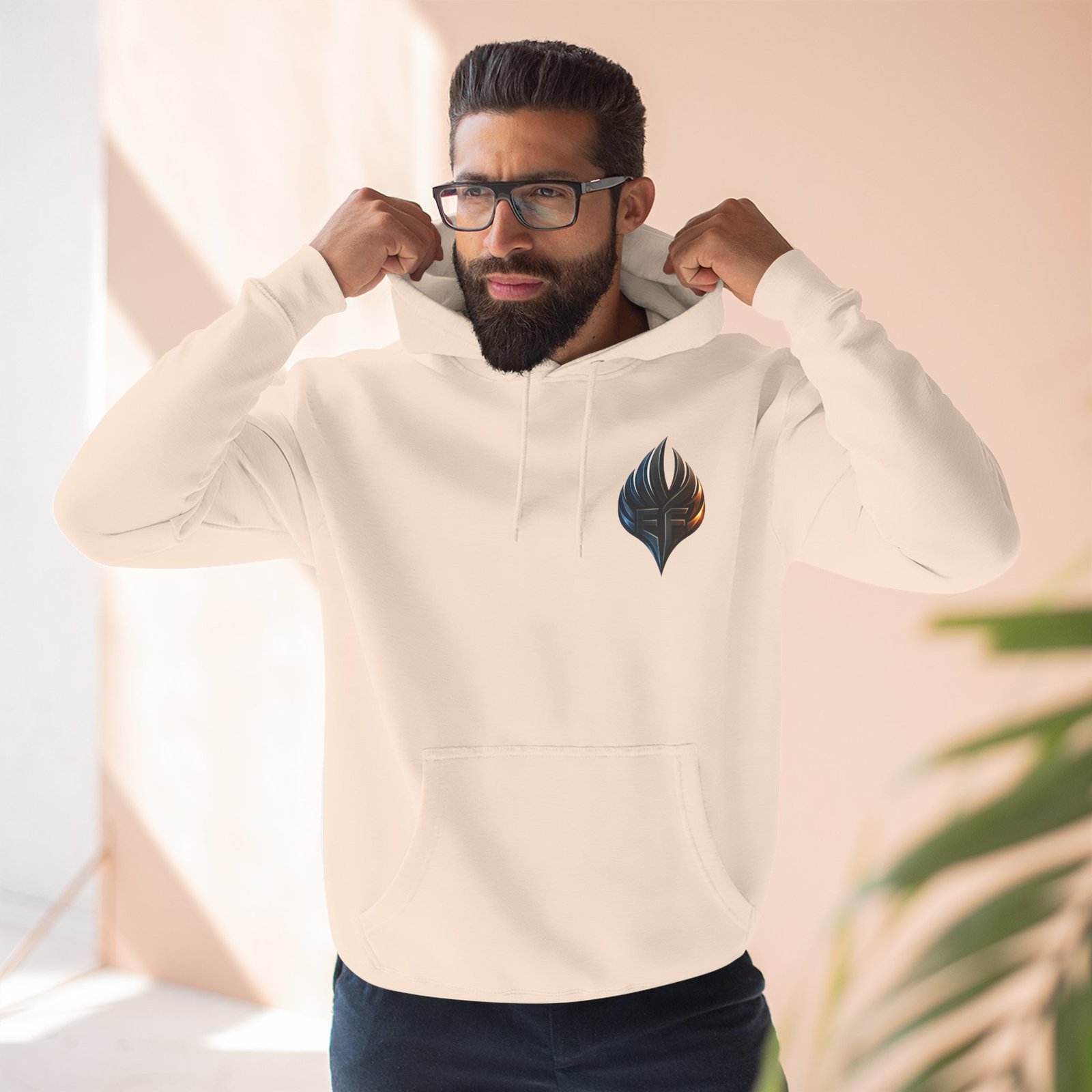 This mid-weight fleece hoodie carries a quiet confidence—soft, structured, and ready for everyday wear. The sculpted emblem on the chest blends metallic blues and warm copper tones, giving the piece an urban-armor vibe that reads modern and intentional. The roomy kangaroo pocket and adjustable hood keep you comfortable on cool mornings or late-night walks. Subtle details—twill neck tape, double-needle topstitching, and the option for embroidered placement—lift the garment beyond basic streetwear into something you’ll reach for when you want to feel put-together without trying too hard. It fits true to size with a regular cut, holds its shape through light wear, and retains its softness after washing.