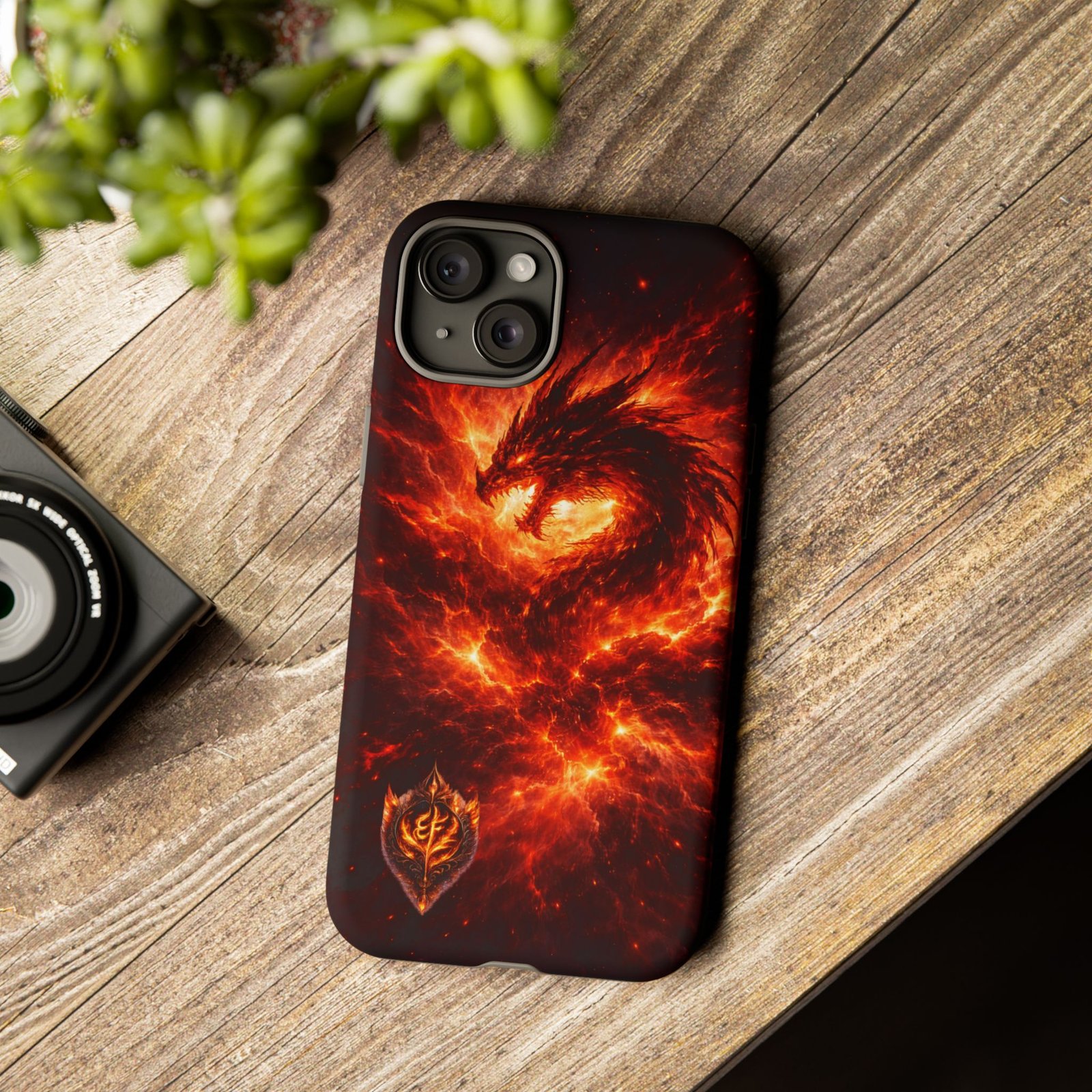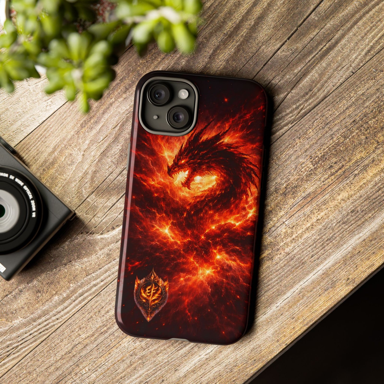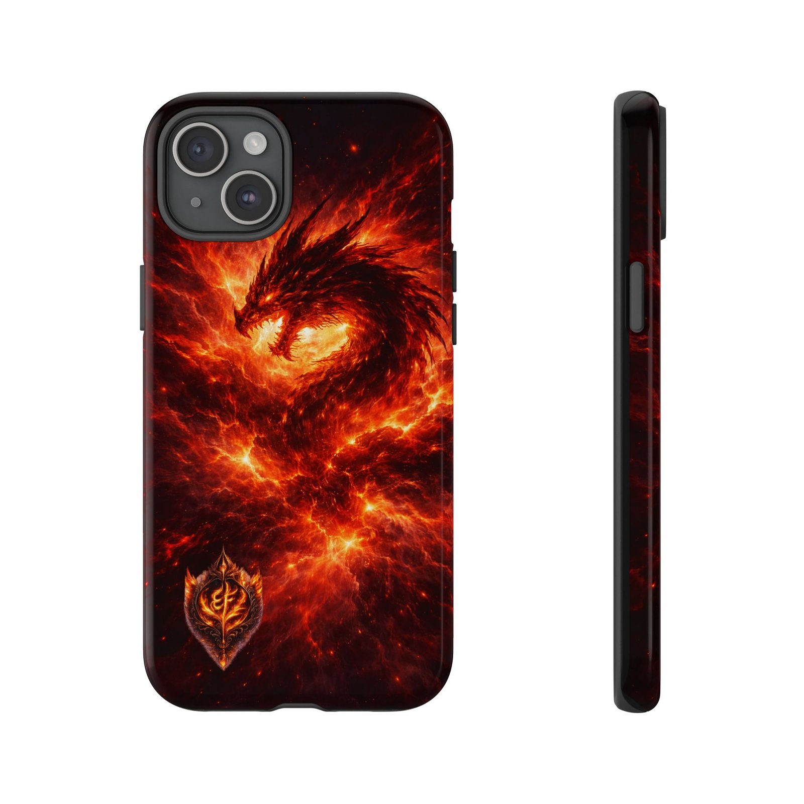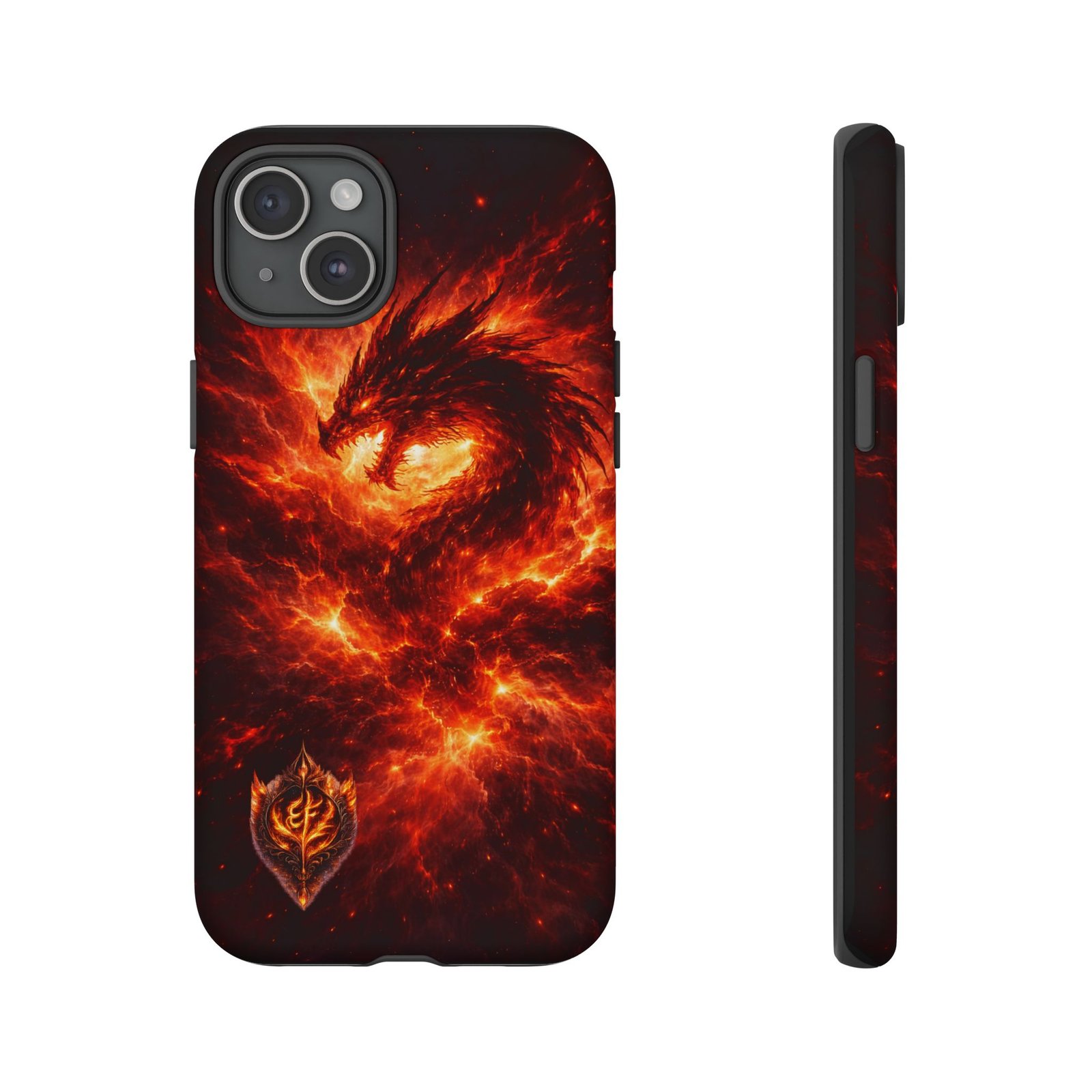 This protective phone case brings raw, elemental energy to your pocket. Deep, molten swirls of ember and flame form a feathered phoenix-like shape that seems to rise from the case’s surface—bold, dark, and intense. The dual-layer build (rigid polycarbonate shell with a TPU silicone liner) cushions shocks while the full 3D wrap print maintains vivid color and fine detail. Weather-resistant inks and UV protection keep the image bright through everyday wear. Thoughtful cutouts preserve easy access to ports and wireless charging, while a glossy or matte finish lets you choose the exact look you want. It wears like armor but reads like a statement—made for someone who prefers their tech to look alive and fierce.