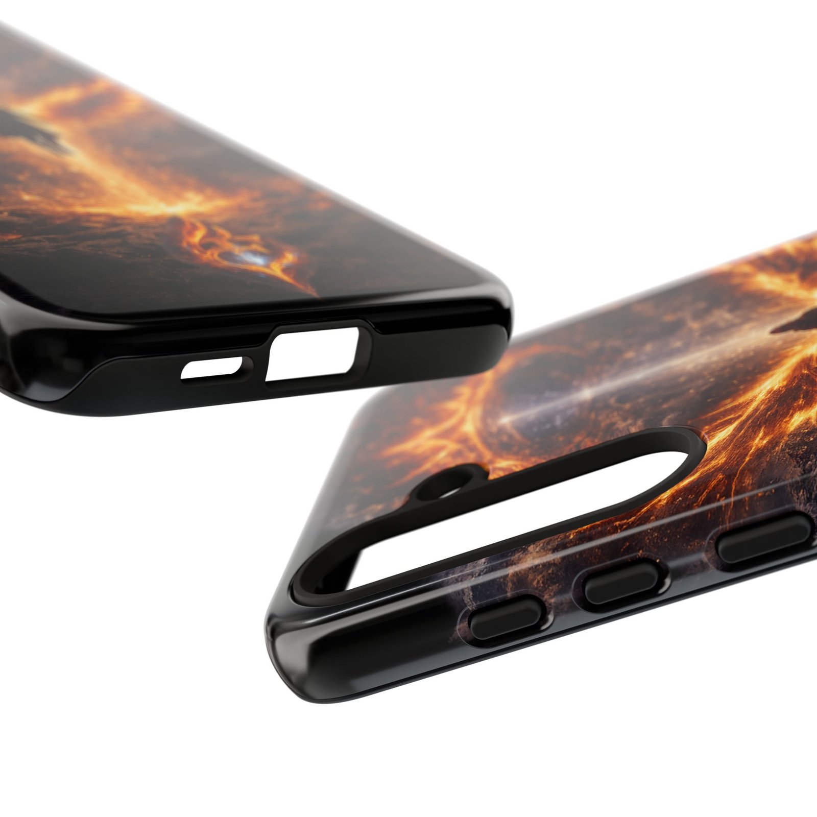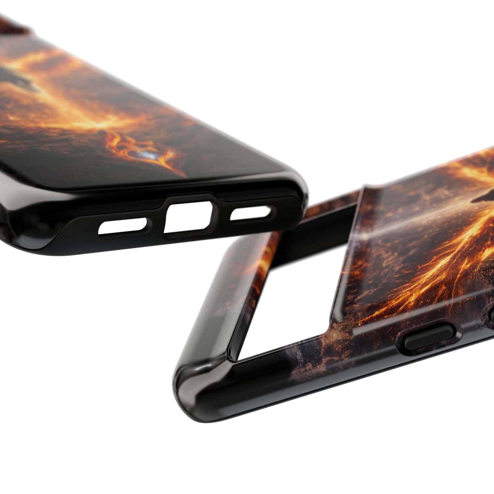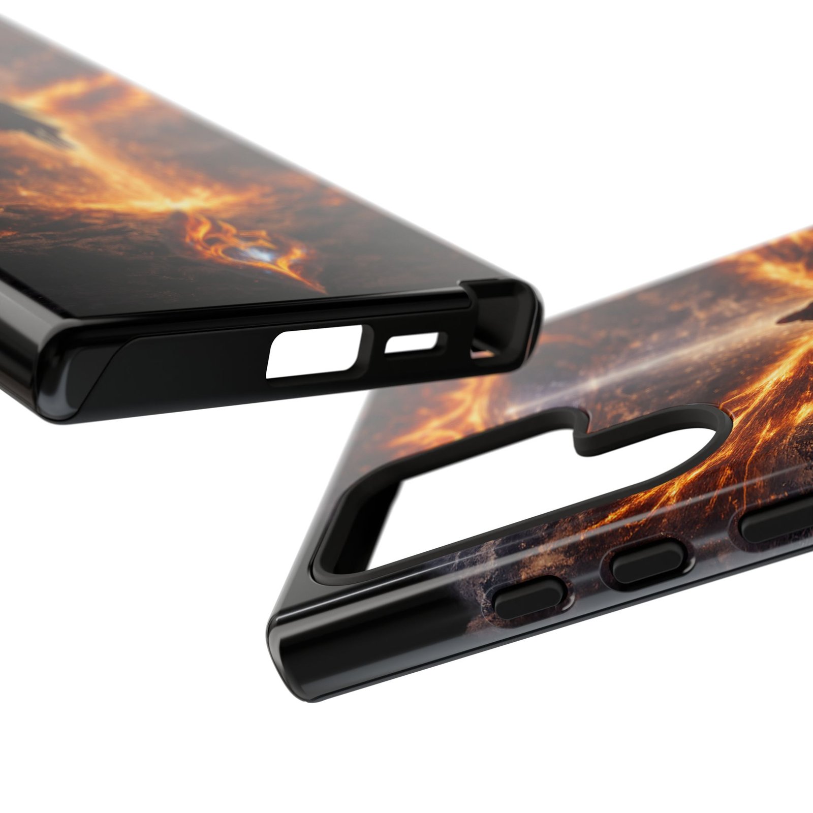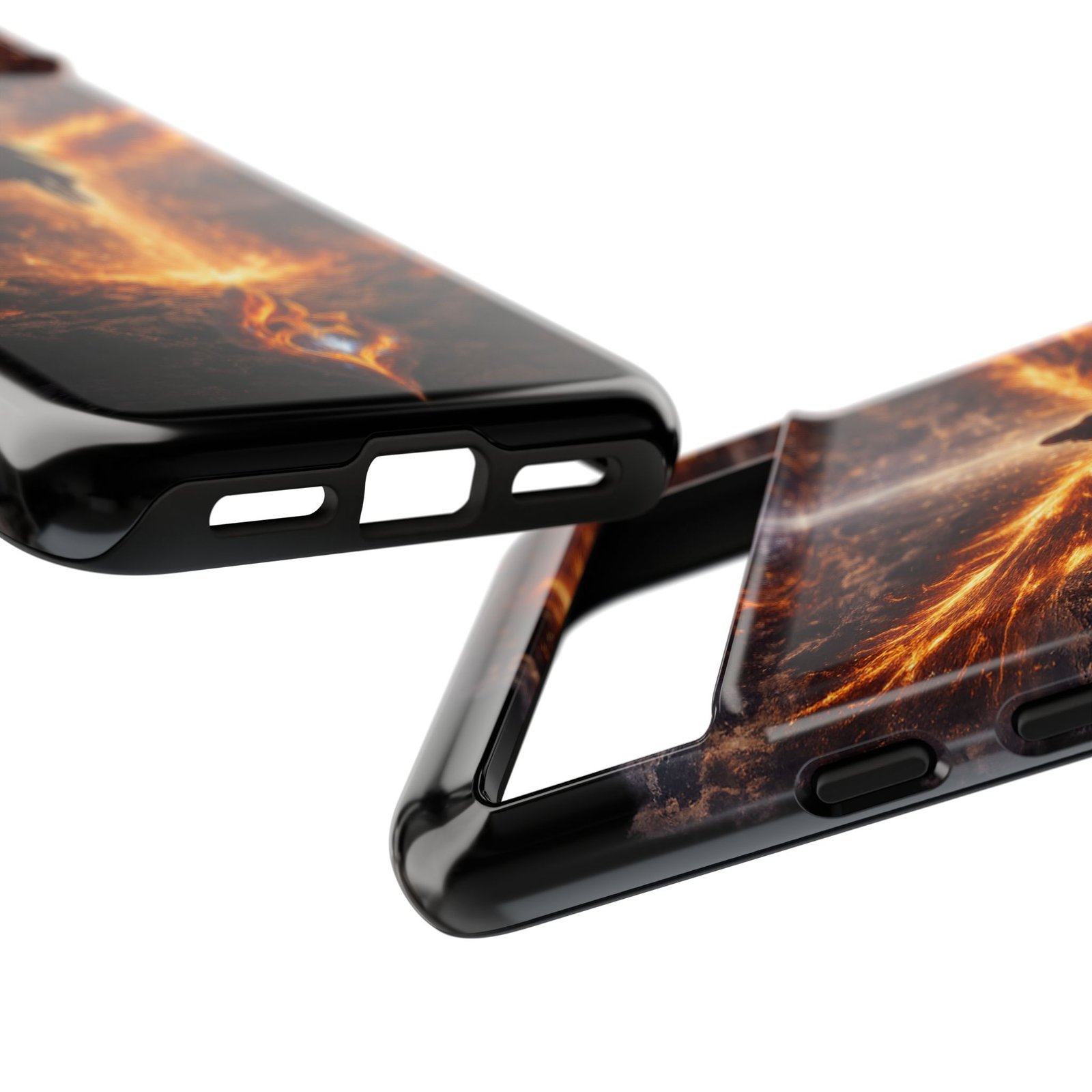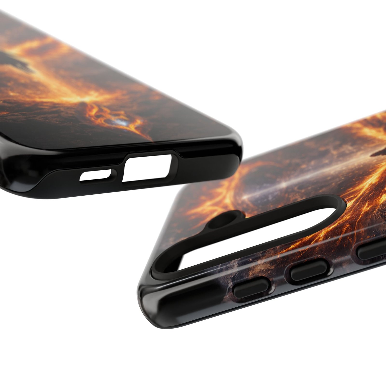 Slide your phone into armor that feels alive. This tough phone case pairs a dual-layer polycarbonate shell with a shock-absorbing TPU liner and a high-density 3D wrap print of a rising, fiery angel — wings unfurling into a halo of flame over a scorched landscape. It reads like a talisman in your hand: resilient, weather-resistant, and made to keep your device intact through daily drops and scrapes while keeping that dramatic artwork vivid. The slim profile preserves wireless charging and clear port access, and finishes are available in glossy or matte to match your look. Follow care notes to keep the colors sharp and the surface pristine.