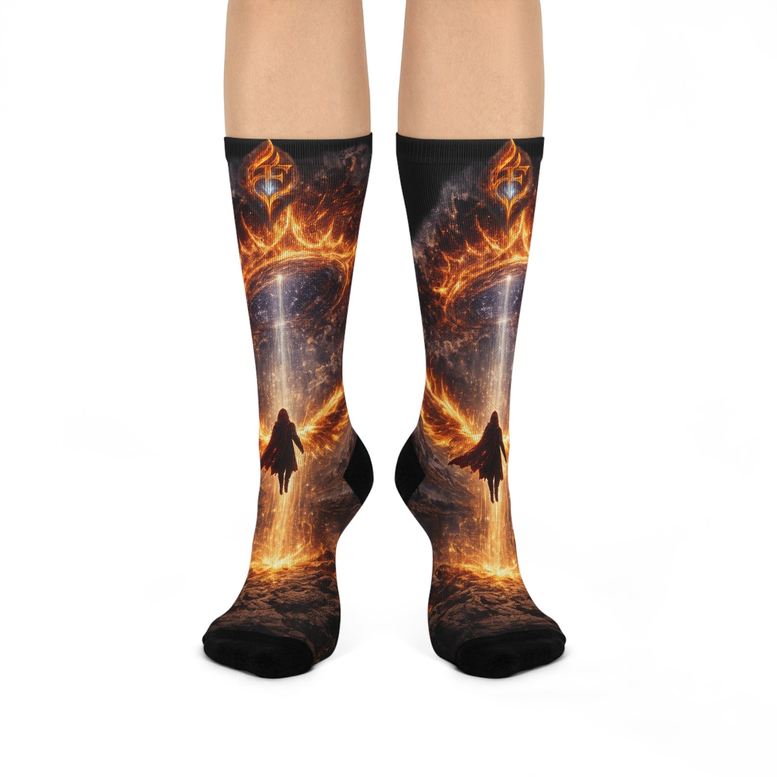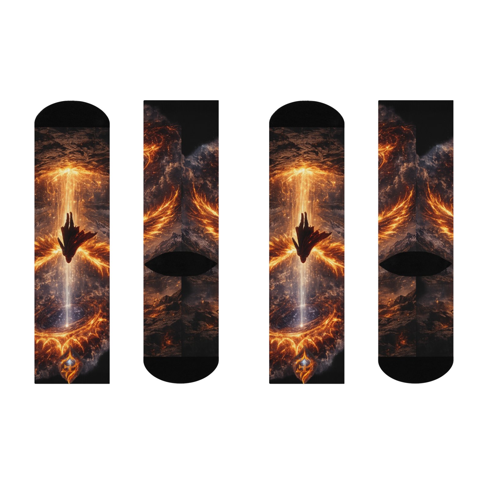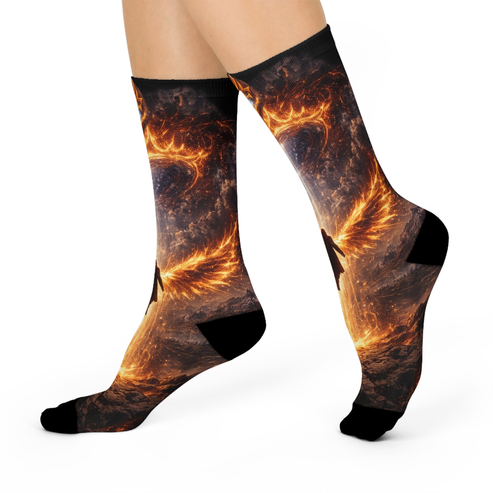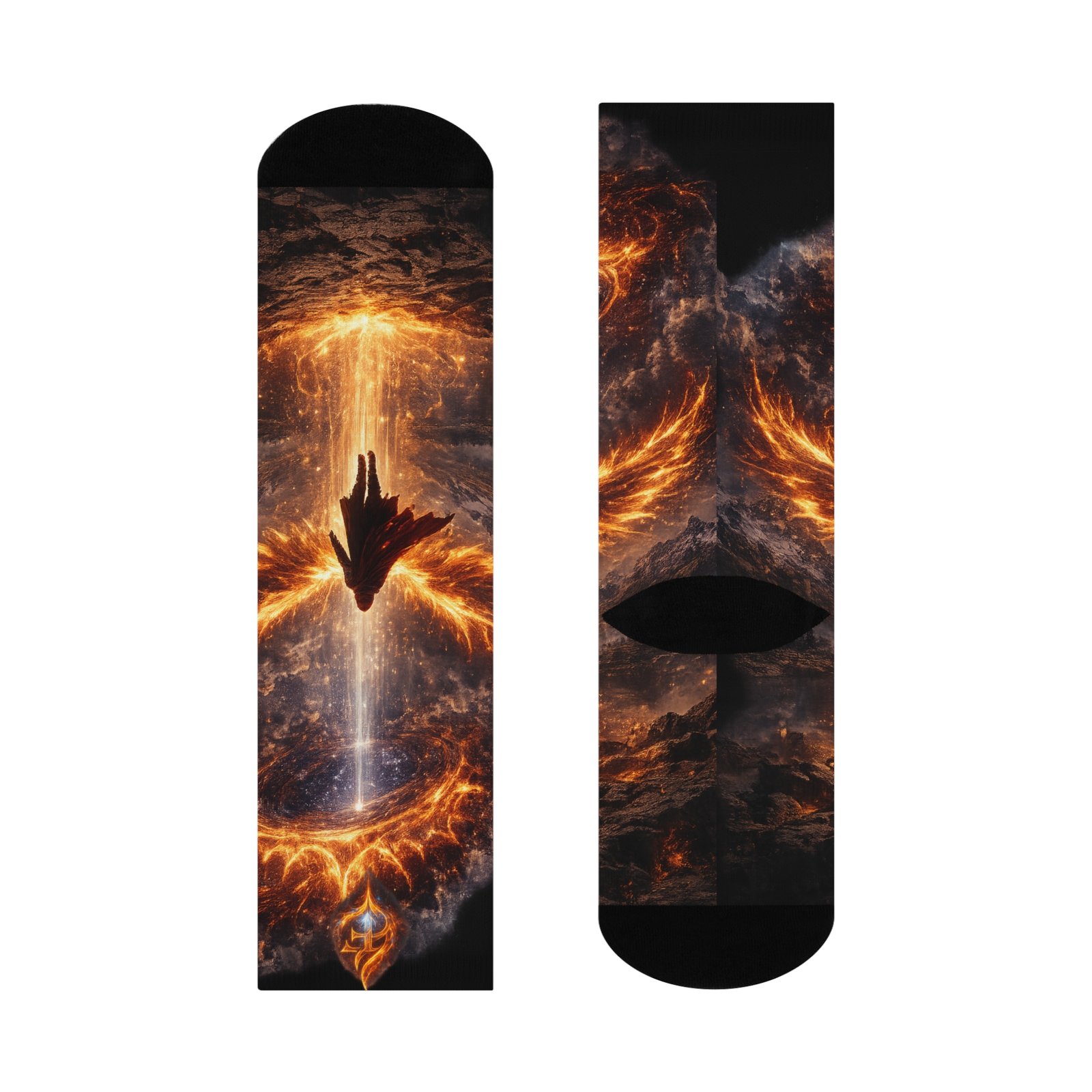 EchoFlame Fiery Phoenix Cosmic Portal Crew Socks