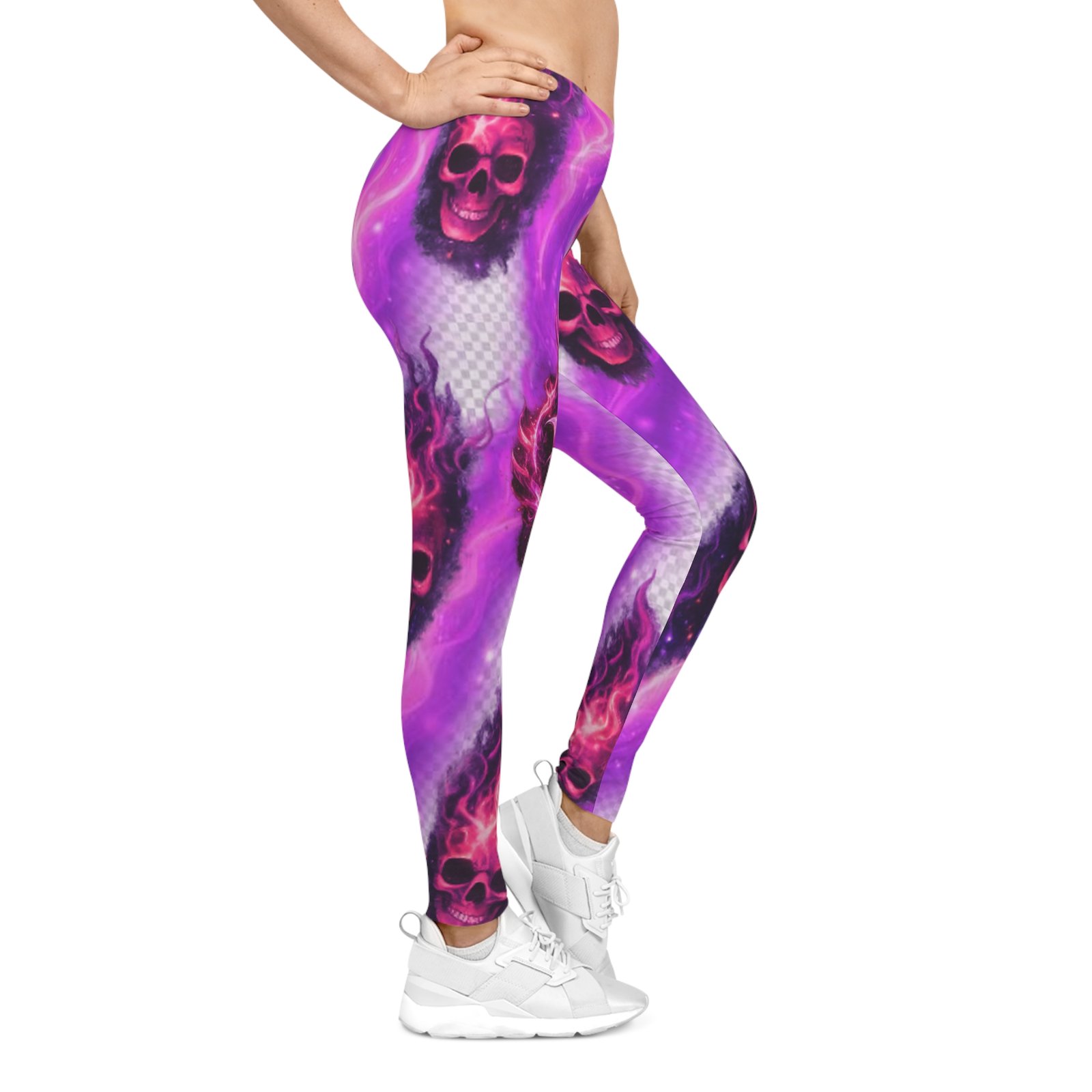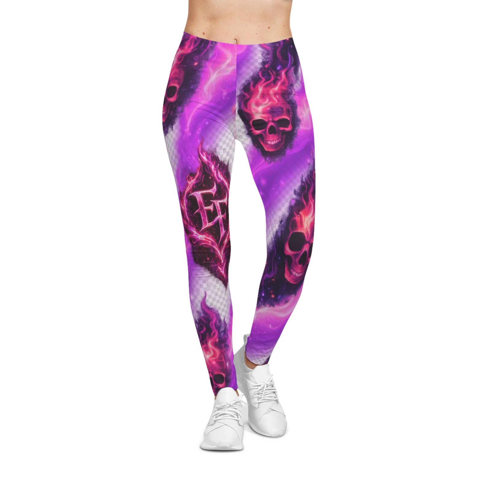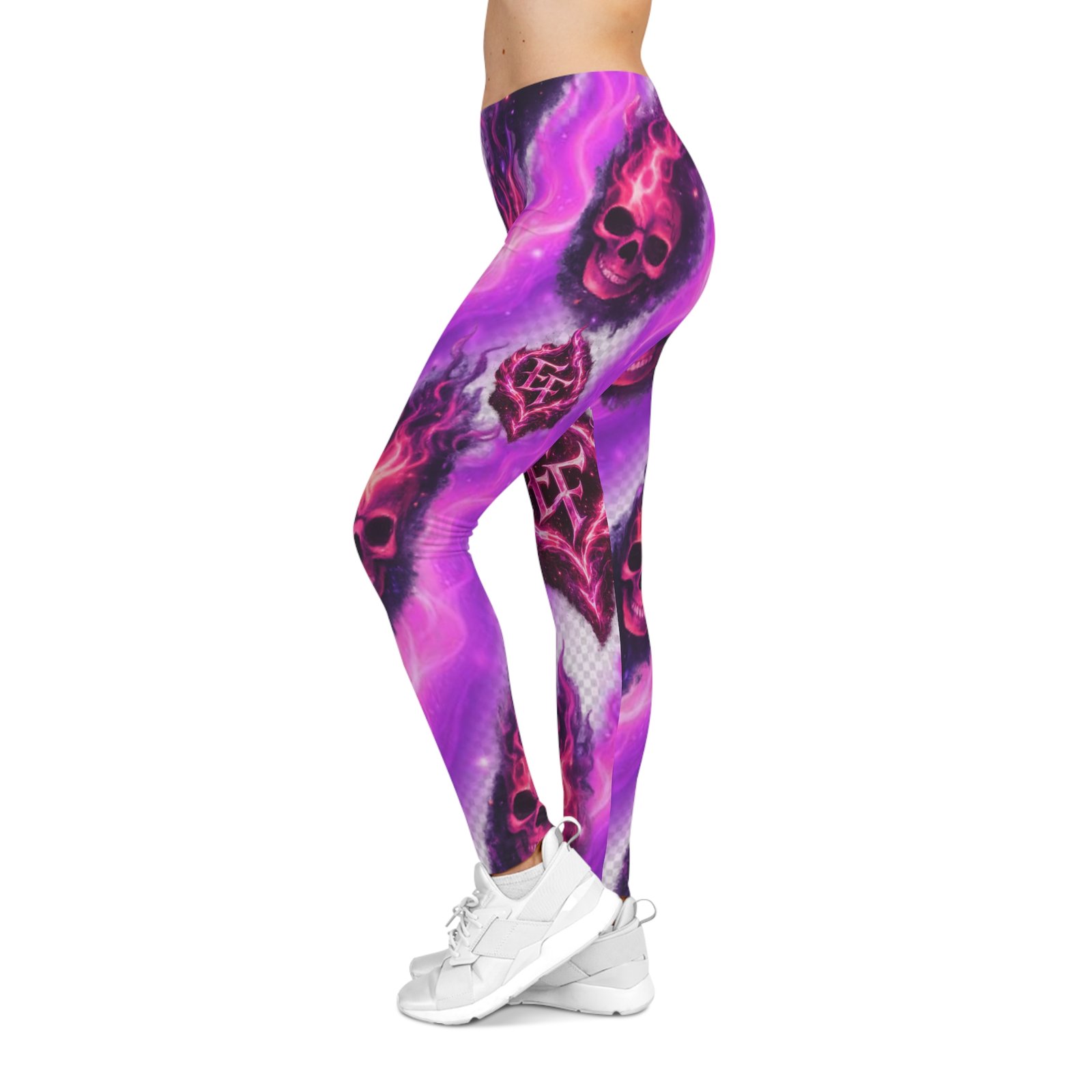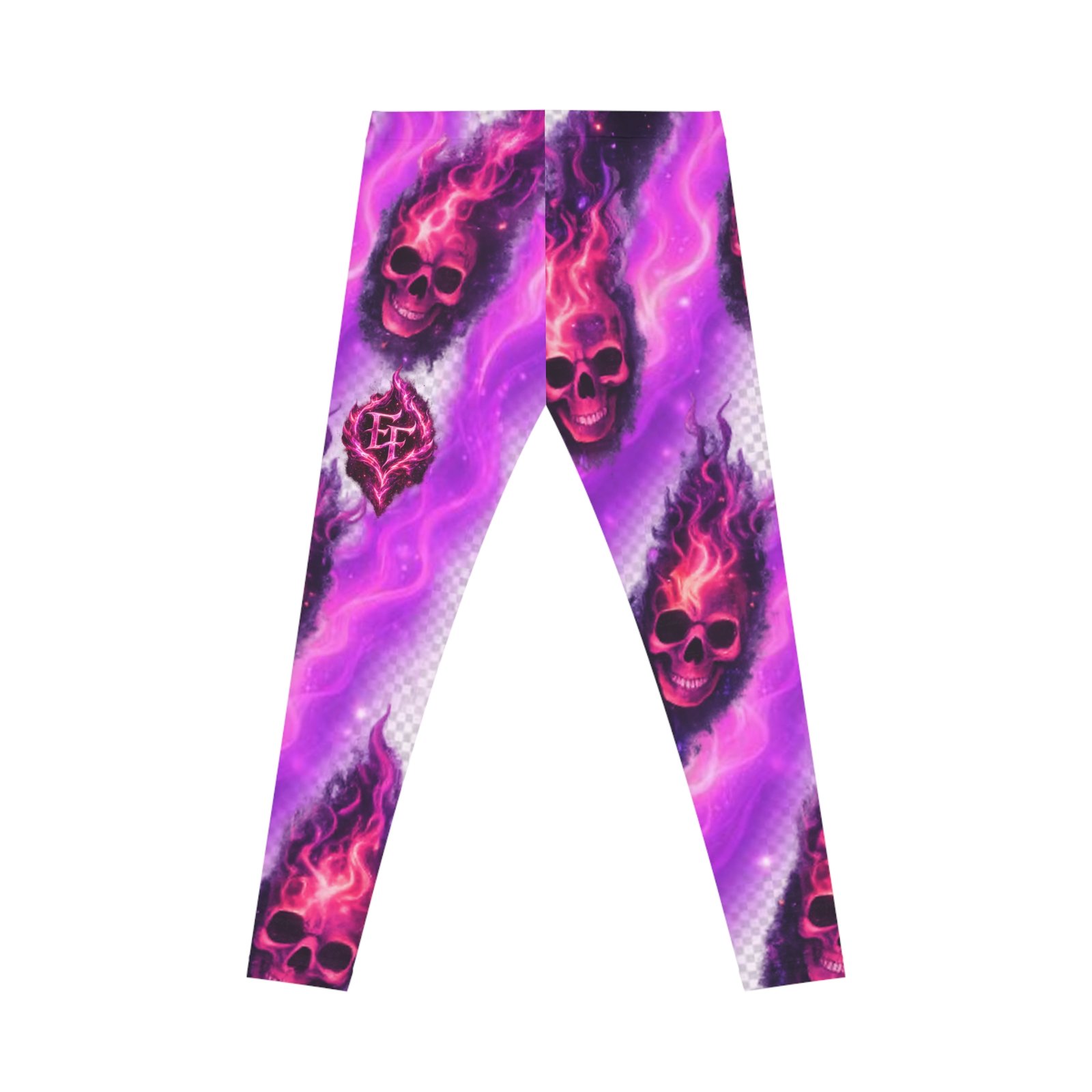 These leggings bring bold attitude and a splash of neon-night energy to every move. Lightweight and silky to the touch, they glow with magenta and violet swirls around smoldering skull motifs—edgy, playful, and unapologetic. The mid-rise elastic waistband sits comfortably for everyday wear, while the stretchy polyester-spandex blend moves with you from morning runs to late-night gigs. Wear them with an oversized band tee and boots to lean into the rebellious look, or pair with a long cardigan when you want a softer contrast. They hold their color vividly through washes, so the flame details stay electric and sharp season after season.