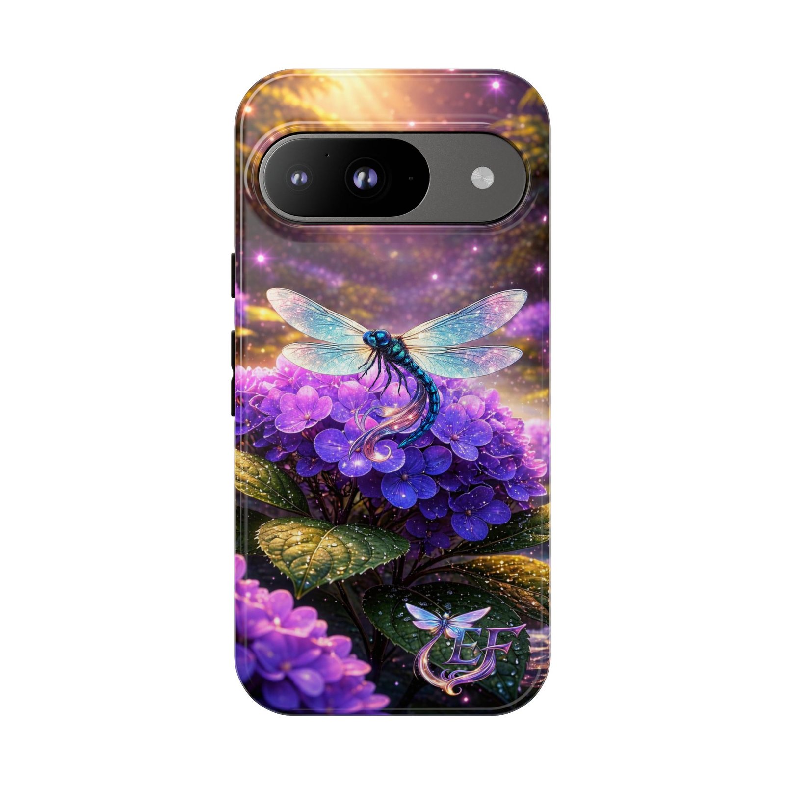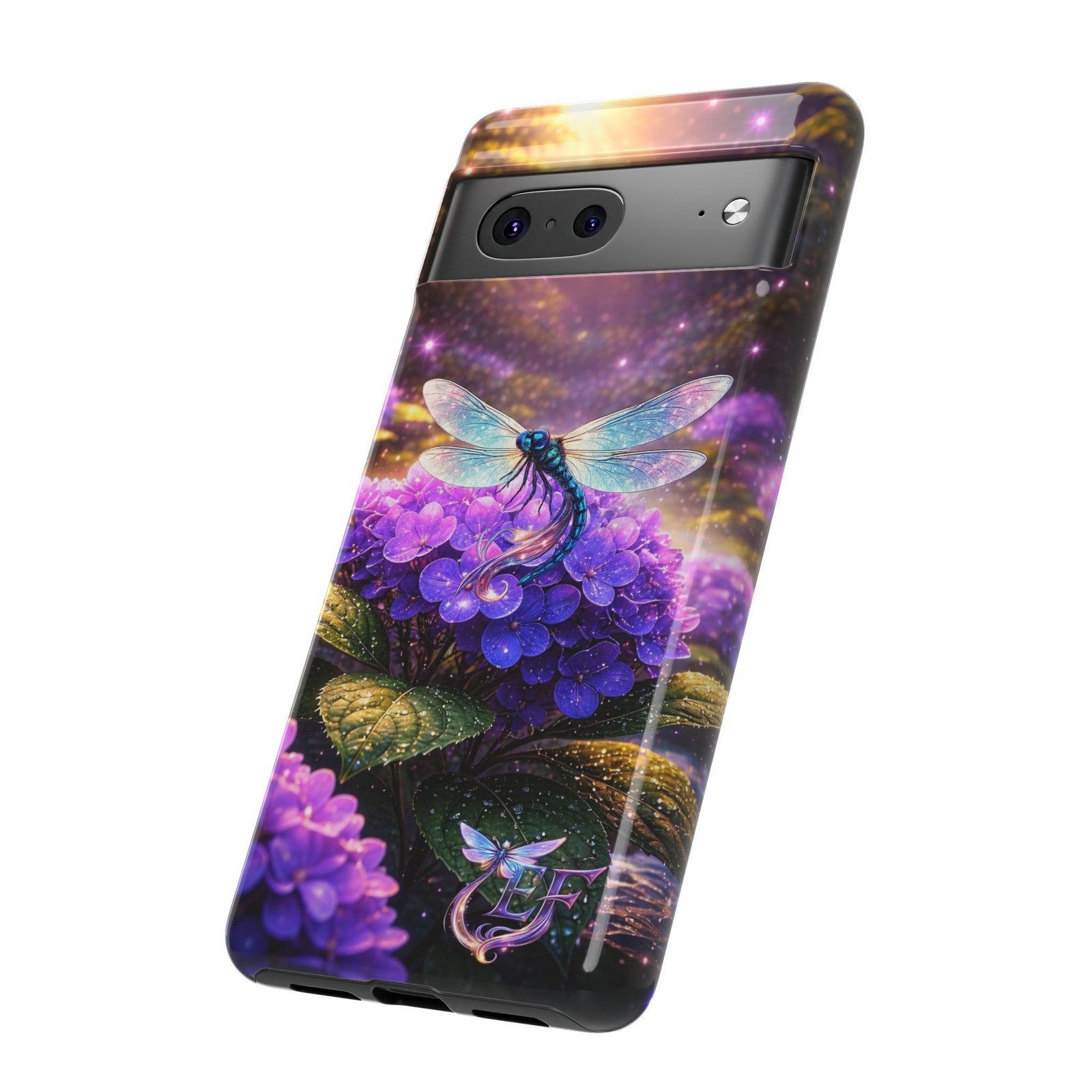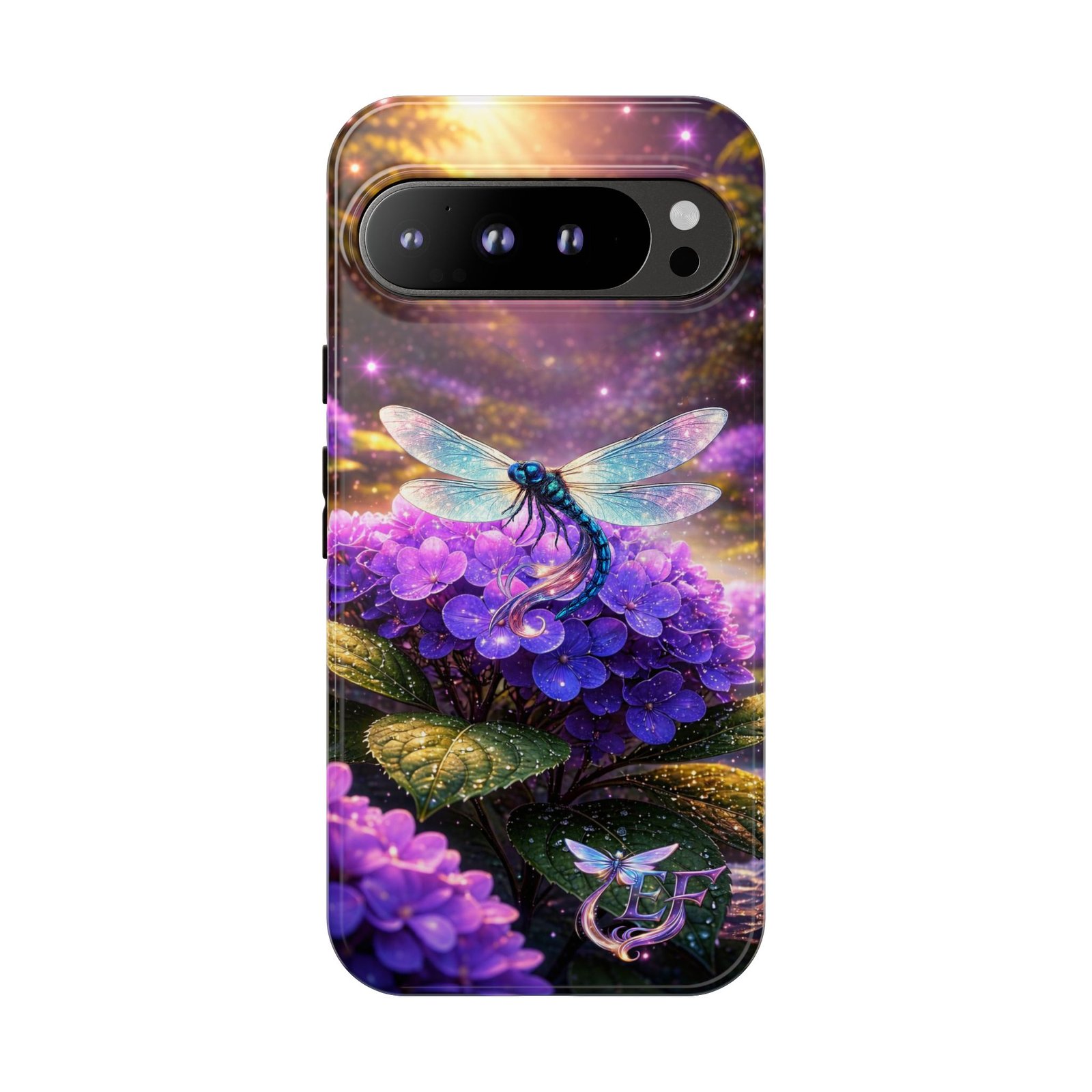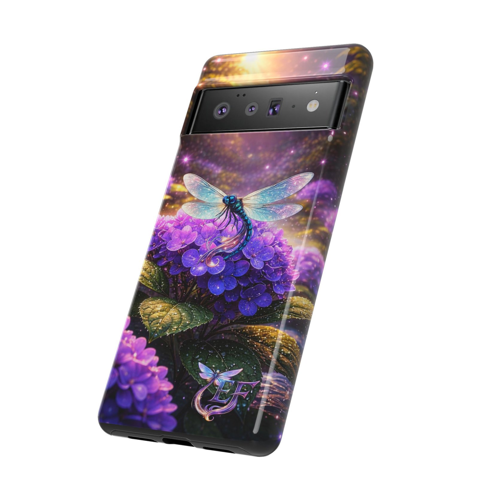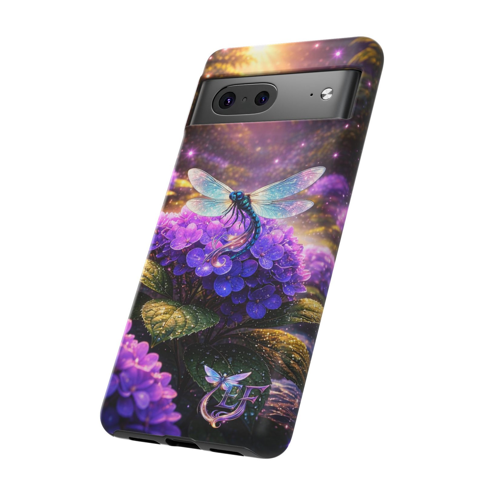 echoflame floral dragonfly galaxy phone case — purple hydrangea protective coverEchoFlame Floral Dragonfly Galaxy Phone Case — Purple Hydrangea Protective Cover