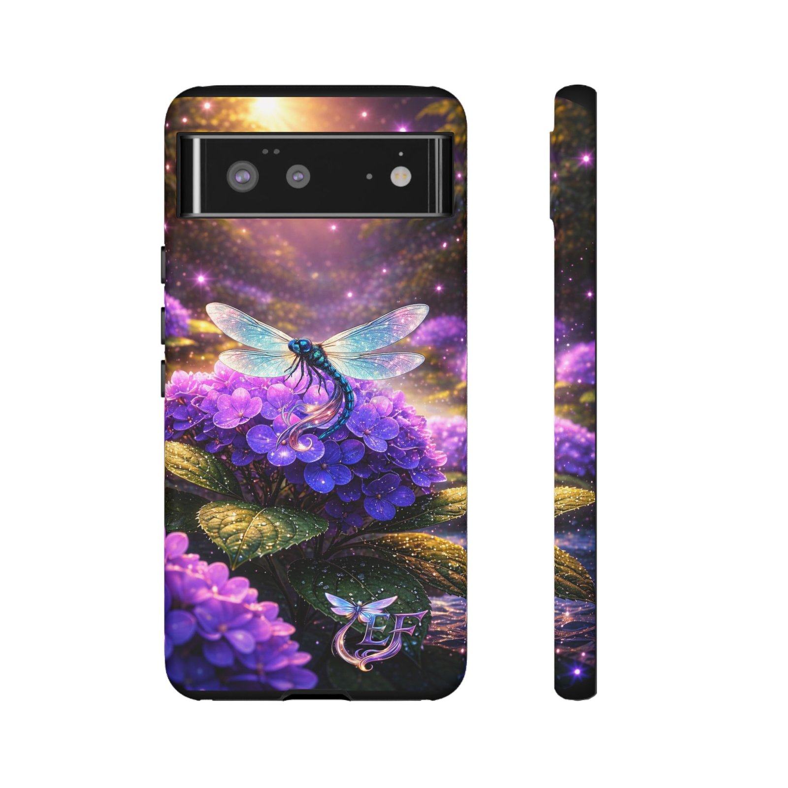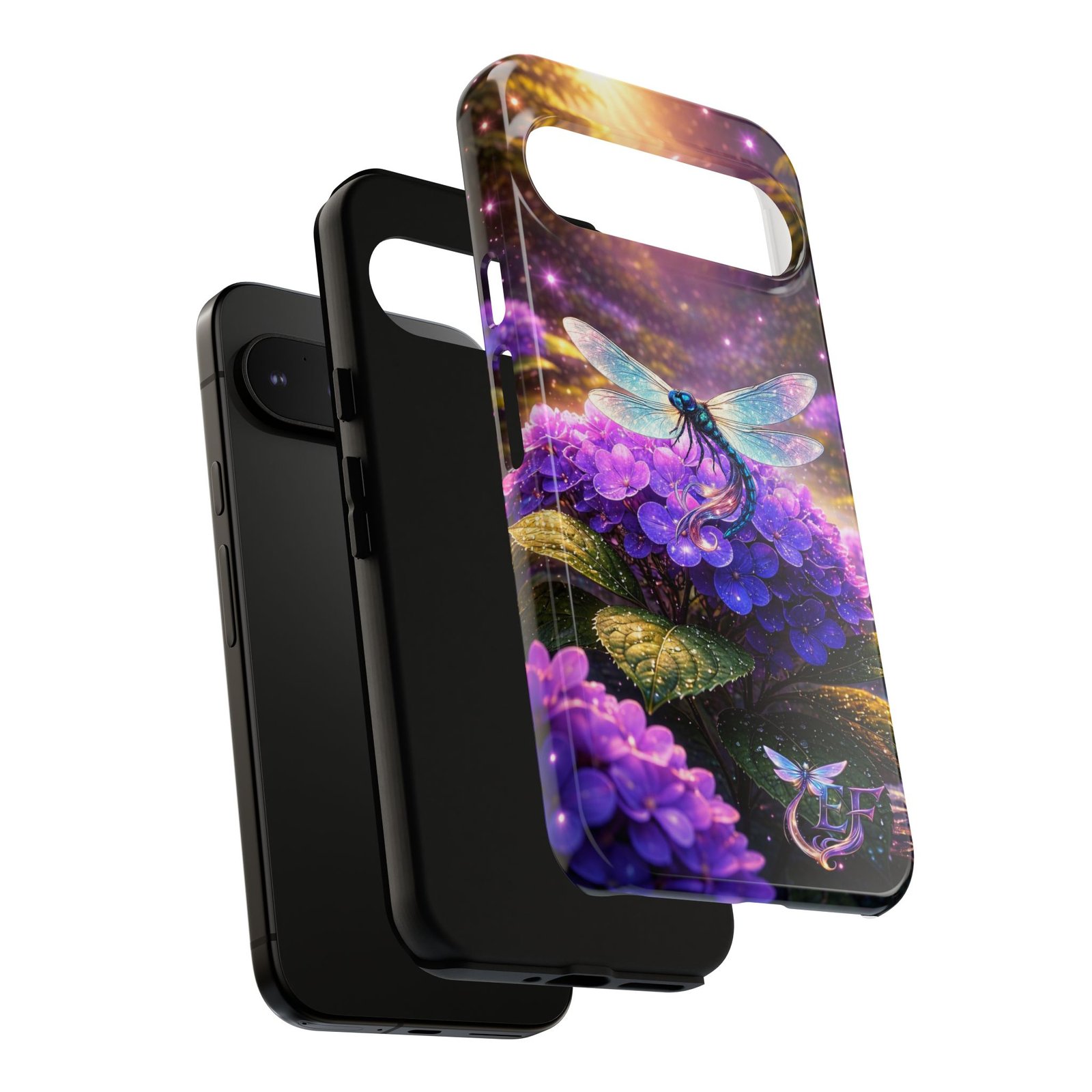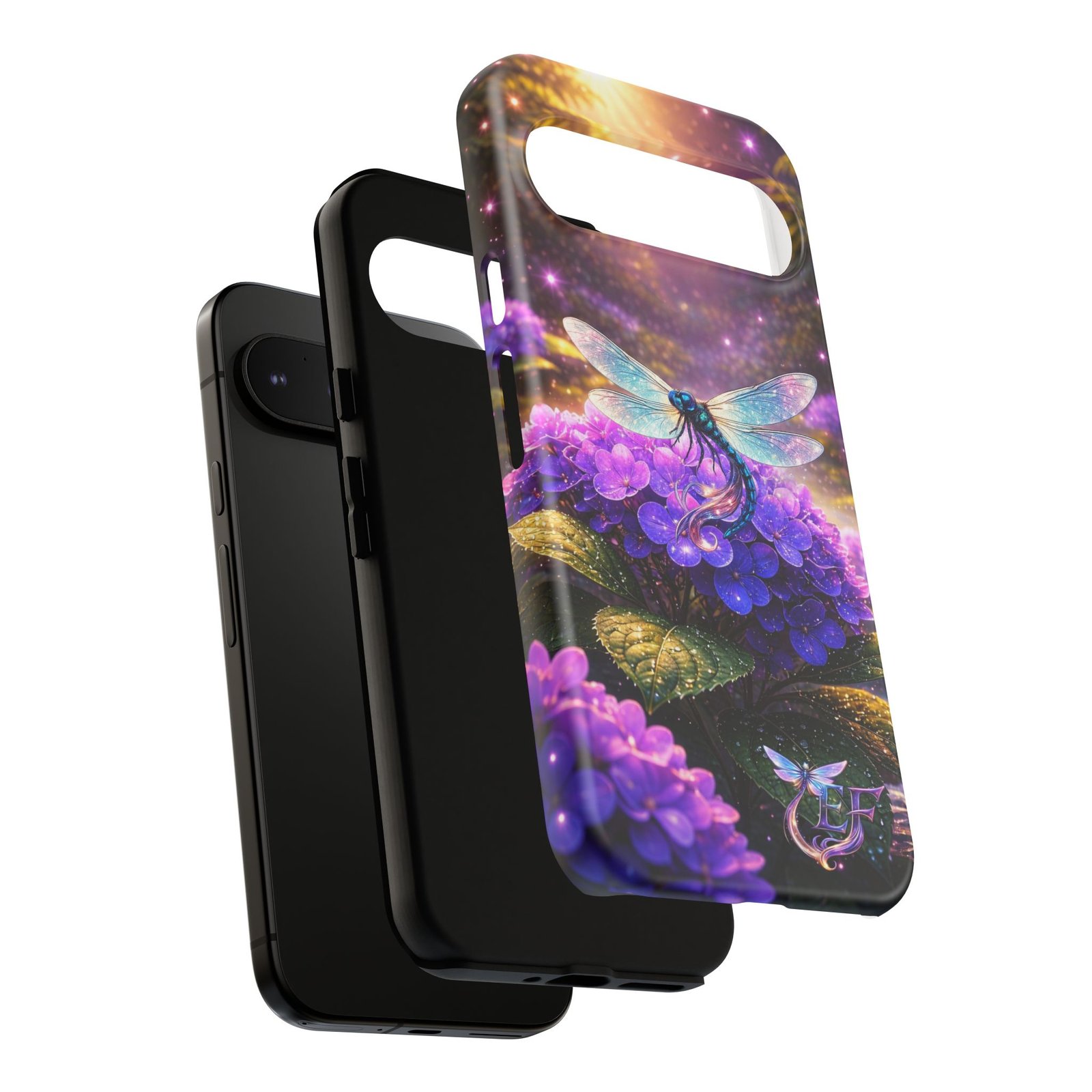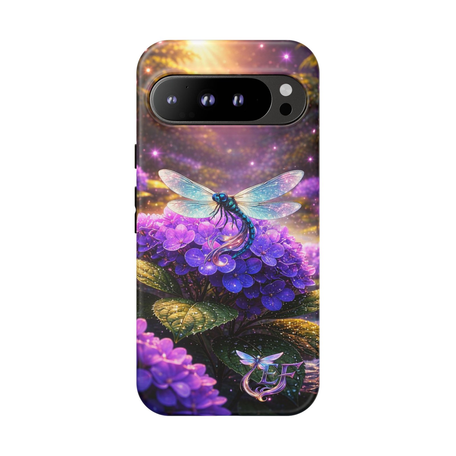 echoflame floral dragonfly galaxy phone case — purple hydrangea protective coverEchoFlame Floral Dragonfly Galaxy Phone Case — Purple Hydrangea Protective Cover