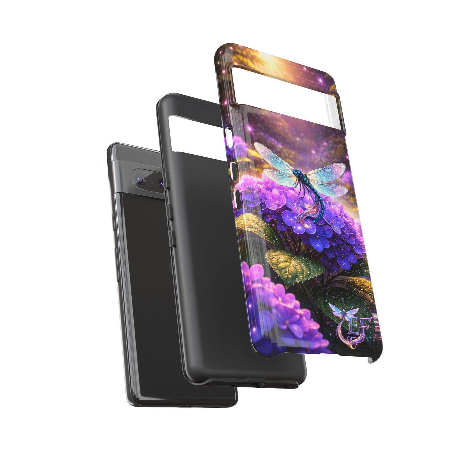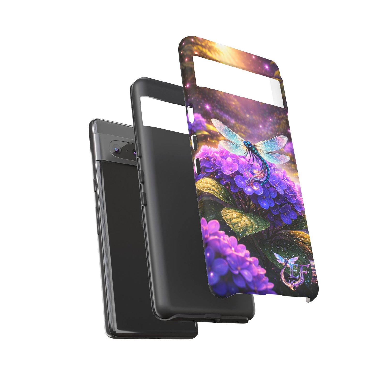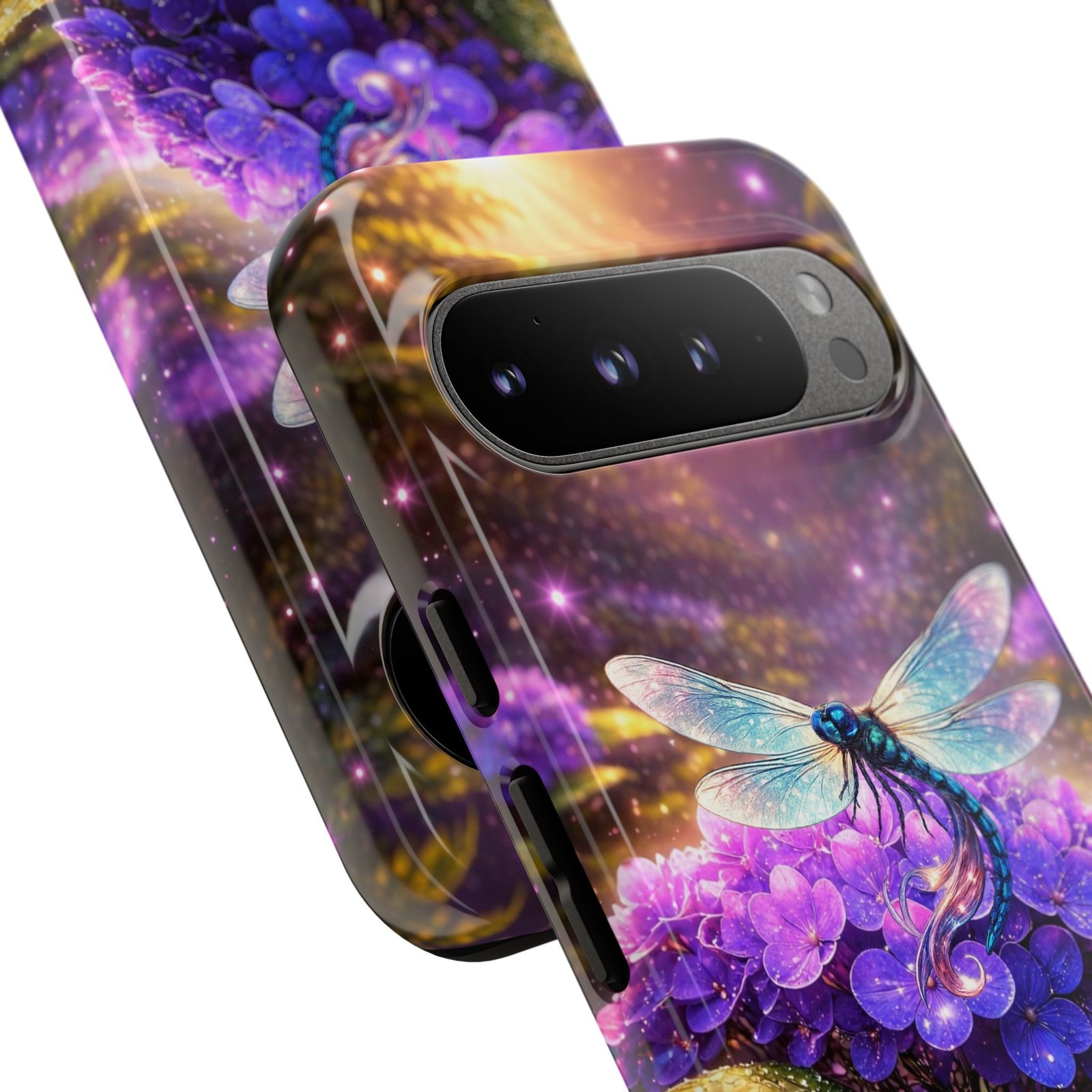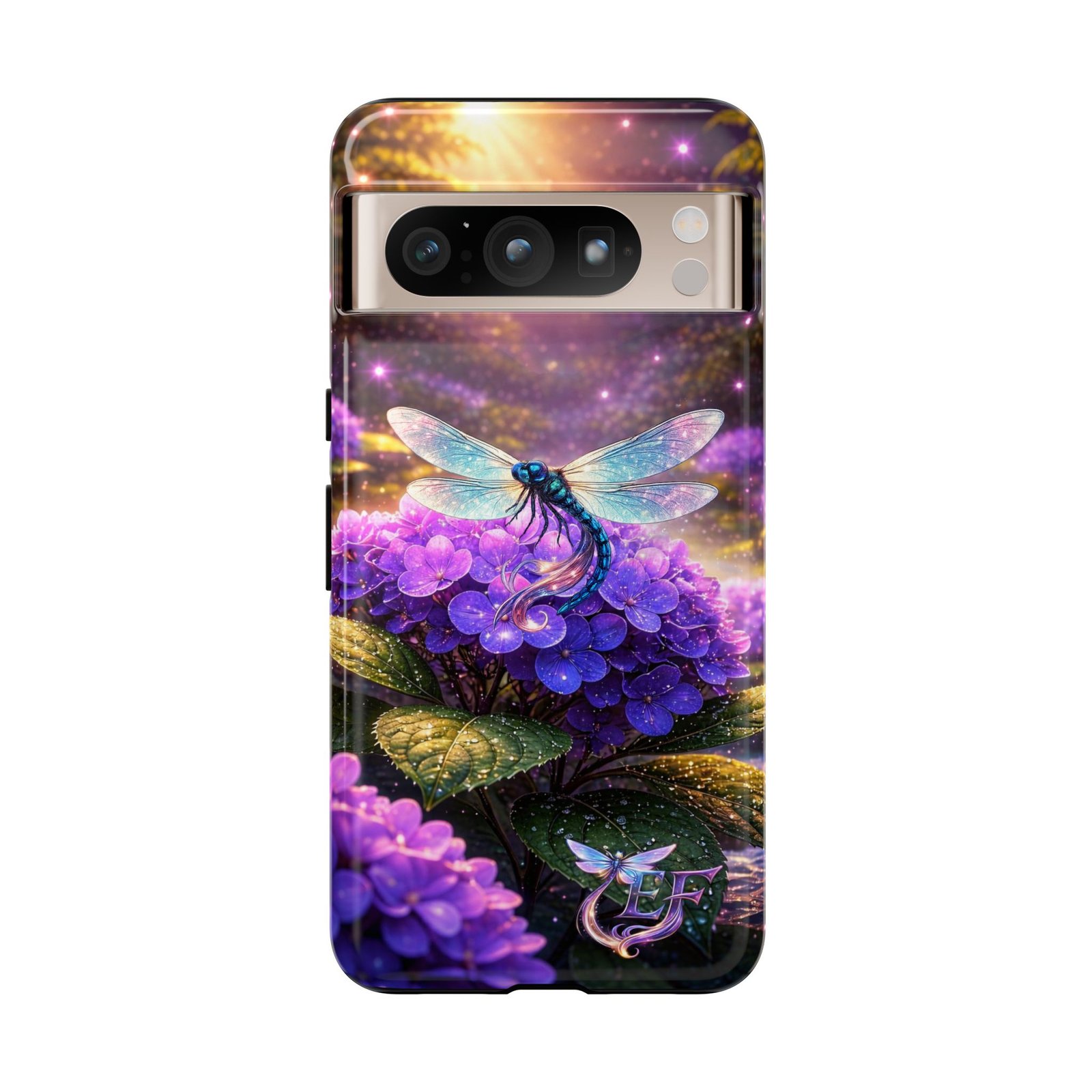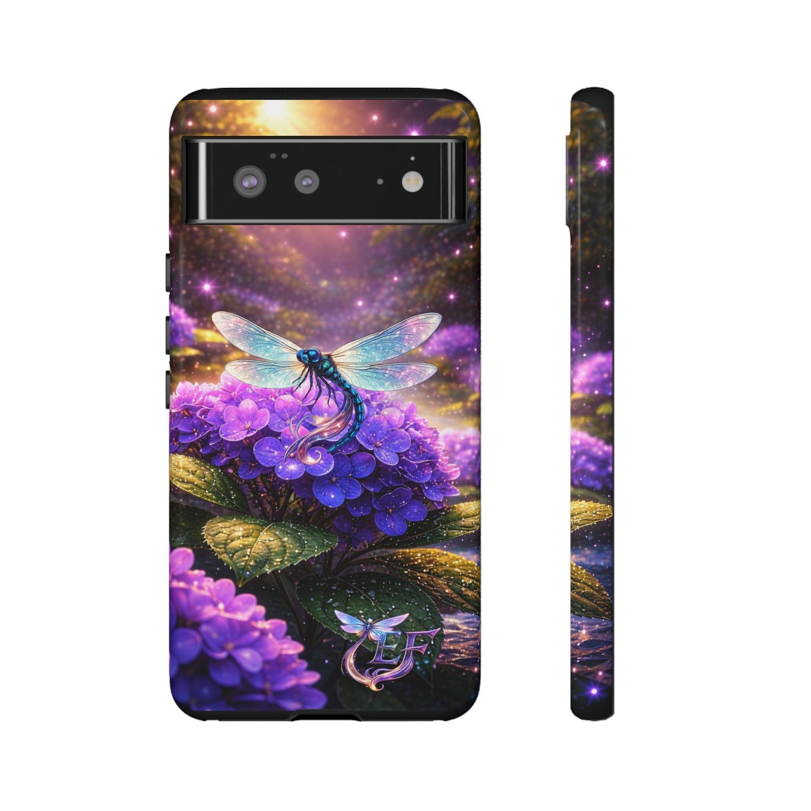 echoflame floral dragonfly galaxy phone case — purple hydrangea protective coverEchoFlame Floral Dragonfly Galaxy Phone Case — Purple Hydrangea Protective Cover