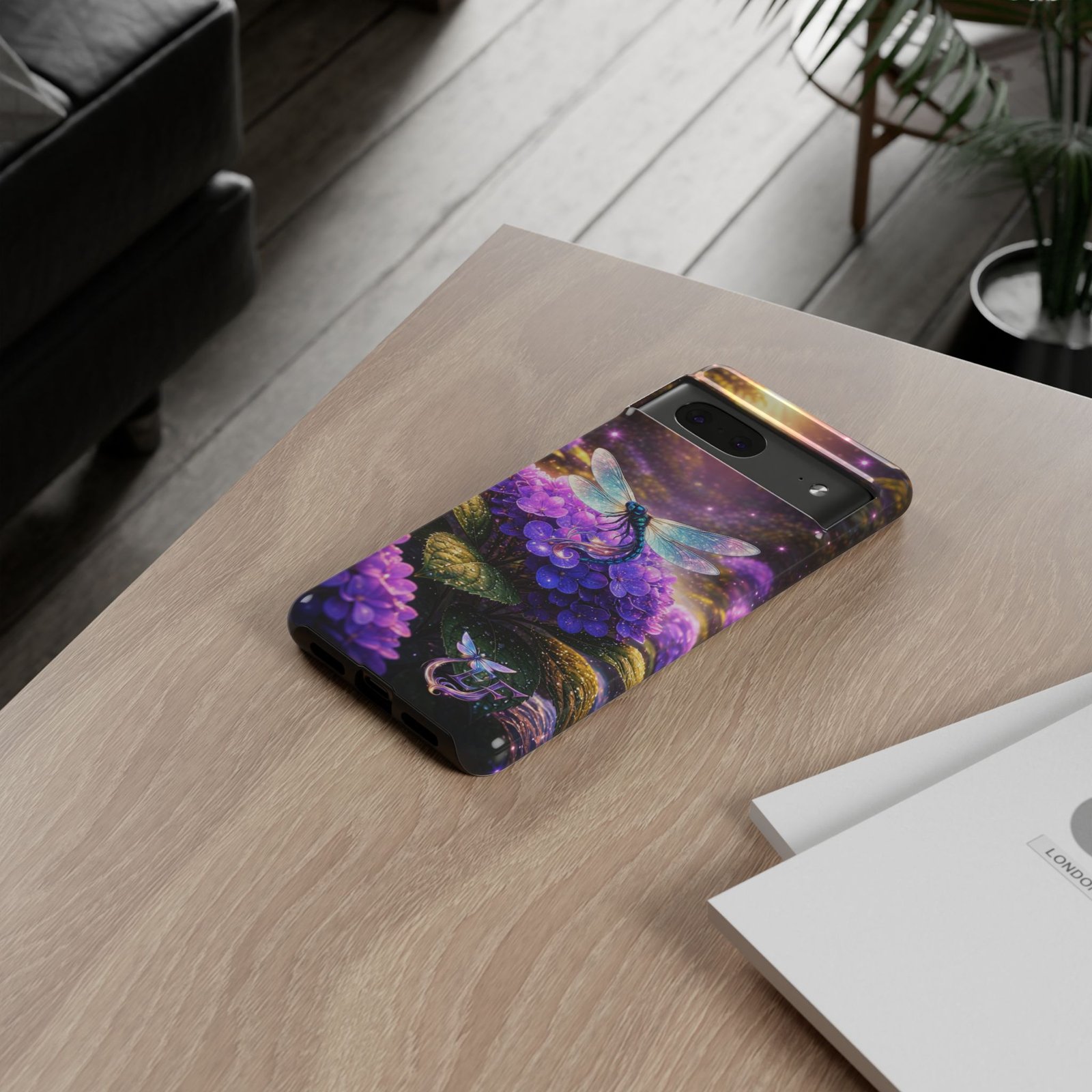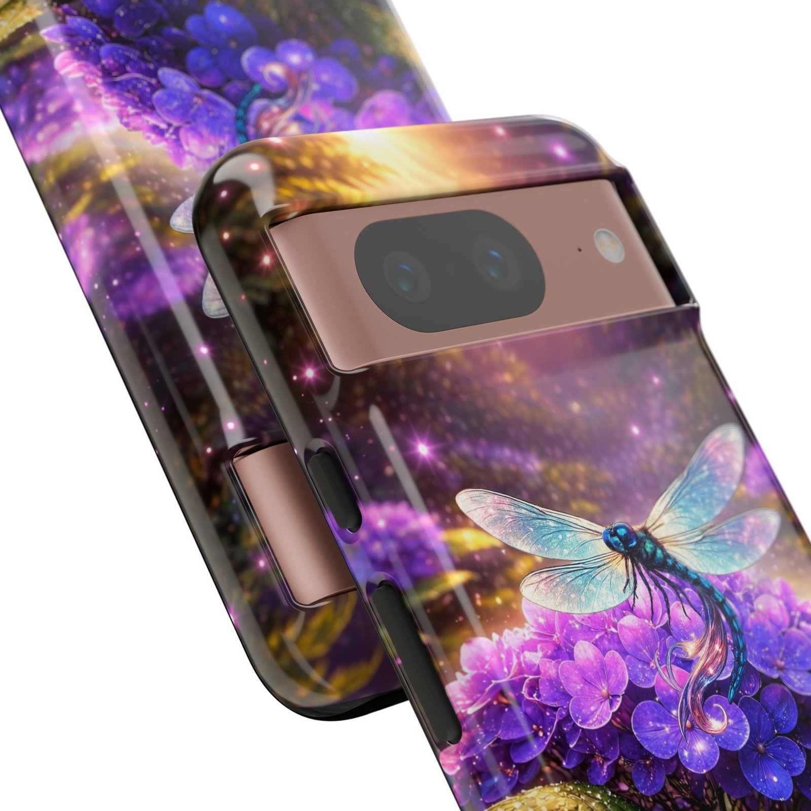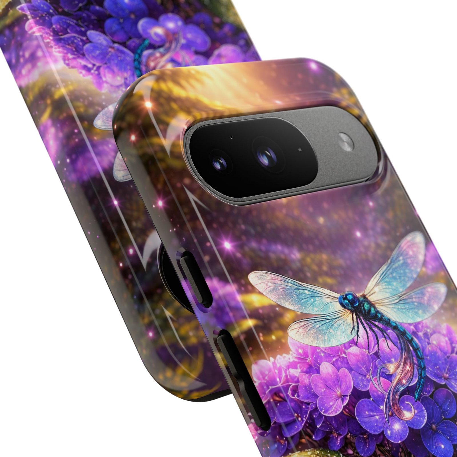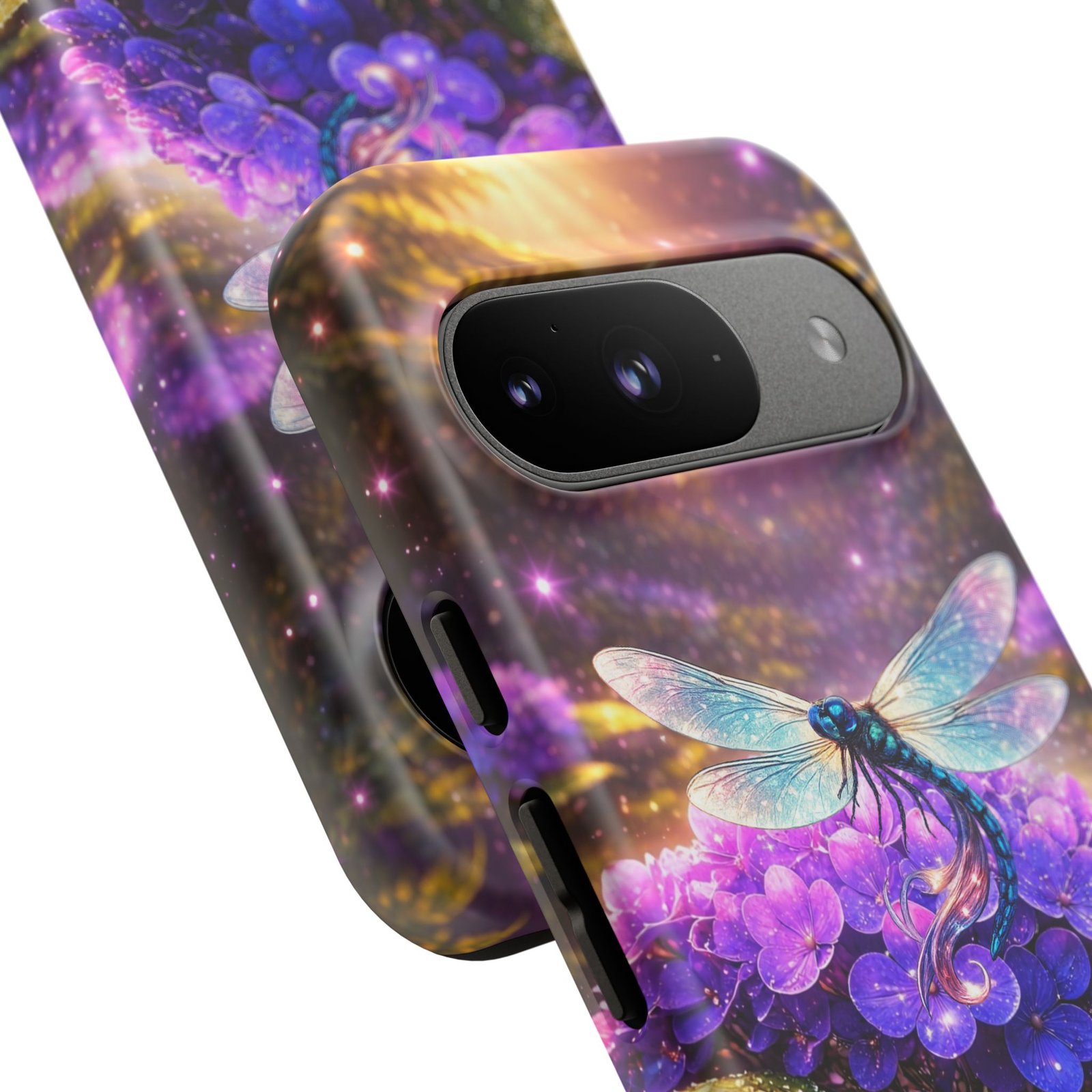 Carry a pocket-sized escape with this protective phone case that blends vibrant fantasy art and reliable defense. Moonlit hydrangeas glow in deep purples while a delicate dragonfly shimmers across the scene — a small, luminous world that turns a daily device into something quietly magical. The slim, dual-layer shell snaps on for confident protection without bulk. It feels polished in hand and keeps ports open for easy charging and connection. Weather-resistant inks hold their color outdoors, and a soft TPU liner cushions against drops while the strong polycarbonate shell resists impacts. This case slips into everyday life: tucked beside your journal, riding in a tote, or catching light on a café table — a little reminder to notice wonder even during the ordinary.