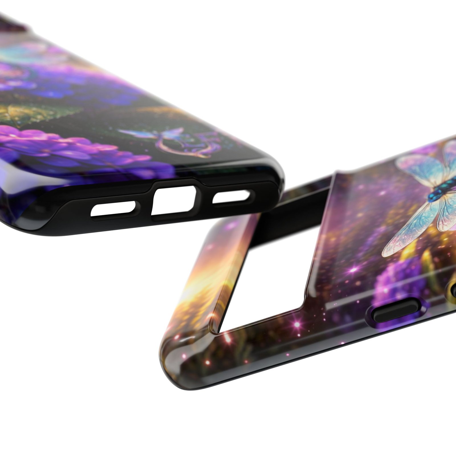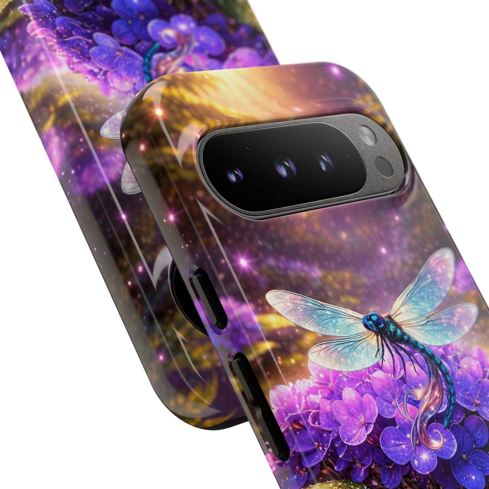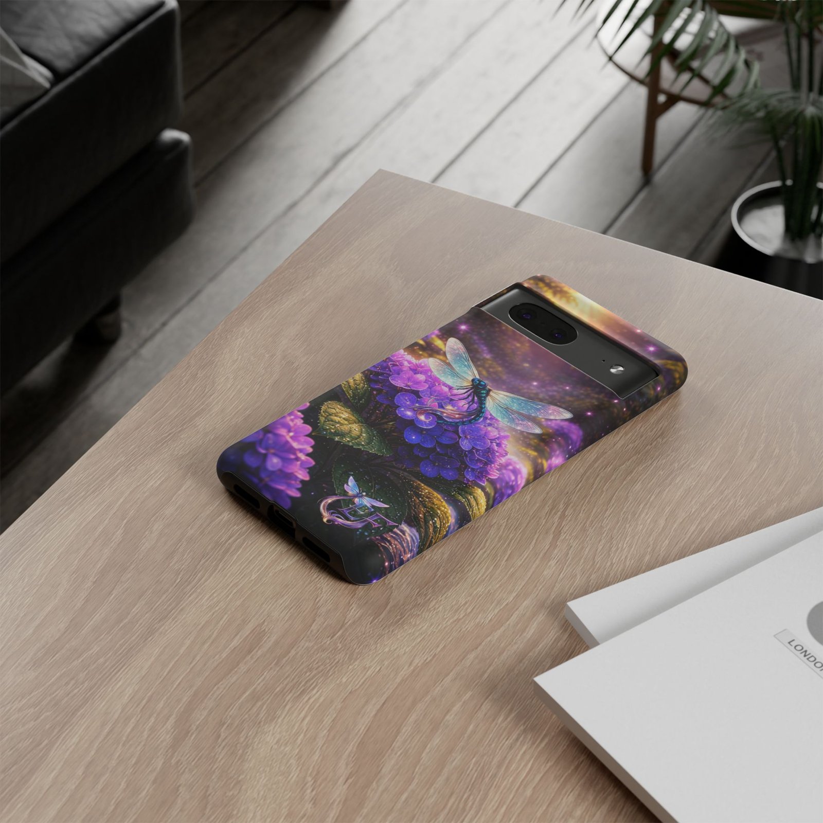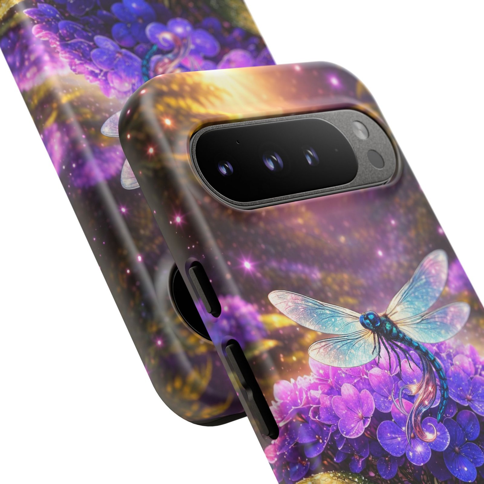 Carry a pocket-sized escape with this protective phone case that blends vibrant fantasy art and reliable defense. Moonlit hydrangeas glow in deep purples while a delicate dragonfly shimmers across the scene — a small, luminous world that turns a daily device into something quietly magical. The slim, dual-layer shell snaps on for confident protection without bulk. It feels polished in hand and keeps ports open for easy charging and connection. Weather-resistant inks hold their color outdoors, and a soft TPU liner cushions against drops while the strong polycarbonate shell resists impacts. This case slips into everyday life: tucked beside your journal, riding in a tote, or catching light on a café table — a little reminder to notice wonder even during the ordinary.
