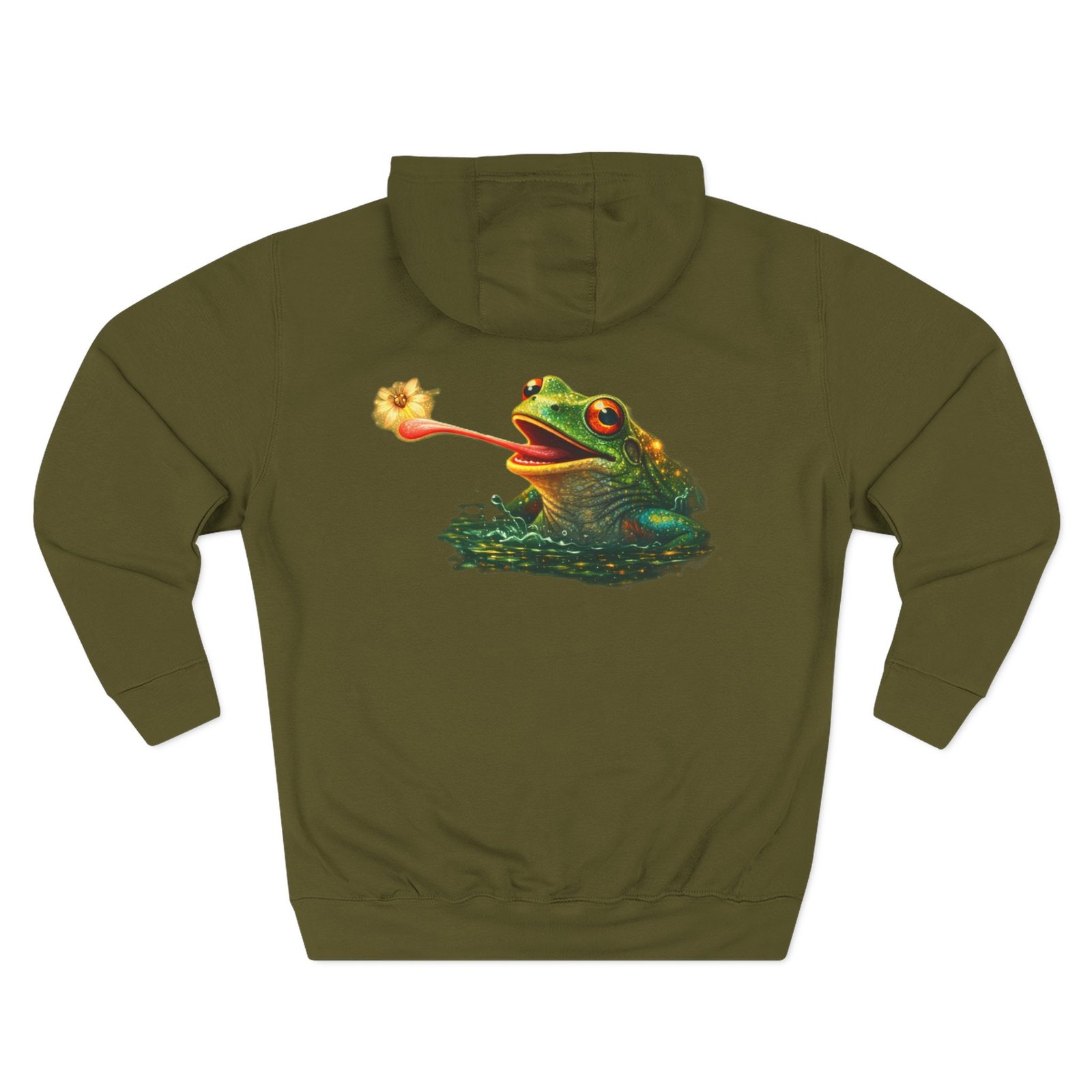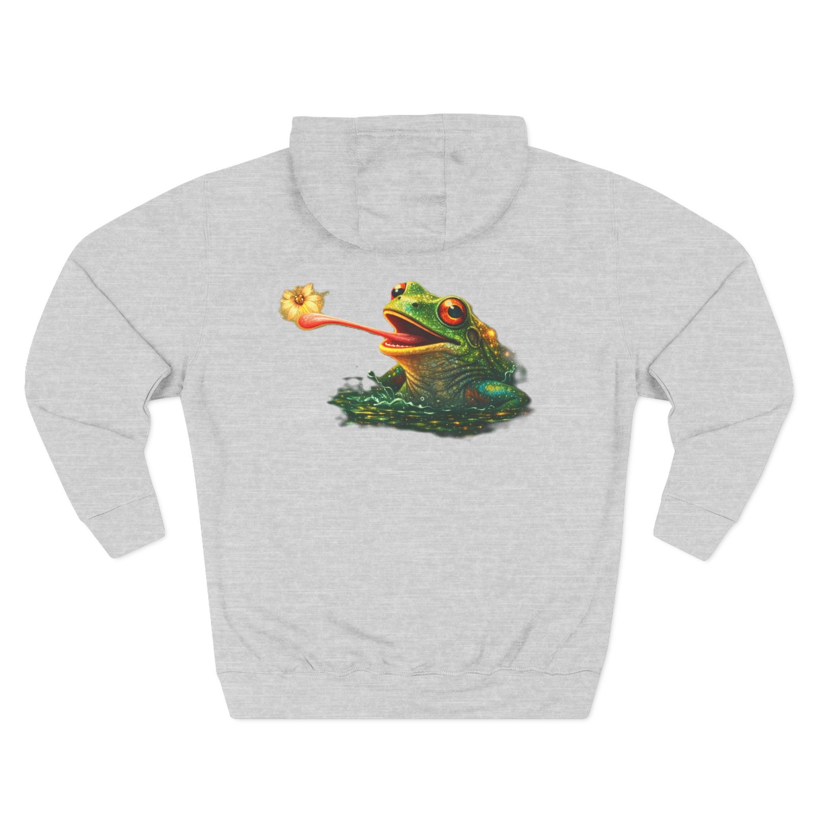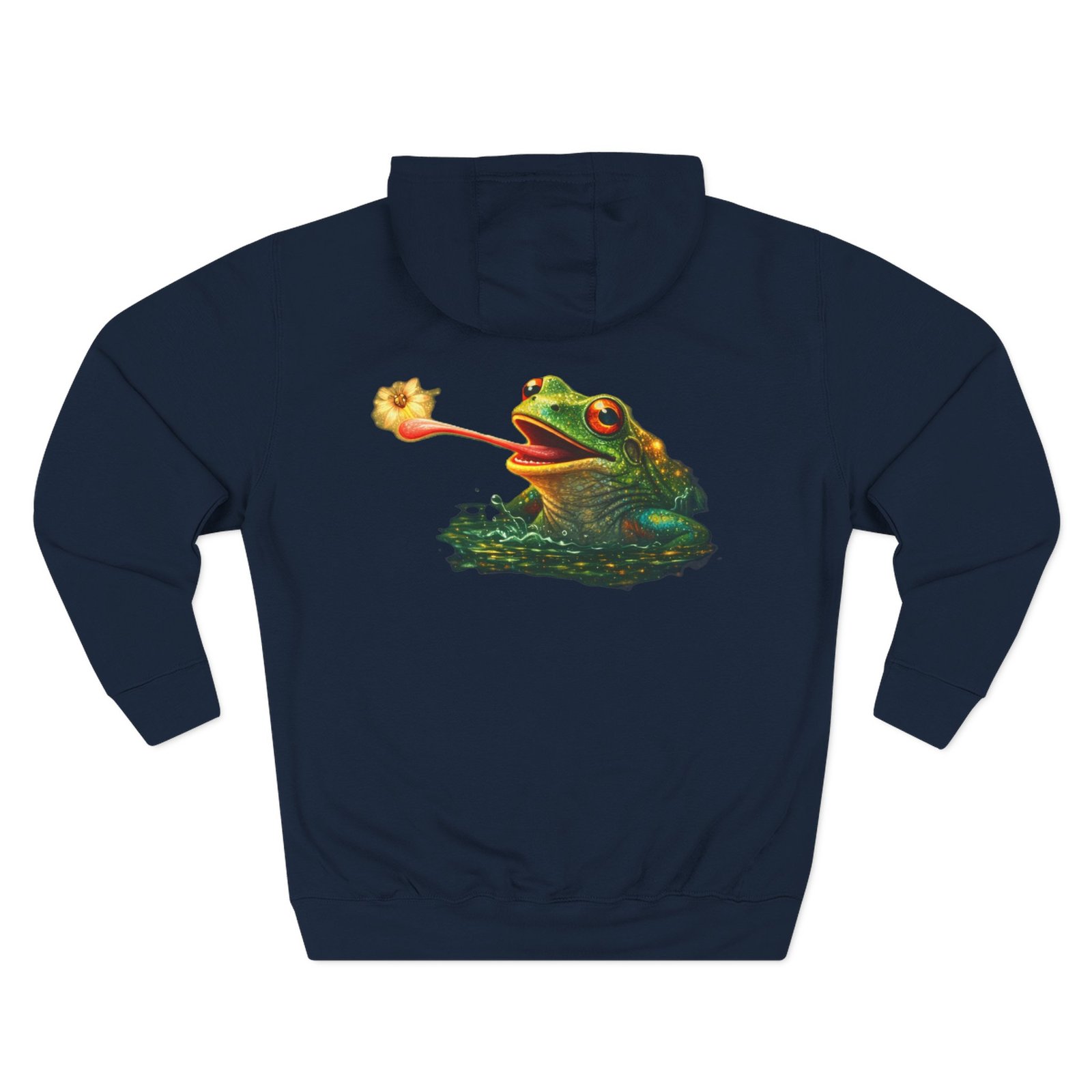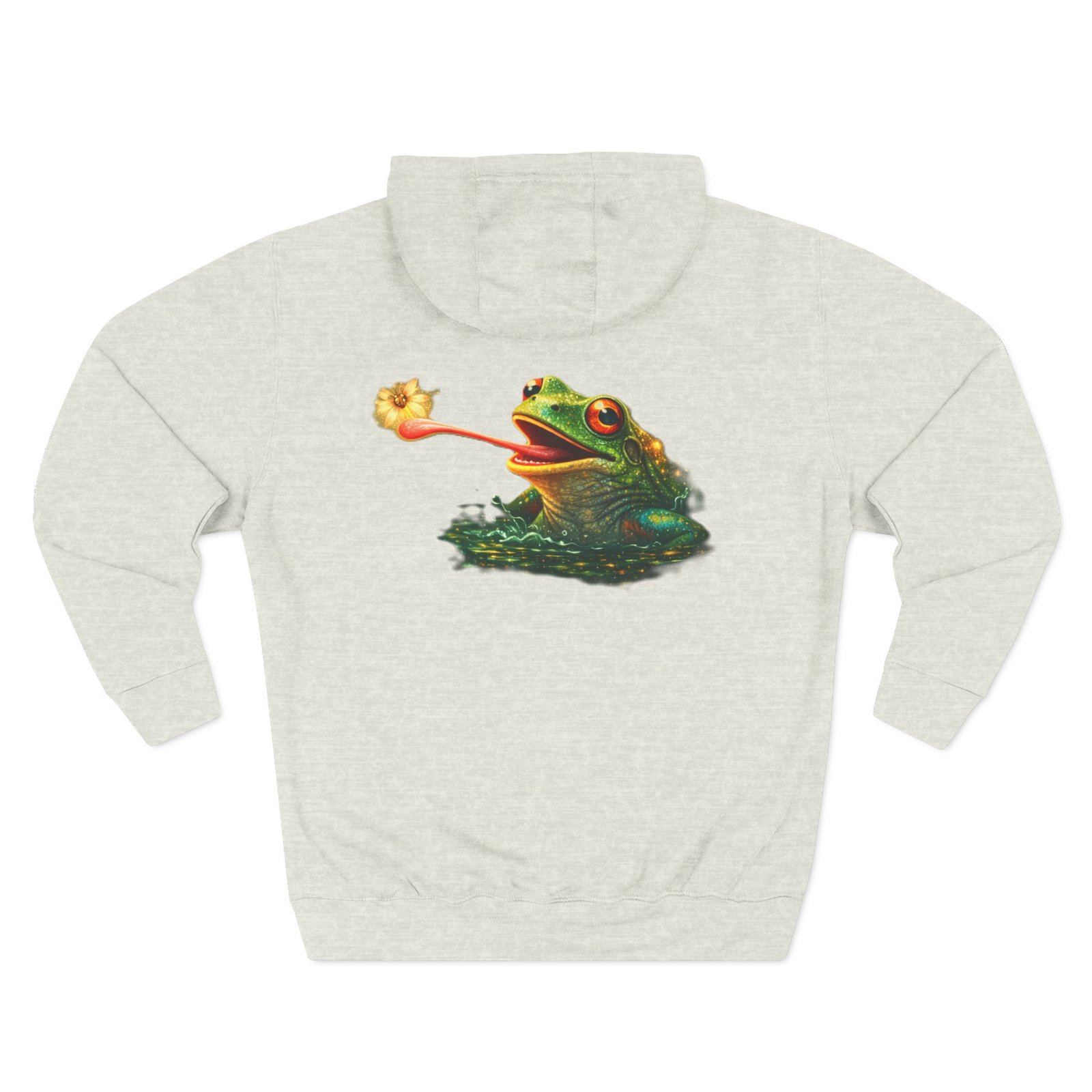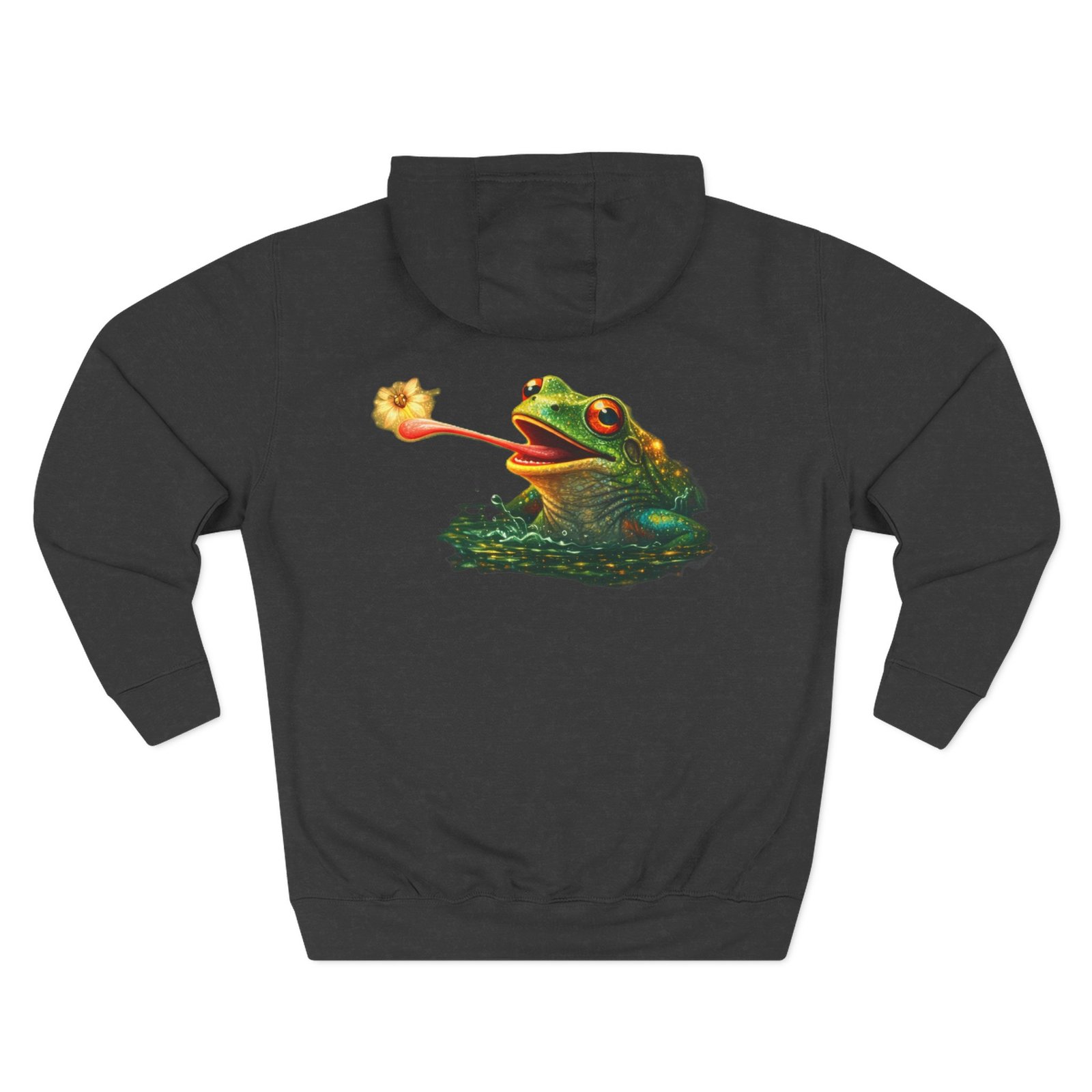 This cozy, three-panel fleece hoodie feels like a warm exhale on a damp morning by the pond. The soft, medium-heavy fleece and roomy kangaroo pocket invite you to tuck your hands in and slow down. A small embroidered emblem sits over the heart while a playful, detailed frog illustration lives on the back — a quiet nod to nature lovers who appreciate charm and personality in their everyday layers. The adjustable hood, durable stitching, and tear-away label make it comfortable for long wear, whether you’re wandering a misty trail, tending a porch garden, or layering up for a cool evening chat around a fire pit.