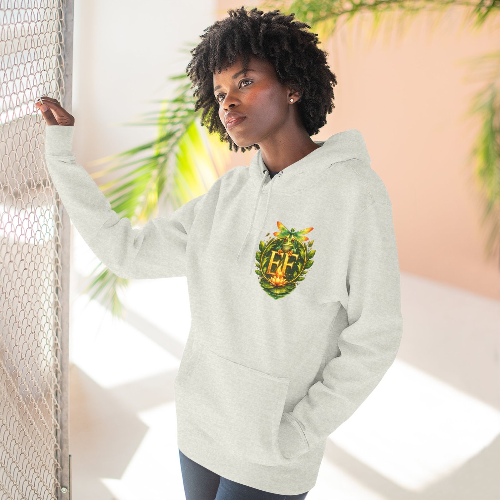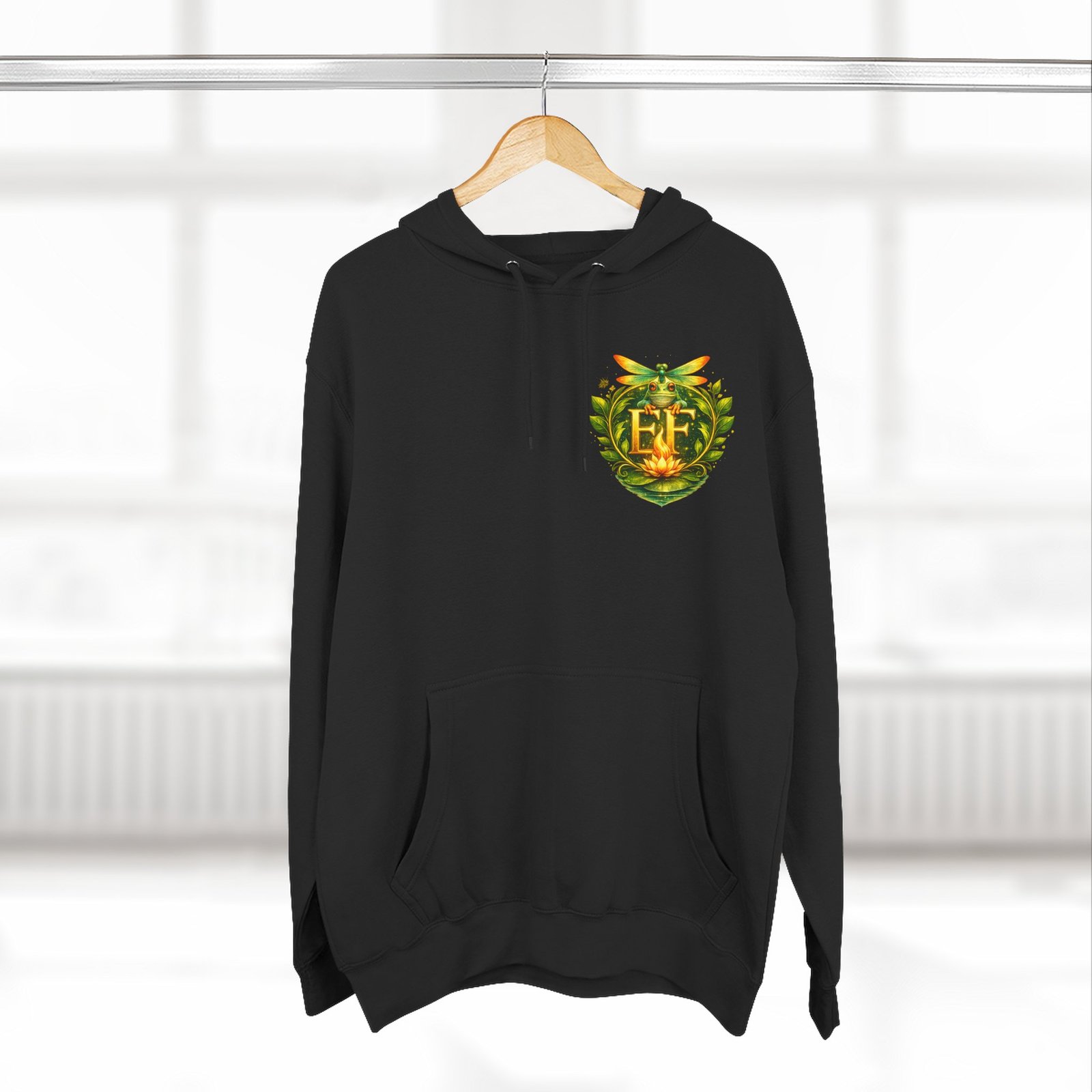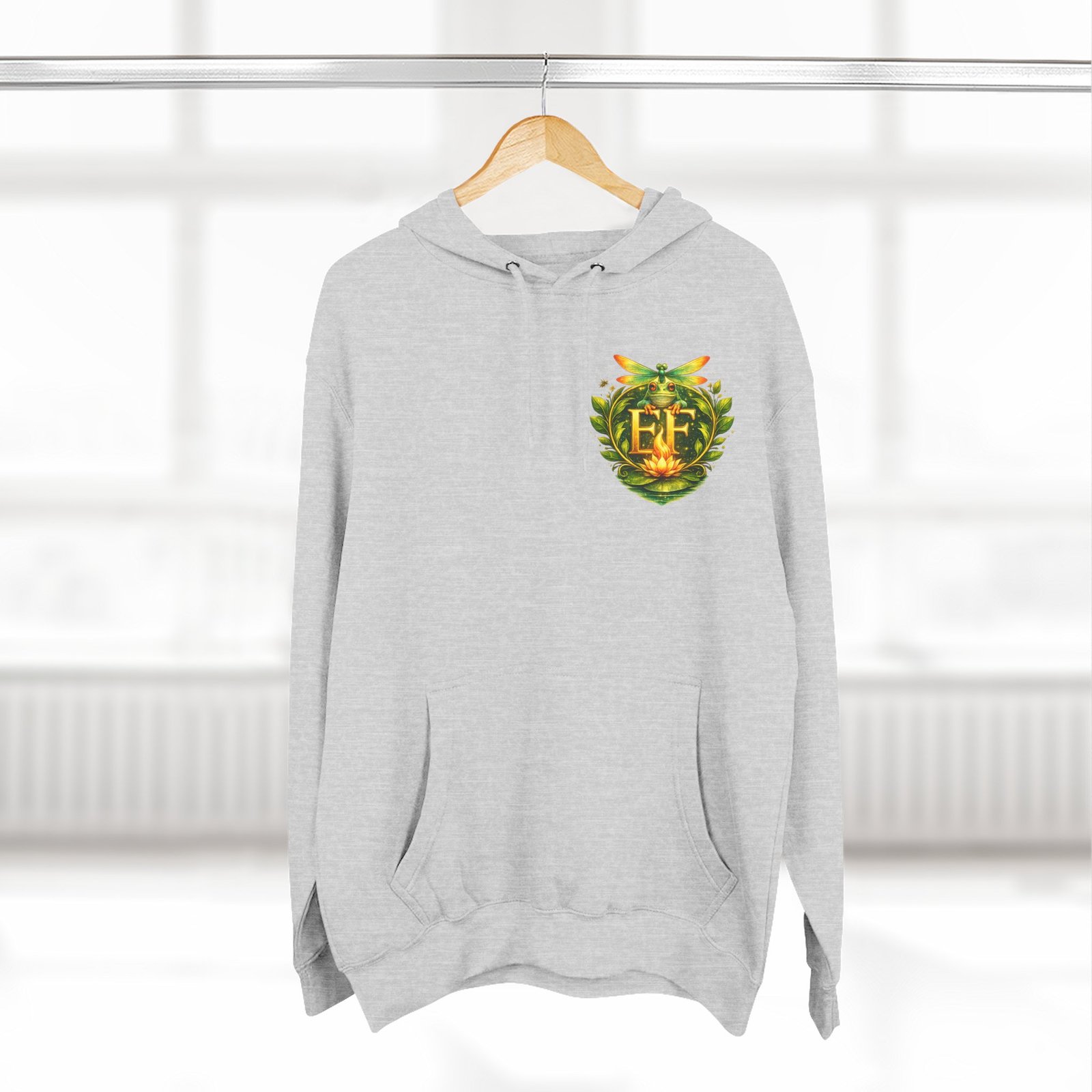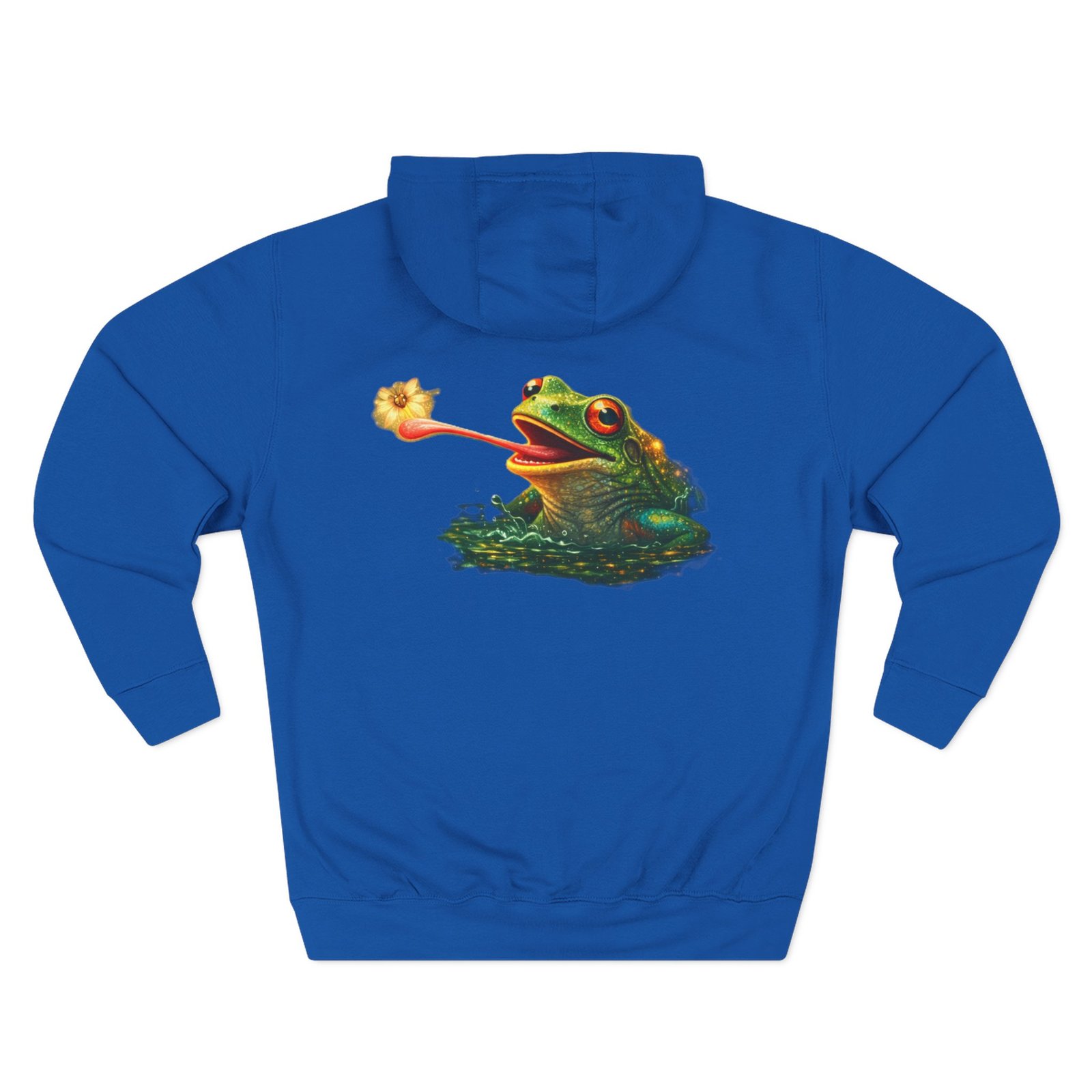 This cozy, three-panel fleece hoodie feels like a warm exhale on a damp morning by the pond. The soft, medium-heavy fleece and roomy kangaroo pocket invite you to tuck your hands in and slow down. A small embroidered emblem sits over the heart while a playful, detailed frog illustration lives on the back — a quiet nod to nature lovers who appreciate charm and personality in their everyday layers. The adjustable hood, durable stitching, and tear-away label make it comfortable for long wear, whether you’re wandering a misty trail, tending a porch garden, or layering up for a cool evening chat around a fire pit.