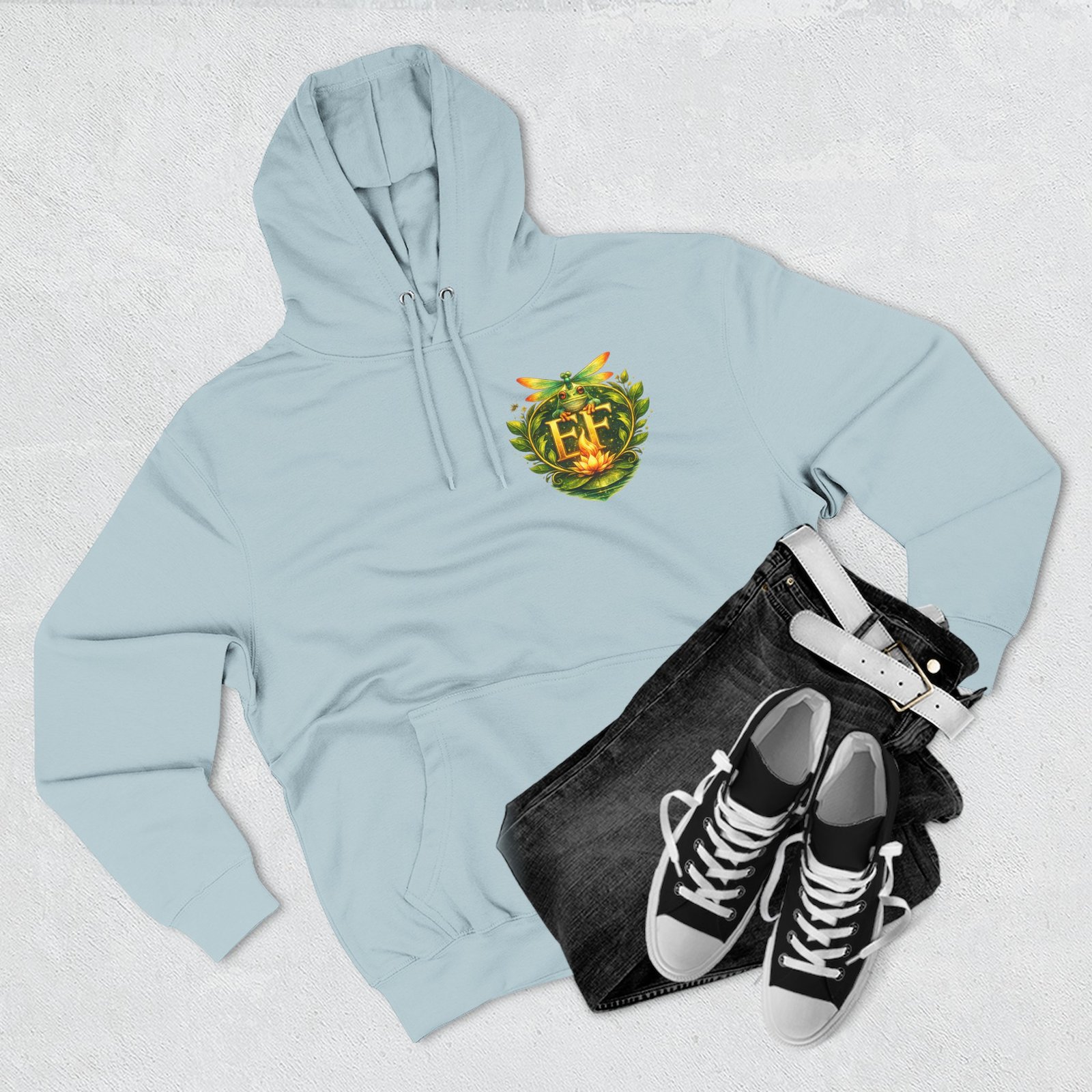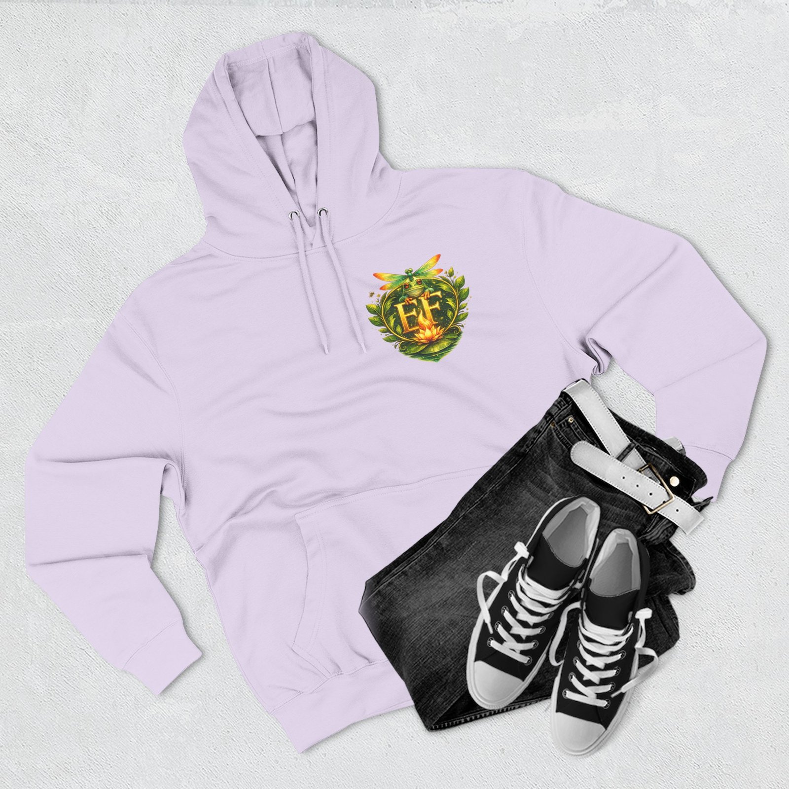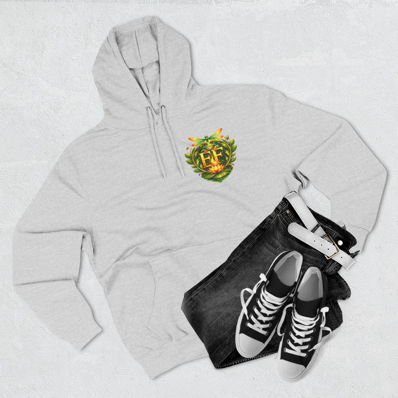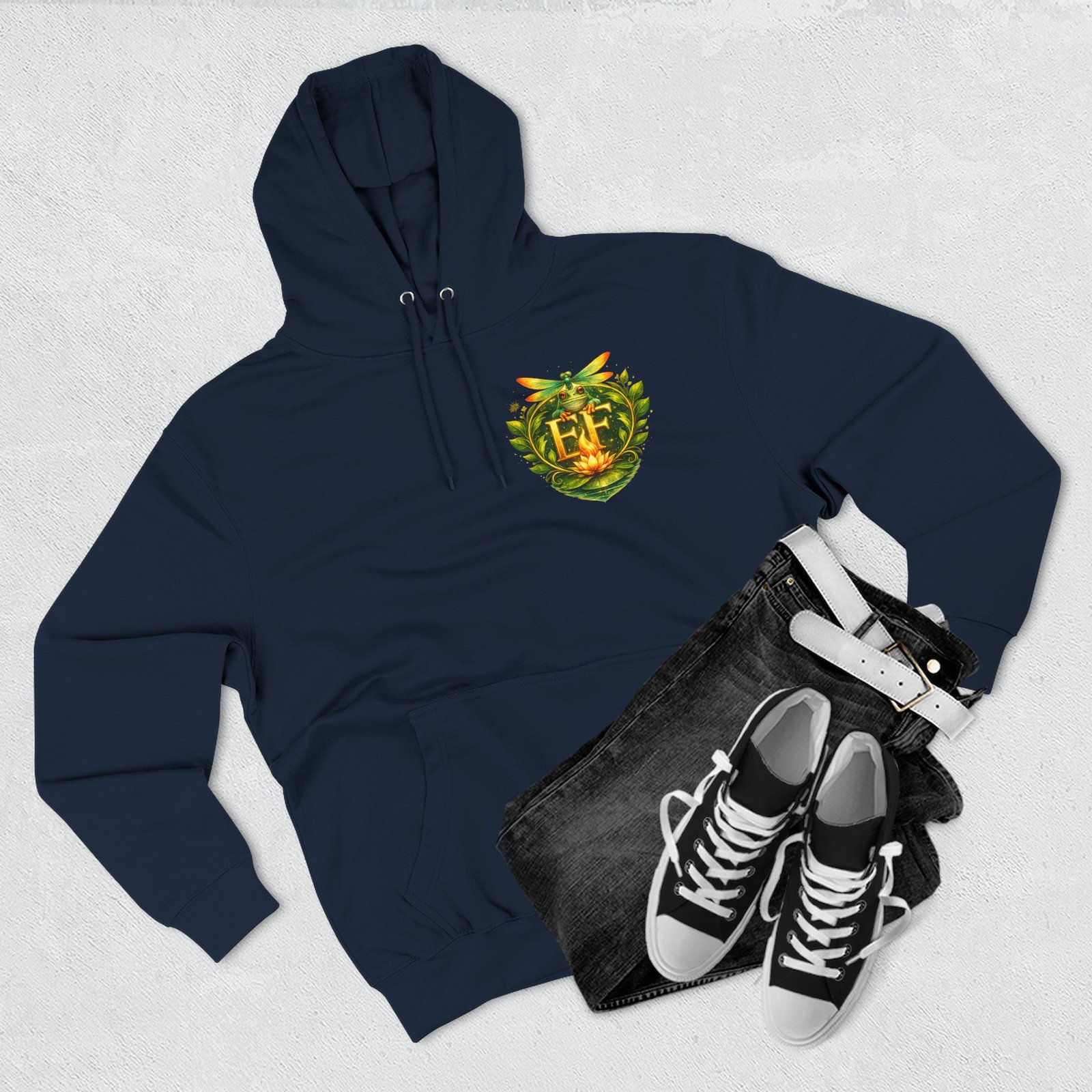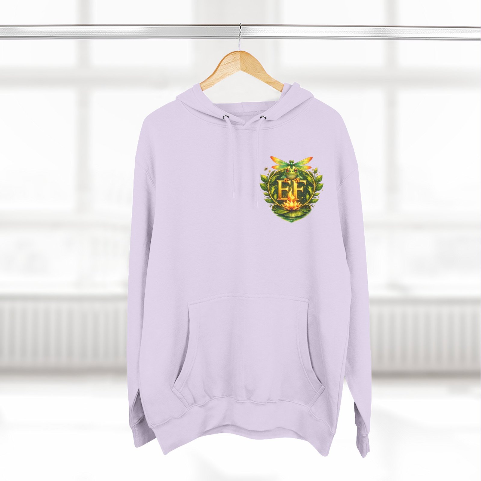 This cozy, three-panel fleece hoodie feels like a warm exhale on a damp morning by the pond. The soft, medium-heavy fleece and roomy kangaroo pocket invite you to tuck your hands in and slow down. A small embroidered emblem sits over the heart while a playful, detailed frog illustration lives on the back — a quiet nod to nature lovers who appreciate charm and personality in their everyday layers. The adjustable hood, durable stitching, and tear-away label make it comfortable for long wear, whether you’re wandering a misty trail, tending a porch garden, or layering up for a cool evening chat around a fire pit.