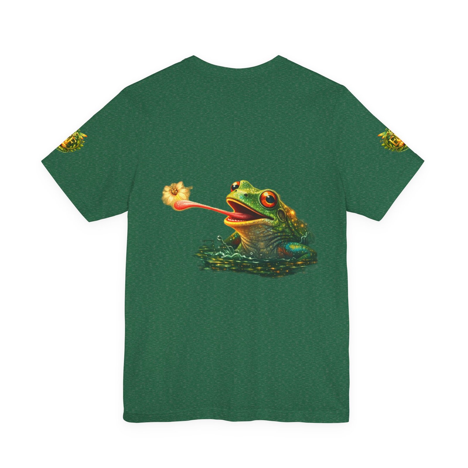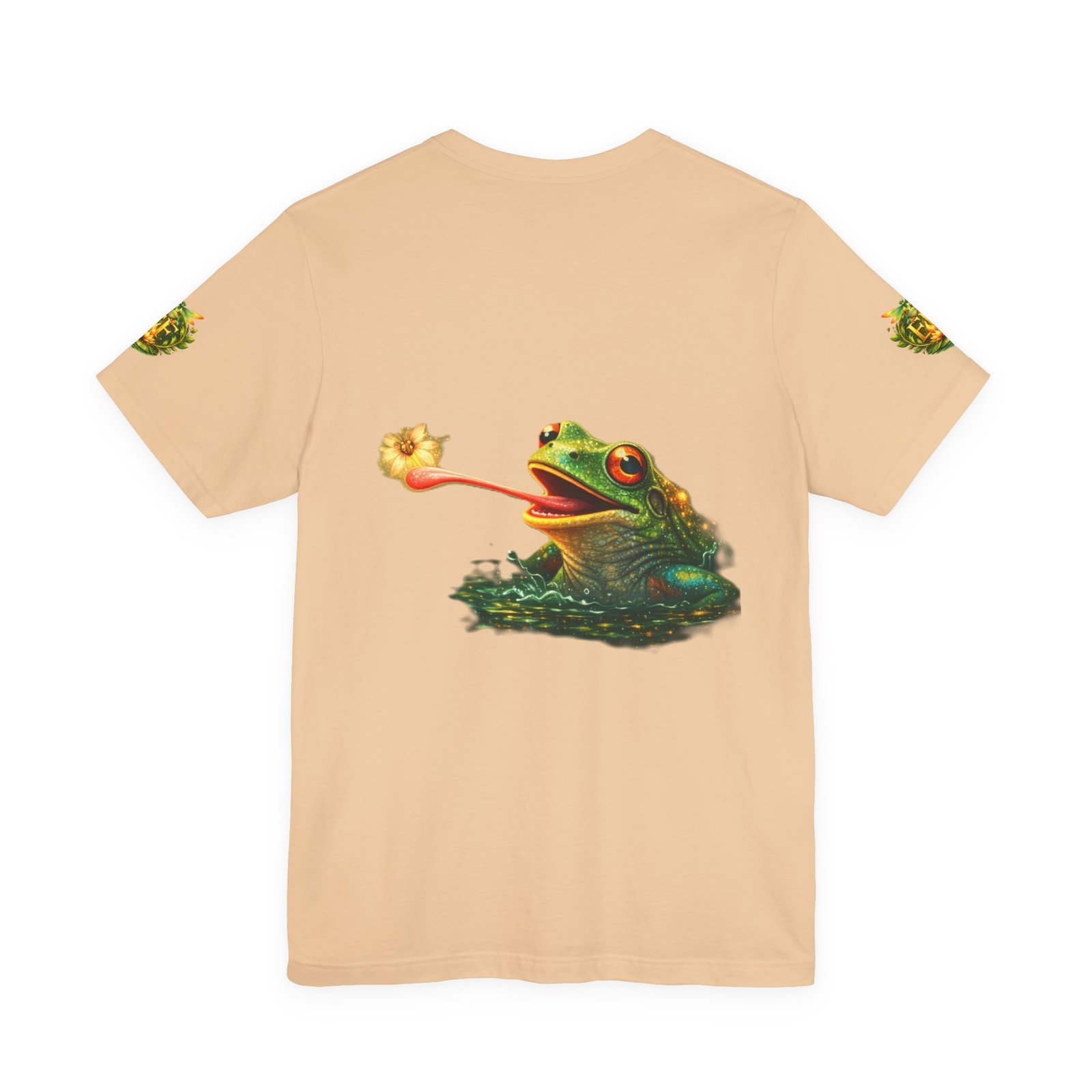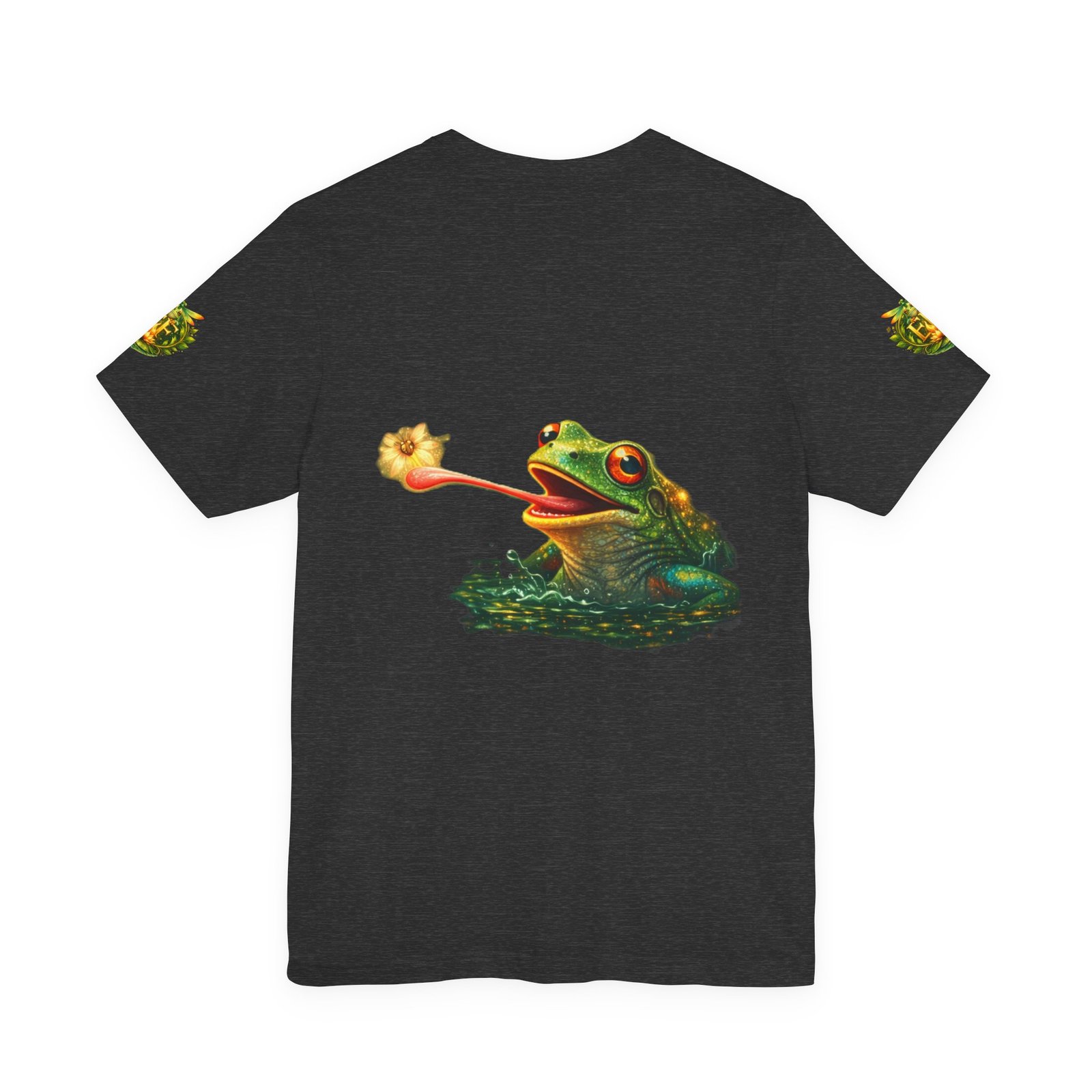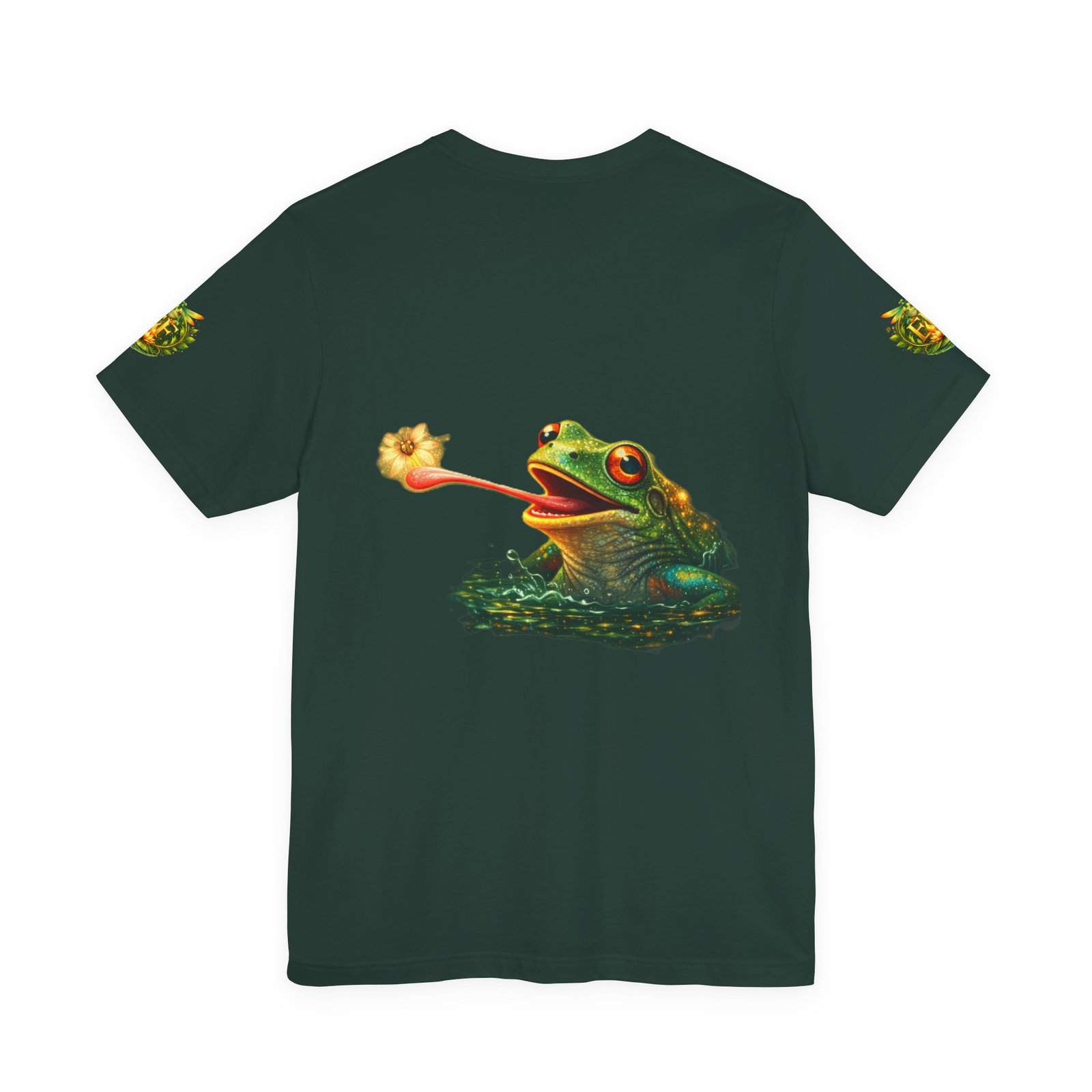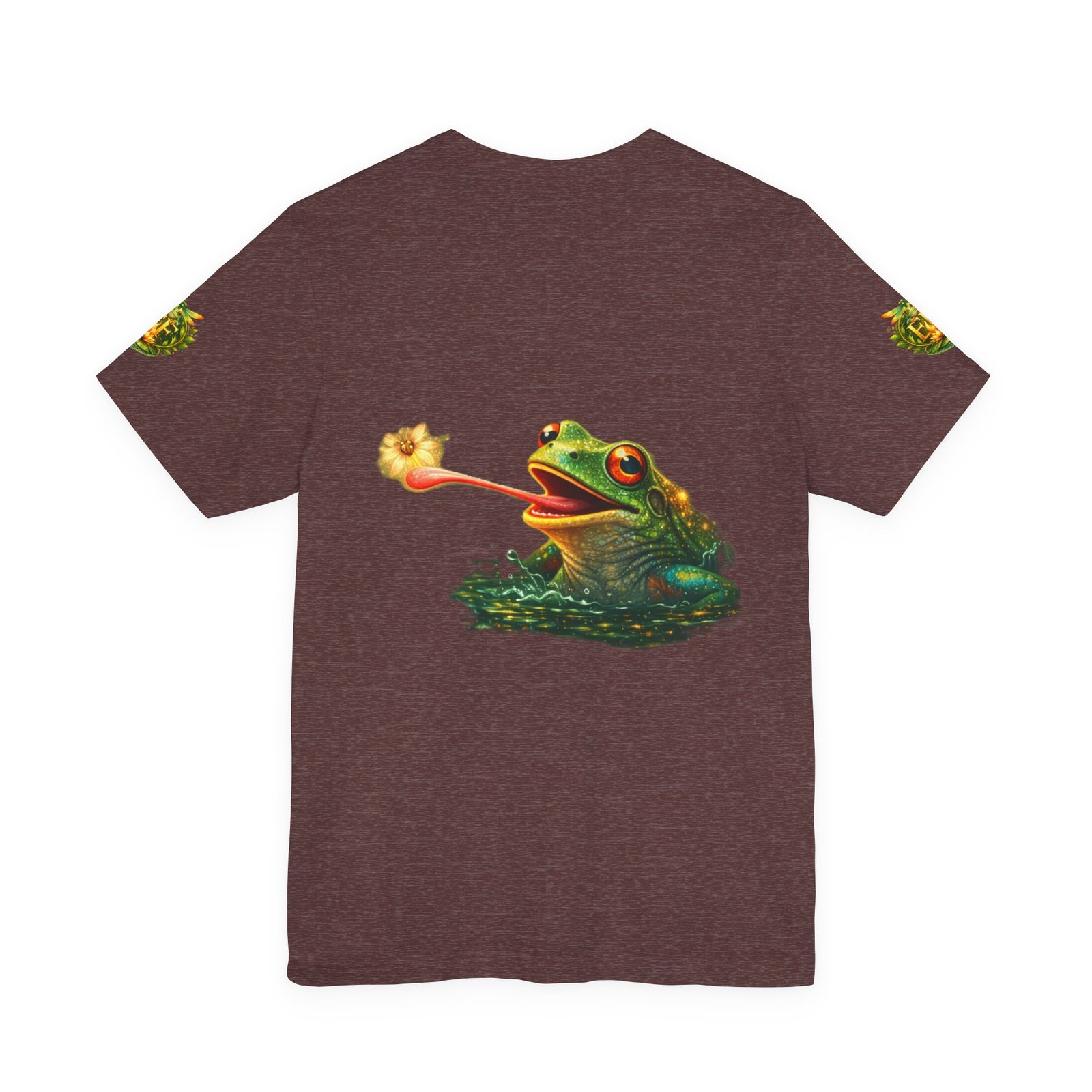 Lightweight, breathable, and subtly playful — this tee brings a touch of countryside charm to everyday wear. The front chest features a small laurel-emblem with initials, while the back reveals a lively frog mid-tongue-snap, adding a wink of personality when you move. Soft Airlume combed and ring-spun cotton keeps the shirt comfortable against the skin; thoughtful details like a ribbed knit collar, side seams, and shoulder tape keep the shape crisp after many wears. Wear it on slow mornings with coffee, at backyard gatherings, or layered under an open shirt for an easy nod to nature and quiet humor.