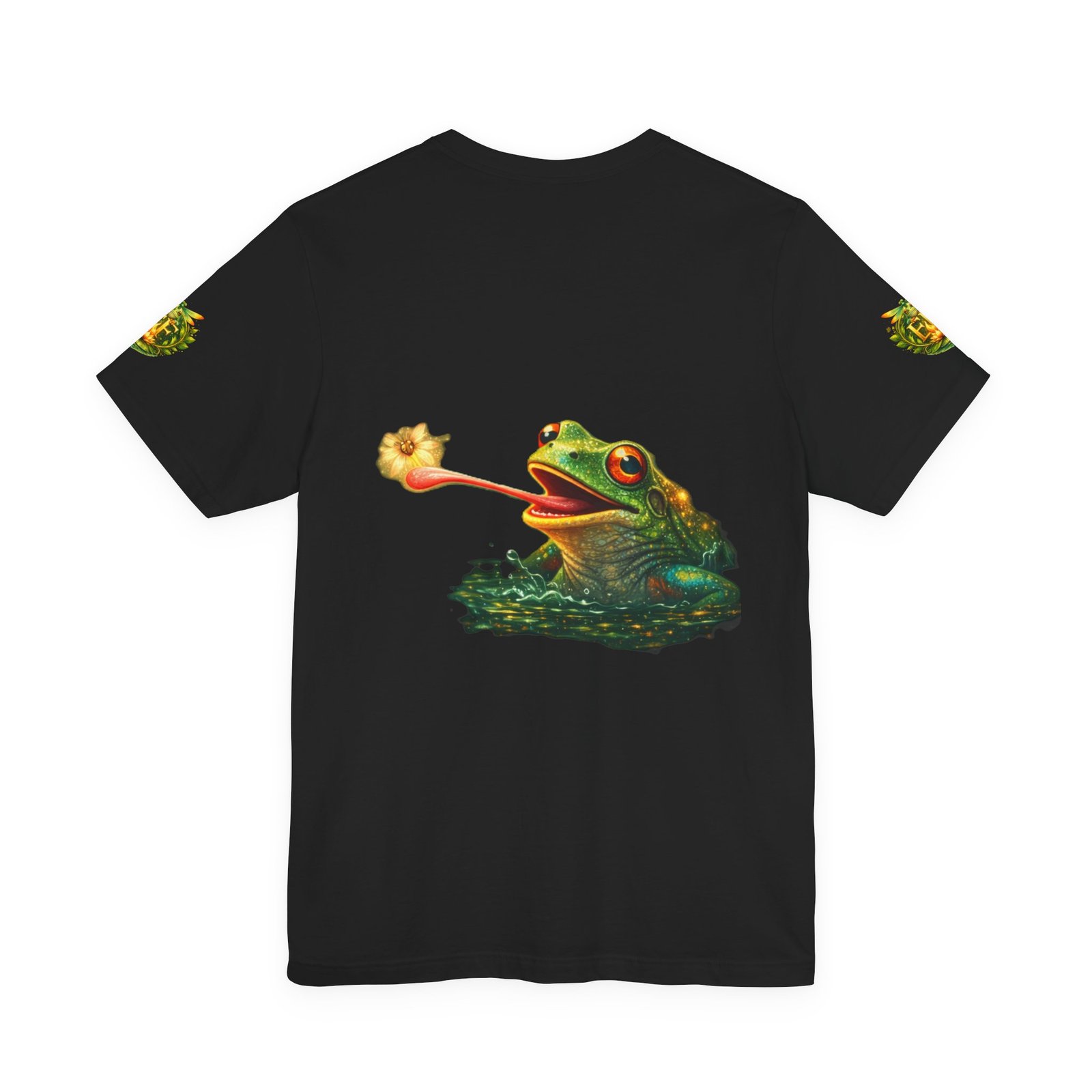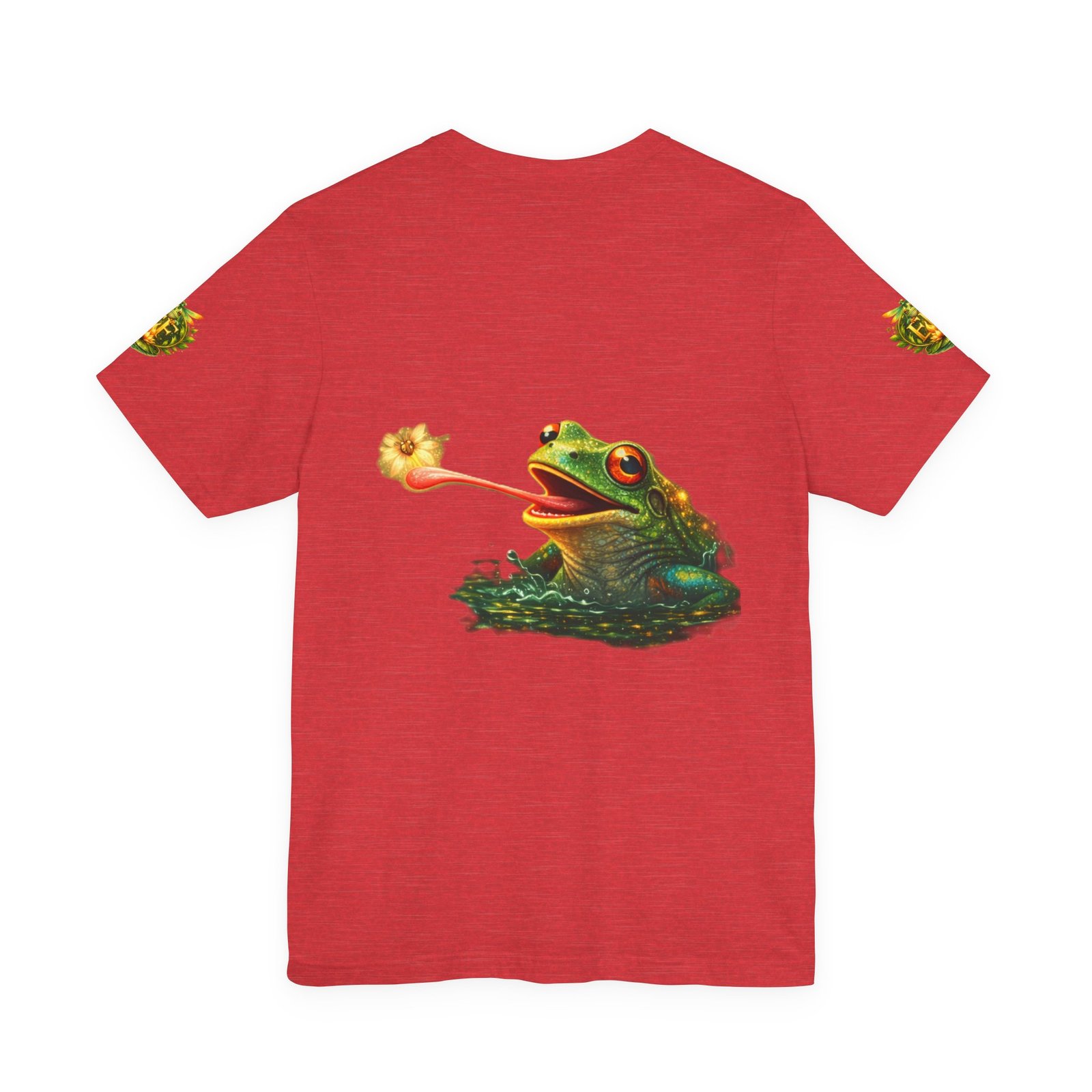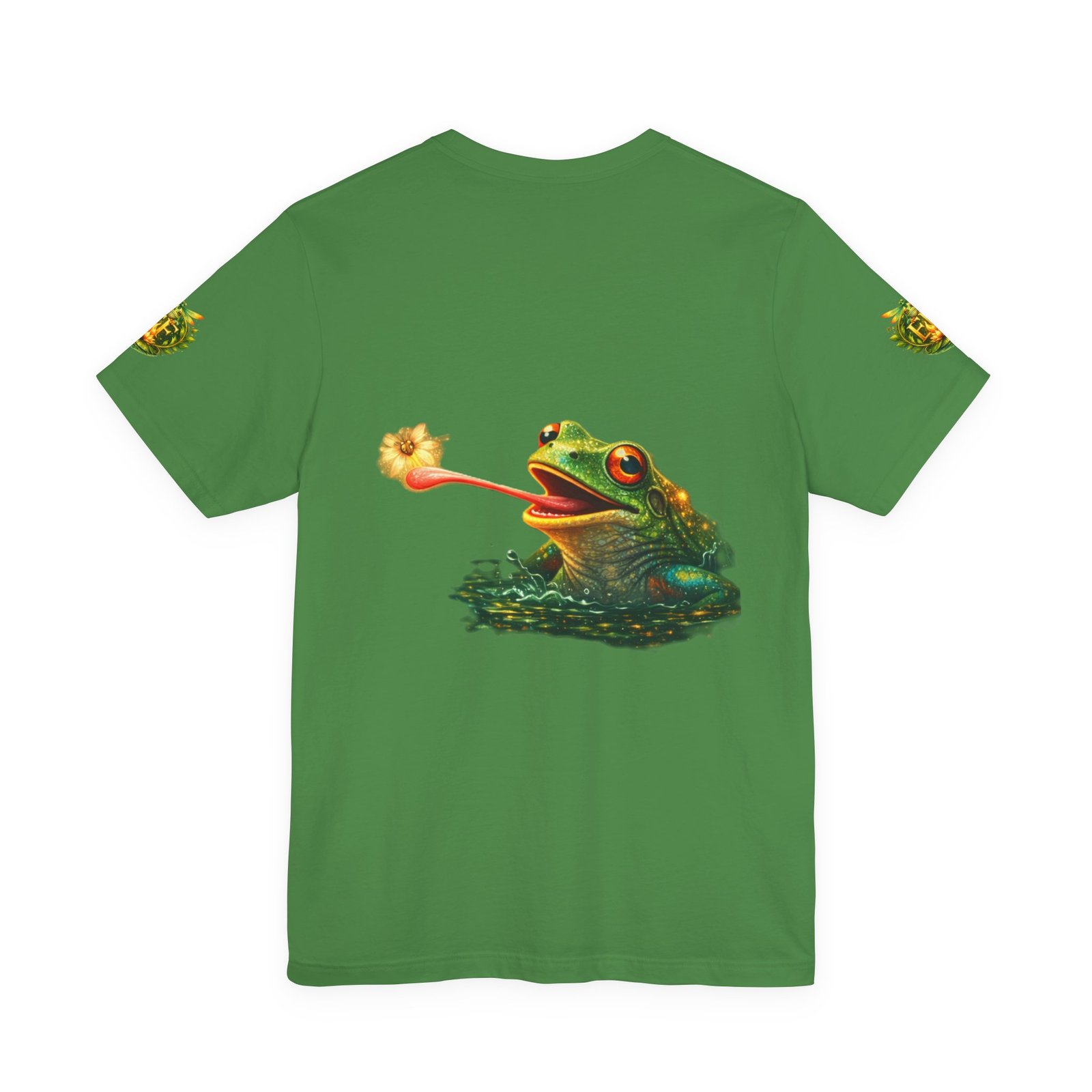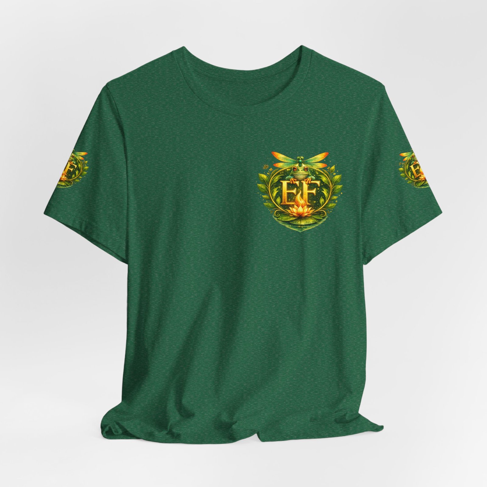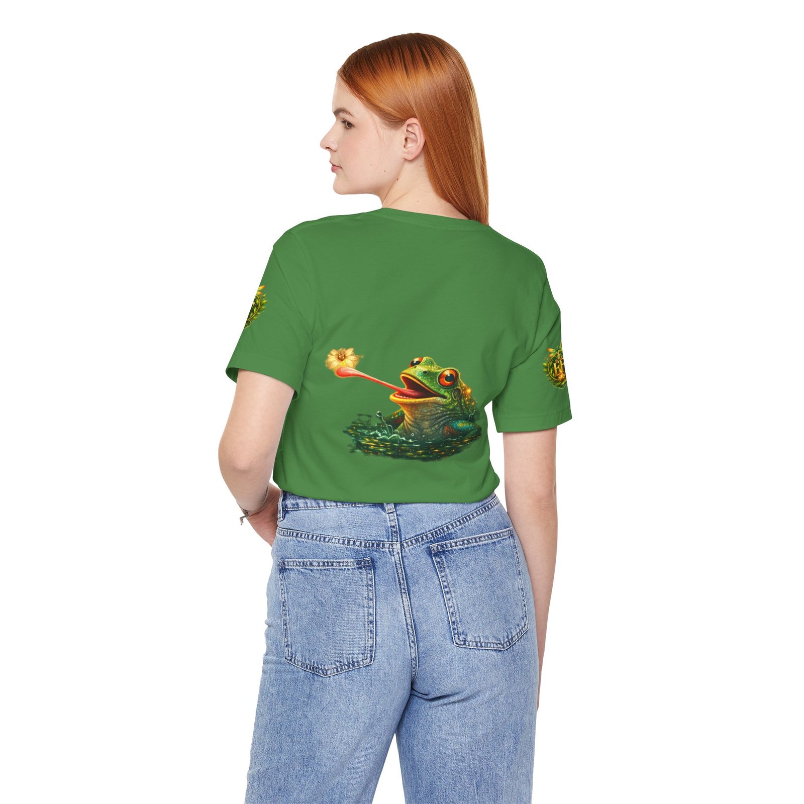 Lightweight, breathable, and subtly playful — this tee brings a touch of countryside charm to everyday wear. The front chest features a small laurel-emblem with initials, while the back reveals a lively frog mid-tongue-snap, adding a wink of personality when you move. Soft Airlume combed and ring-spun cotton keeps the shirt comfortable against the skin; thoughtful details like a ribbed knit collar, side seams, and shoulder tape keep the shape crisp after many wears. Wear it on slow mornings with coffee, at backyard gatherings, or layered under an open shirt for an easy nod to nature and quiet humor.