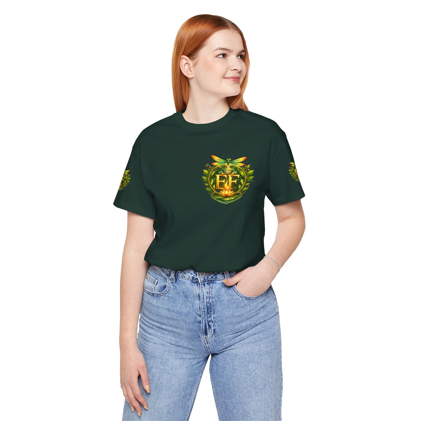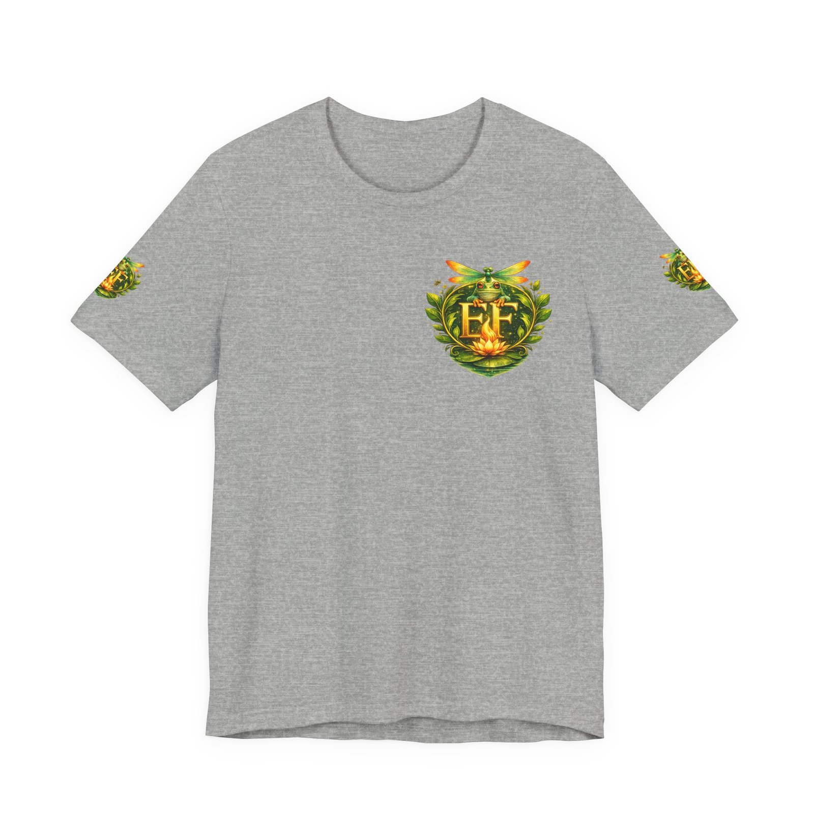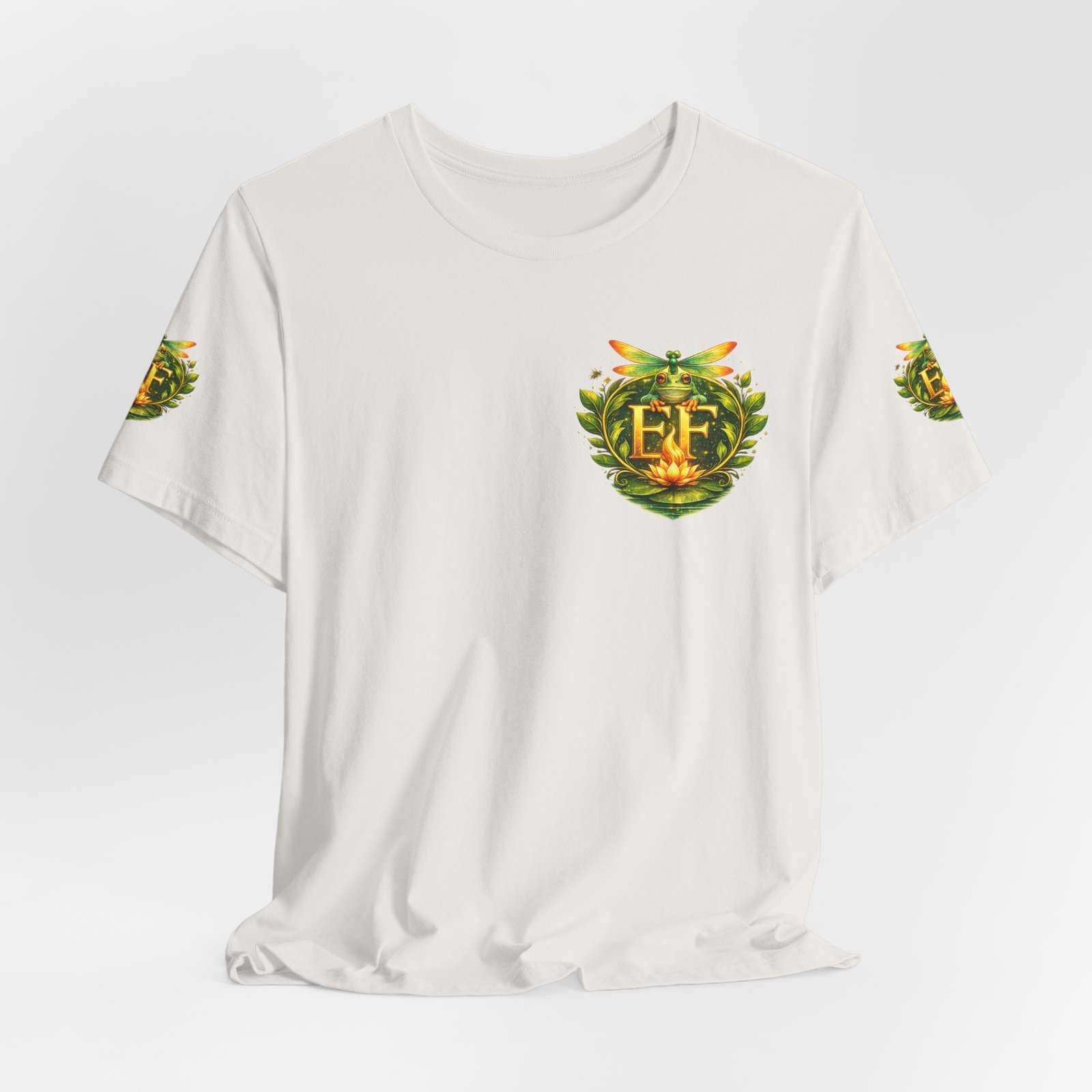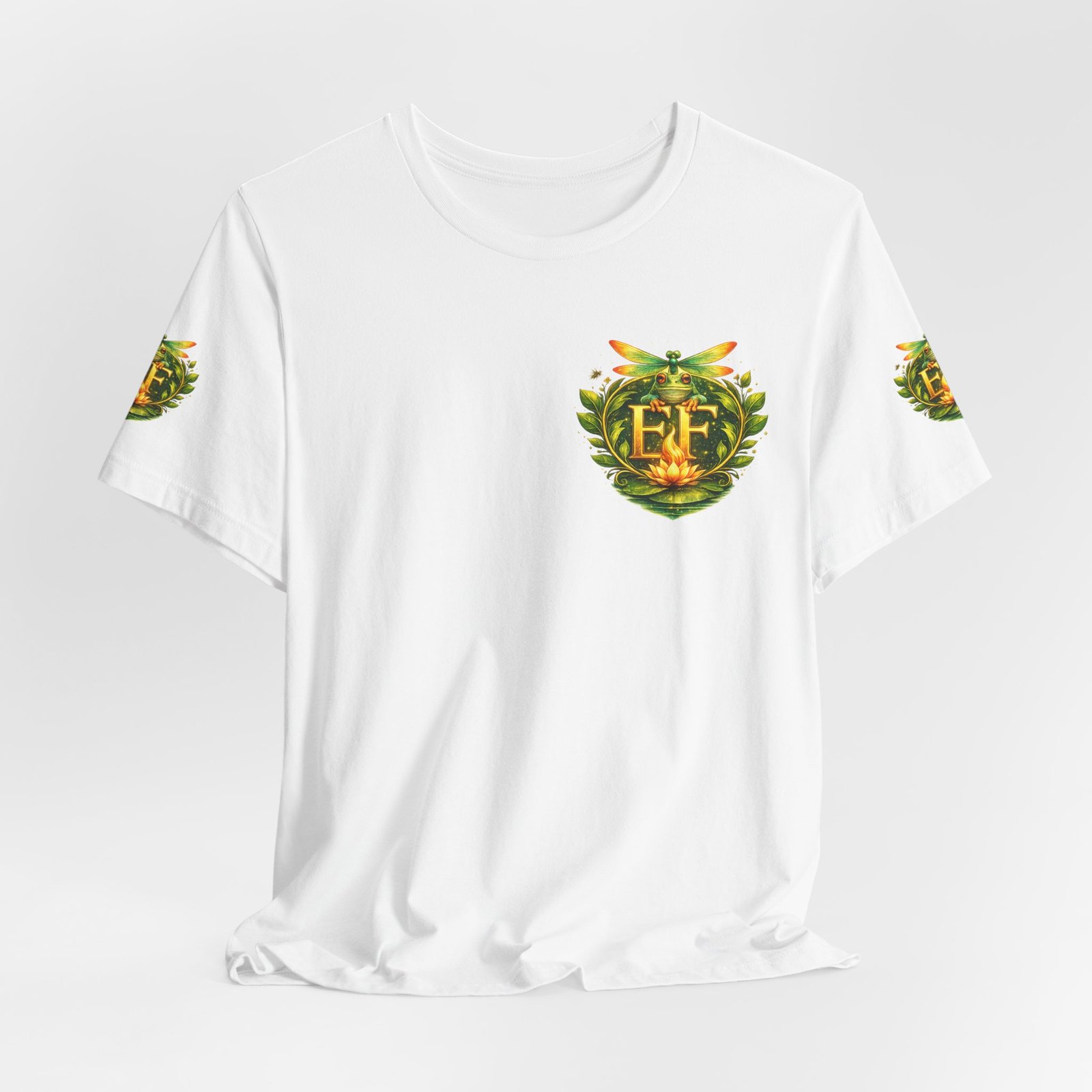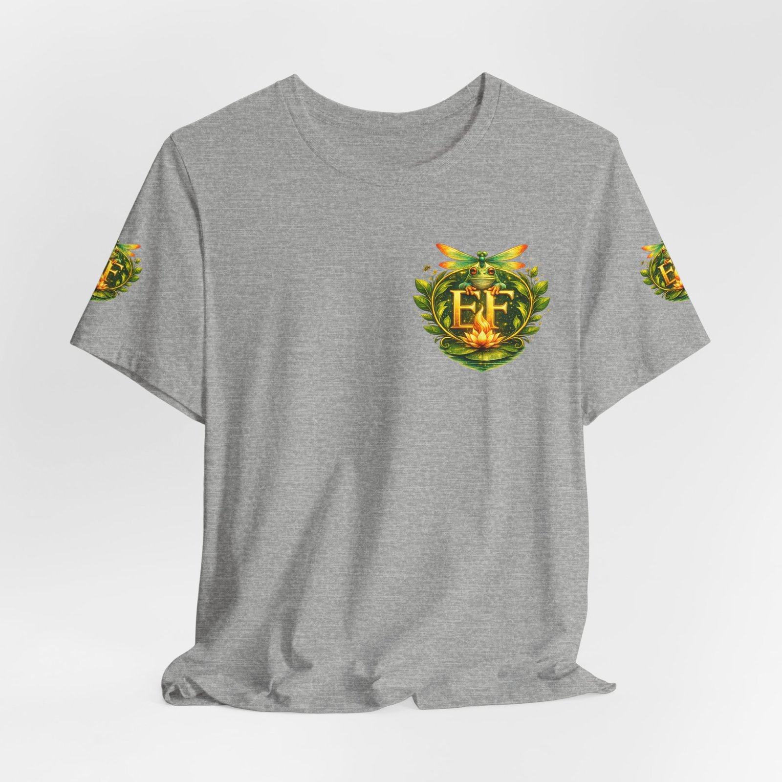 Lightweight, breathable, and subtly playful — this tee brings a touch of countryside charm to everyday wear. The front chest features a small laurel-emblem with initials, while the back reveals a lively frog mid-tongue-snap, adding a wink of personality when you move. Soft Airlume combed and ring-spun cotton keeps the shirt comfortable against the skin; thoughtful details like a ribbed knit collar, side seams, and shoulder tape keep the shape crisp after many wears. Wear it on slow mornings with coffee, at backyard gatherings, or layered under an open shirt for an easy nod to nature and quiet humor.