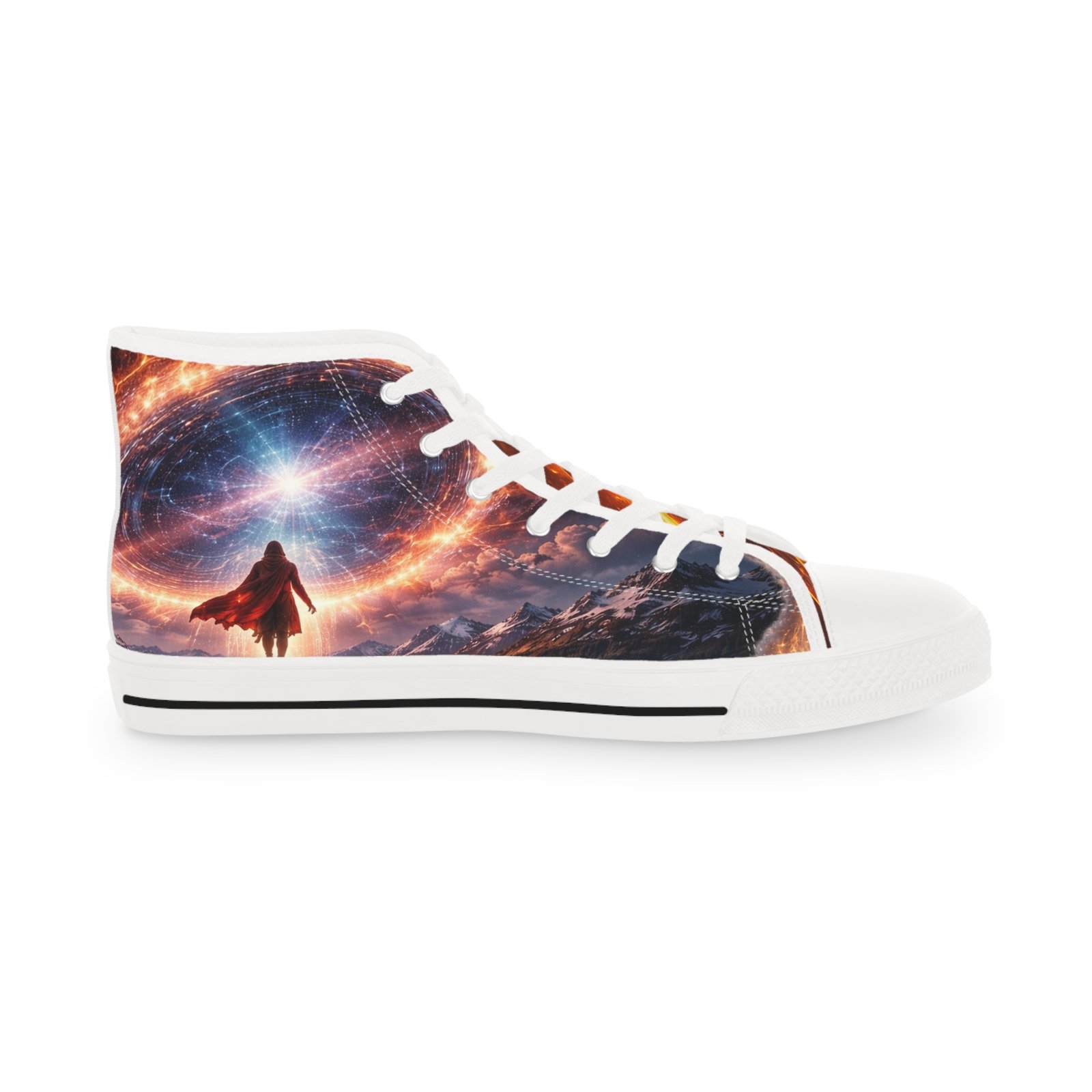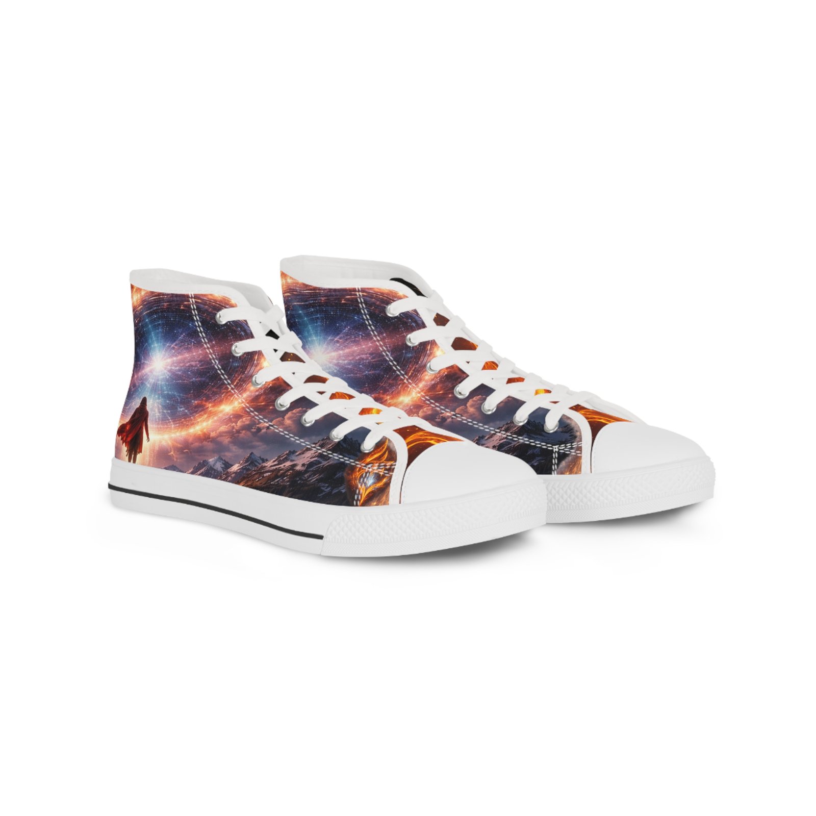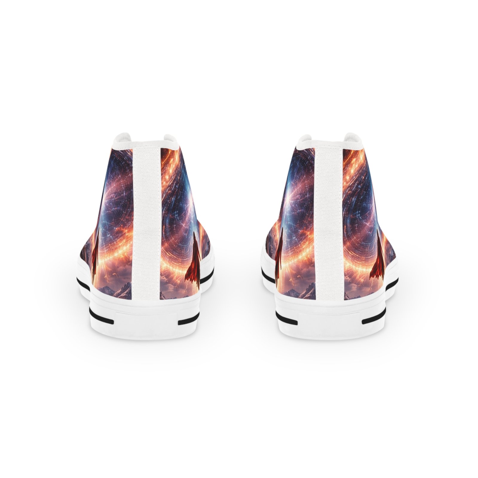 These high-top sneakers bring evening-city energy to every step. The wraparound print captures streaks of neon and warm streetlight glow, turning sidewalks into a moving canvas. Soft polyester canvas and a foamed lining cradle your feet, while EVA memory foam insoles and a shock-absorbing outsole keep long walks light and steady. Metal eyelets and pleather-reinforced toes add structure and resilience where it’s needed most. Wear them with cropped jeans or layered in winter—they ground casual outfits with bold, urban character and hold up through nights out and everyday commutes. Product features – 100% polyester canvas with foamed lining for soft, comfortable wear – EVA deodorant memory foam insoles for lightweight shock absorption – Pleather-reinforced round toe and durable rubber outsole for added protection – Silver metal eyelets and PU leather accents for durability and style – Full wraparound print covering left, right and tongue for continuous, vivid design Care instructions – To maintain clean, use warm water with dish soap to clean off any dirt spots. It’s not necessary to soak the whole item. For hard-to-clean spots, use a soft-bristled brush.