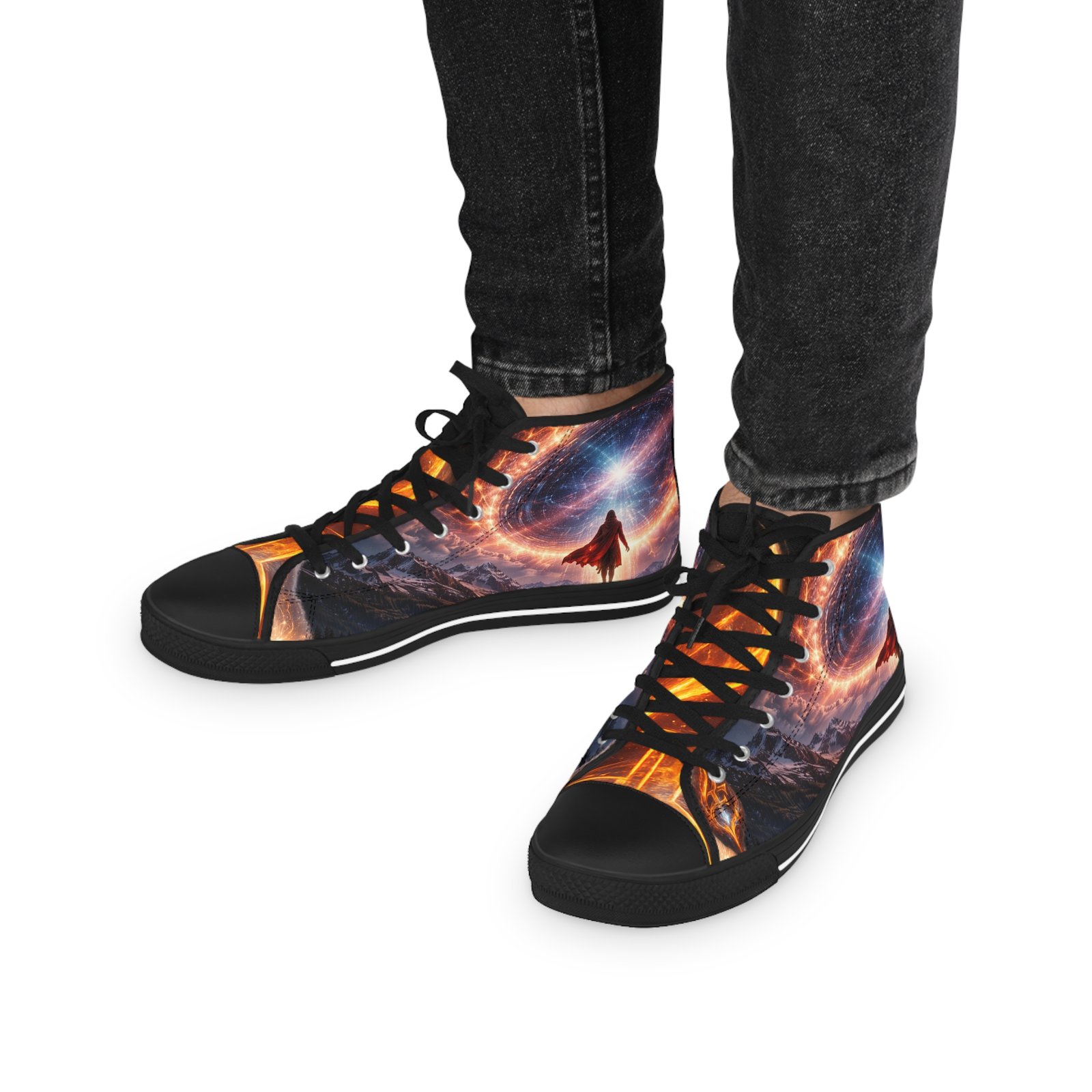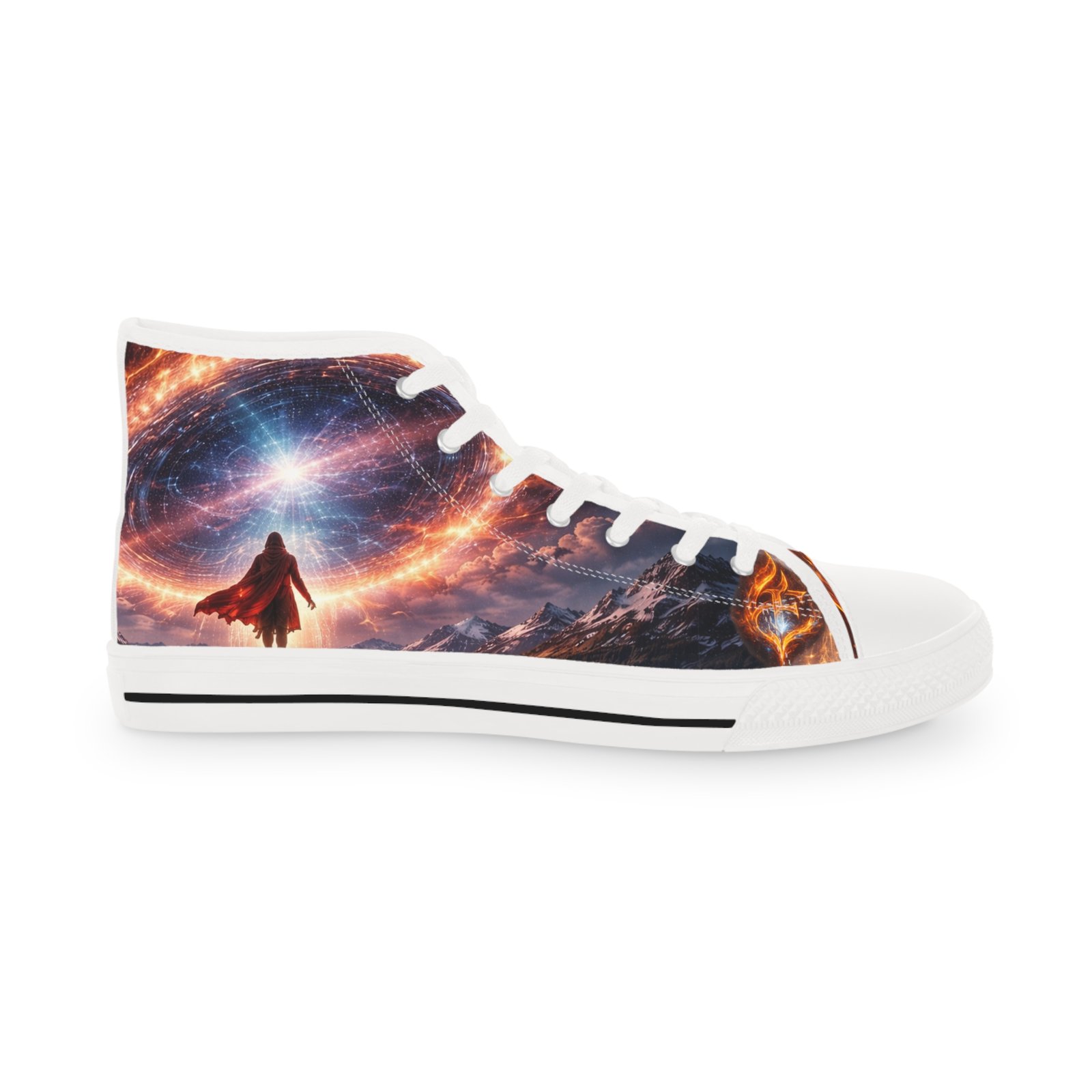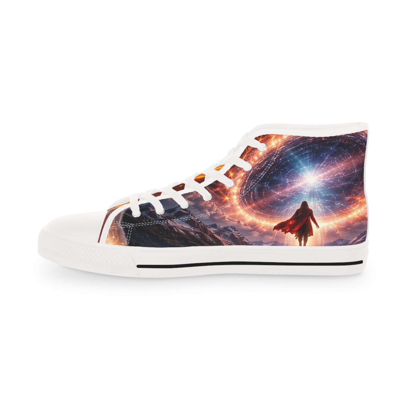 These high-top sneakers bring evening-city energy to every step. The wraparound print captures streaks of neon and warm streetlight glow, turning sidewalks into a moving canvas. Soft polyester canvas and a foamed lining cradle your feet, while EVA memory foam insoles and a shock-absorbing outsole keep long walks light and steady. Metal eyelets and pleather-reinforced toes add structure and resilience where it’s needed most. Wear them with cropped jeans or layered in winter—they ground casual outfits with bold, urban character and hold up through nights out and everyday commutes. Product features – 100% polyester canvas with foamed lining for soft, comfortable wear – EVA deodorant memory foam insoles for lightweight shock absorption – Pleather-reinforced round toe and durable rubber outsole for added protection – Silver metal eyelets and PU leather accents for durability and style – Full wraparound print covering left, right and tongue for continuous, vivid design Care instructions – To maintain clean, use warm water with dish soap to clean off any dirt spots. It’s not necessary to soak the whole item. For hard-to-clean spots, use a soft-bristled brush.