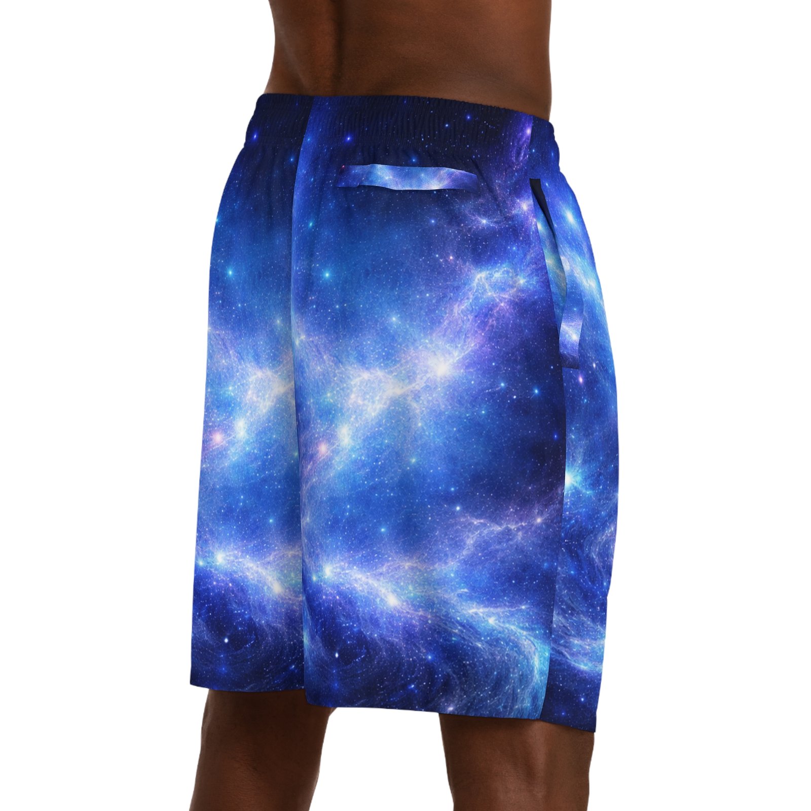 These breathable jogger shorts bring the cosmos into everyday wear. A vivid all-over galaxy print shimmers across lightweight, moisture-wicking polyester, so movement feels cool and effortless whether you’re running errands, hitting a trail, or lounging at home. The elastic waistband with interior drawstring and loose cut give room to move, while side-slit and back pockets (back pocket with secure velcro) keep small essentials close. Subtle seam-matched stitching and the option to customize pocket interiors add thoughtful detail — a practical, standout piece for anyone who likes their gear to feel both functional and a little otherworldly.