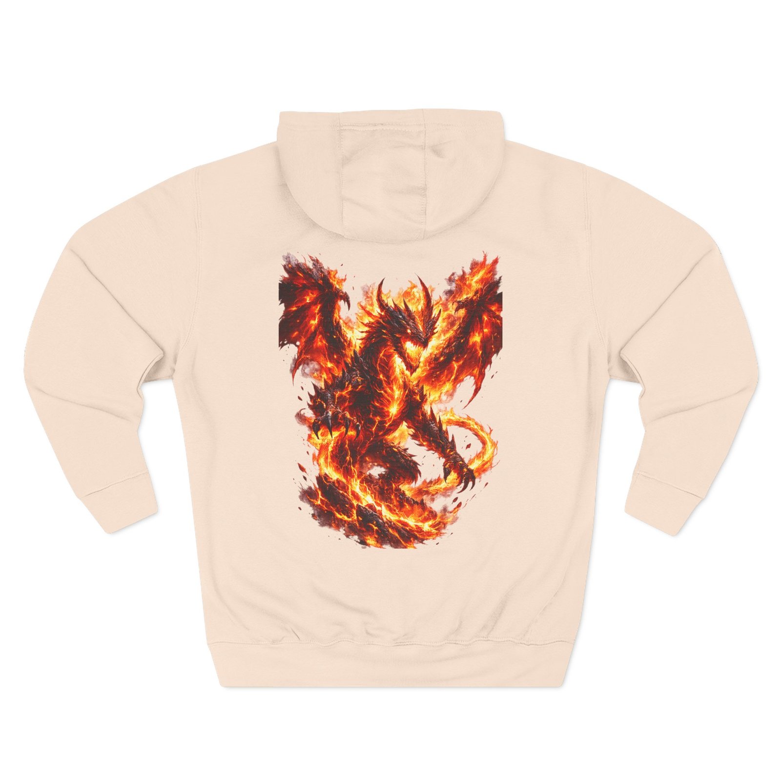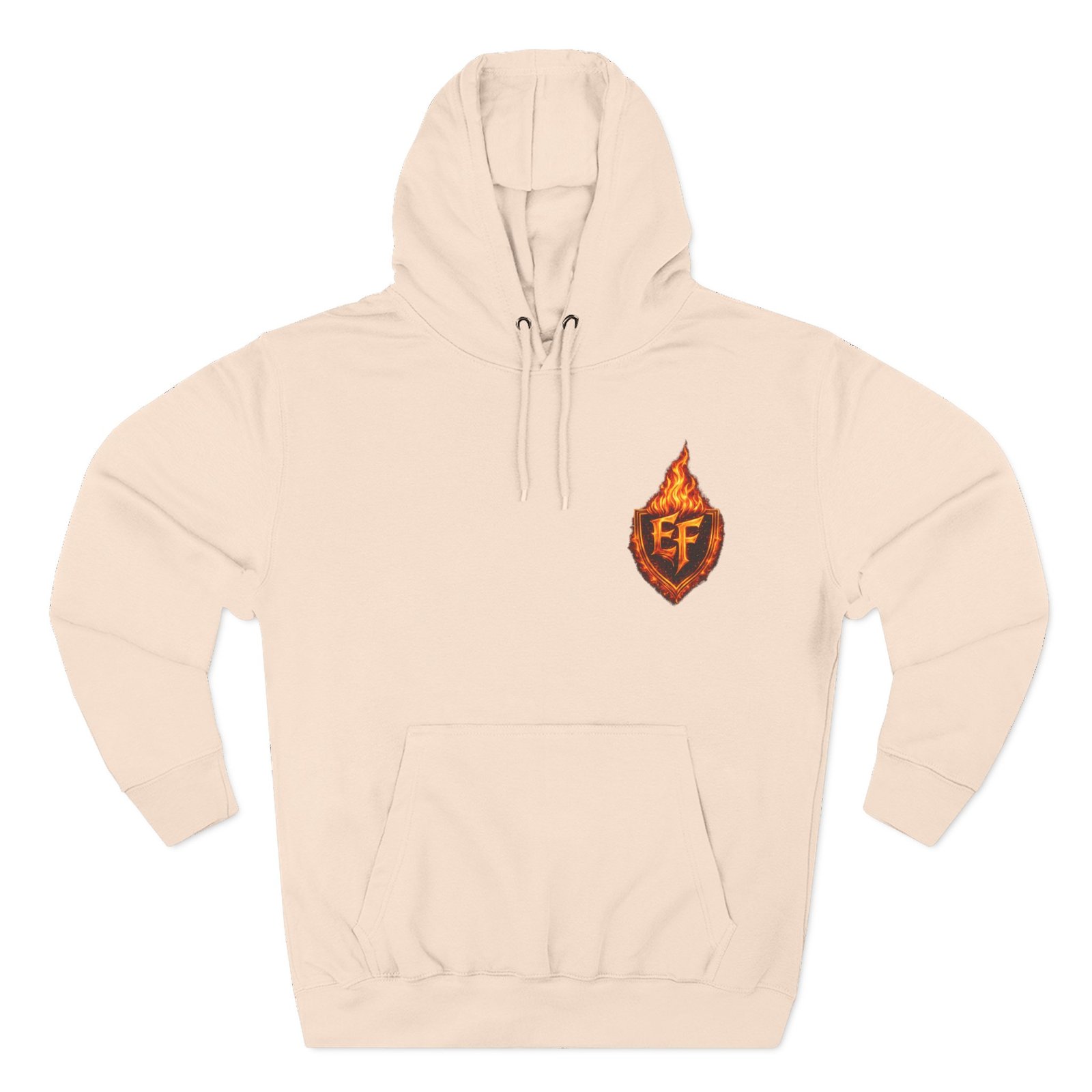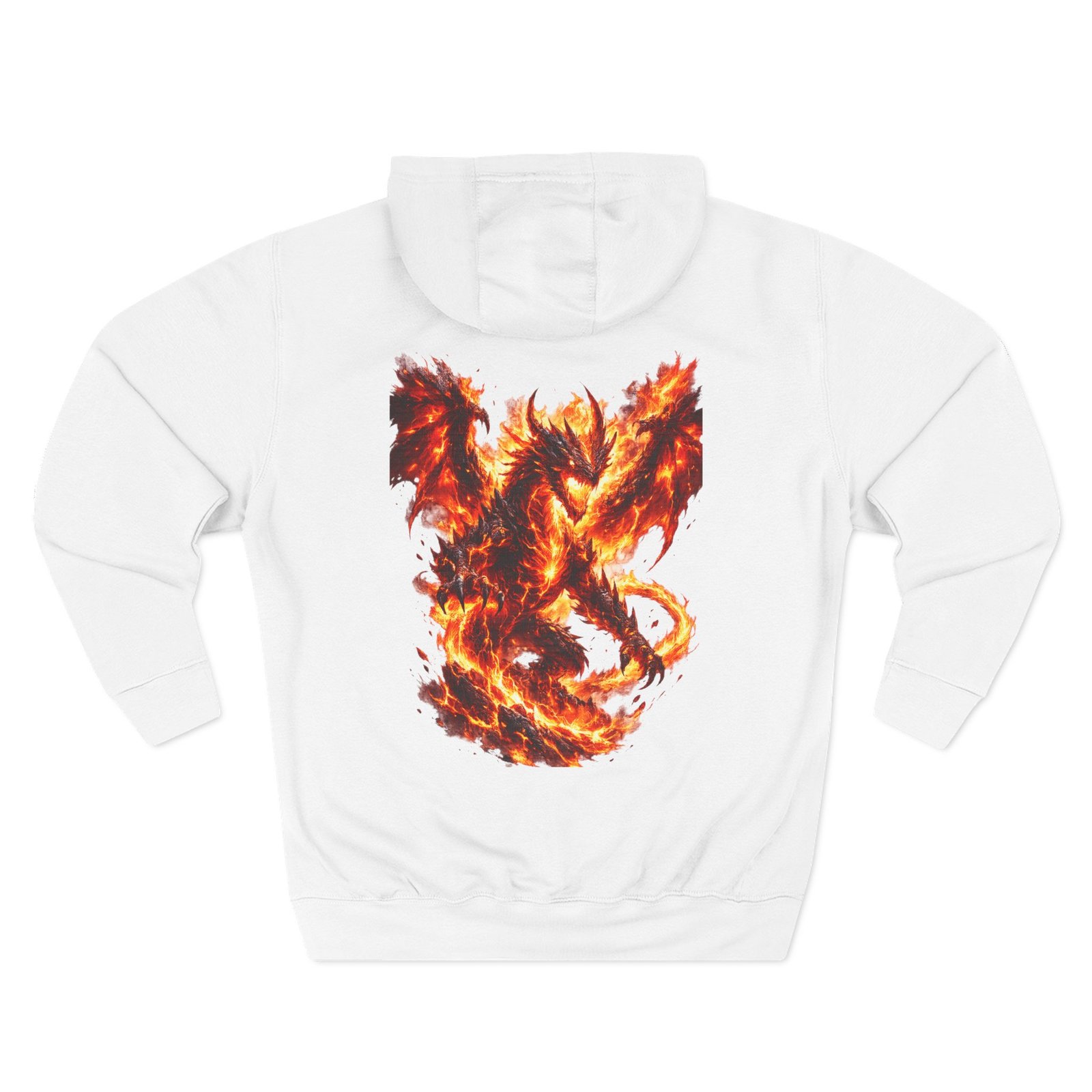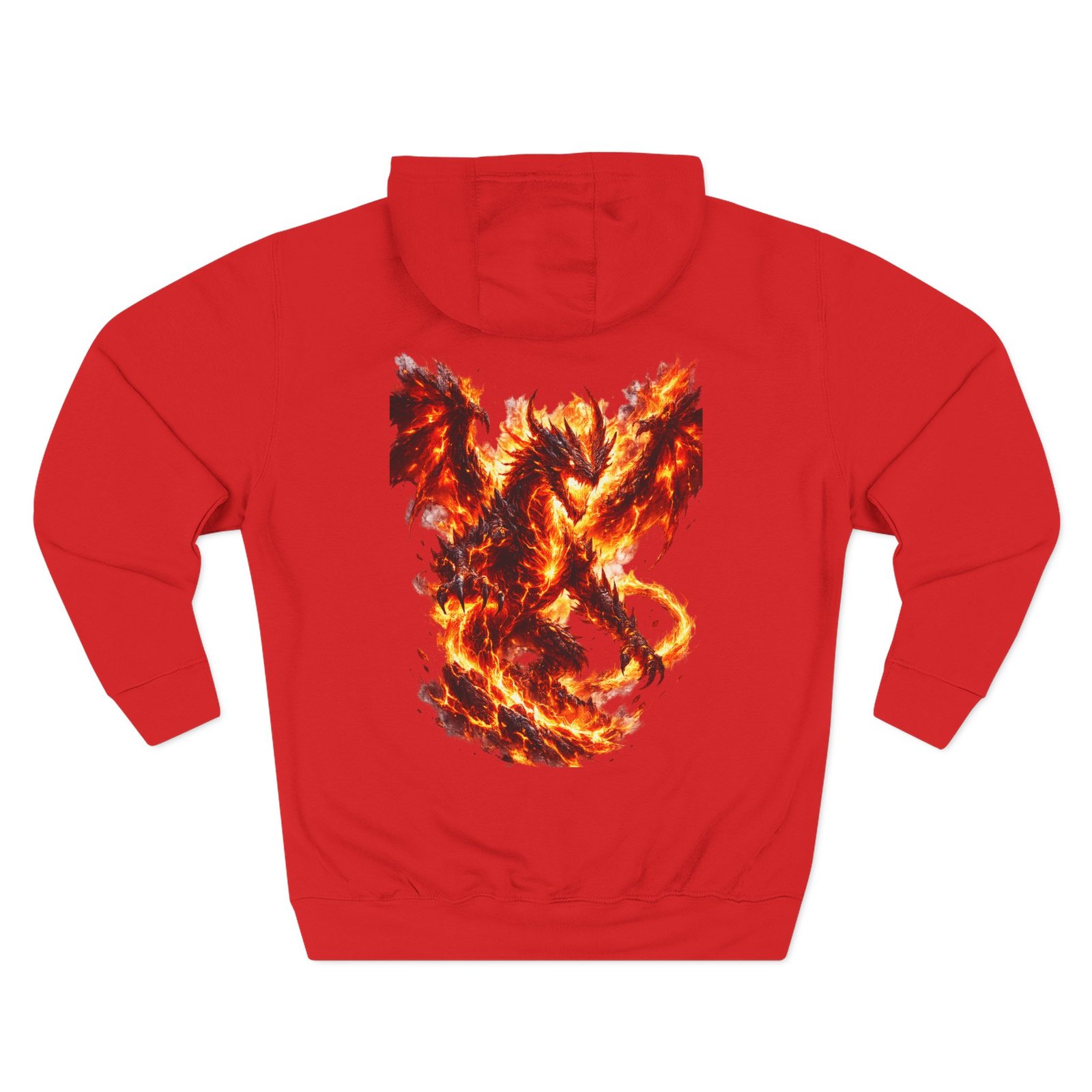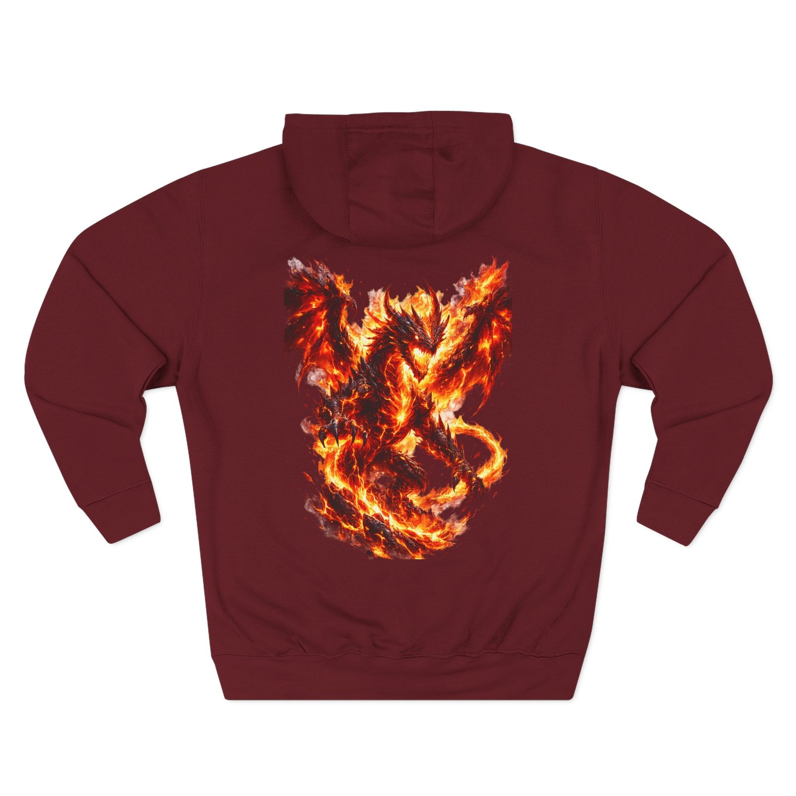 This fleece hoodie brings a fiery, expressive energy to quiet days and busy nights. Built with a soft, medium-heavy fleece and a roomy kangaroo pocket, it feels substantial without weighing you down. The front chest carries a small, embroidered flame emblem while the back explodes into a bold, phoenix-like blaze in vivid, print-ready detail — a statement piece that reads as both art and armor. The adjustable hood, durable double-stitched seams, and shrink-resistant knit mean this will be a go-to layer that stays true after repeated wears. Wear it when you want to stand out without shouting: pairing athletic ease with handcrafted, elemental imagery.
