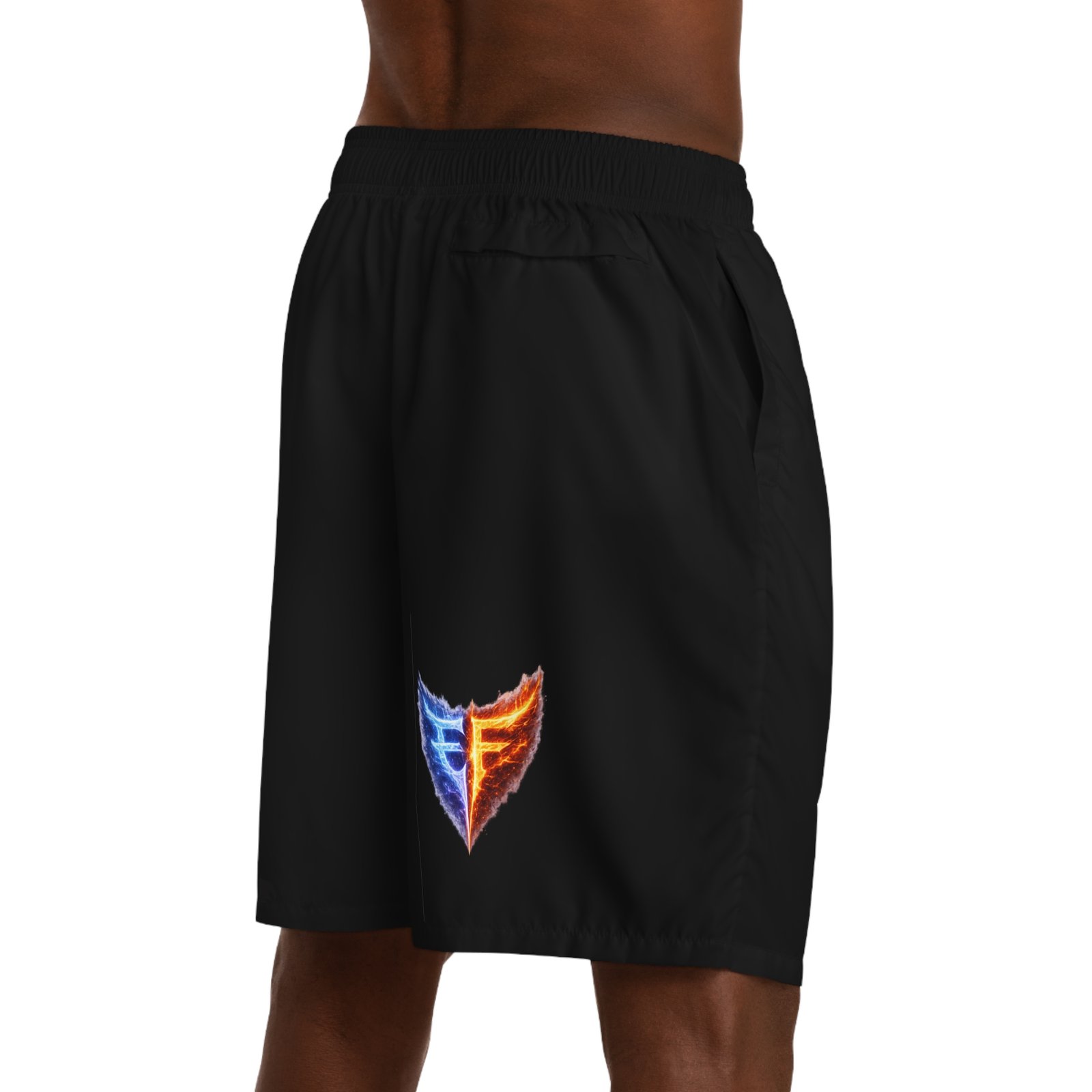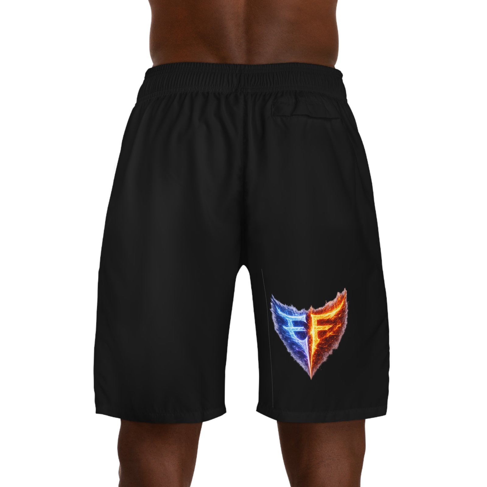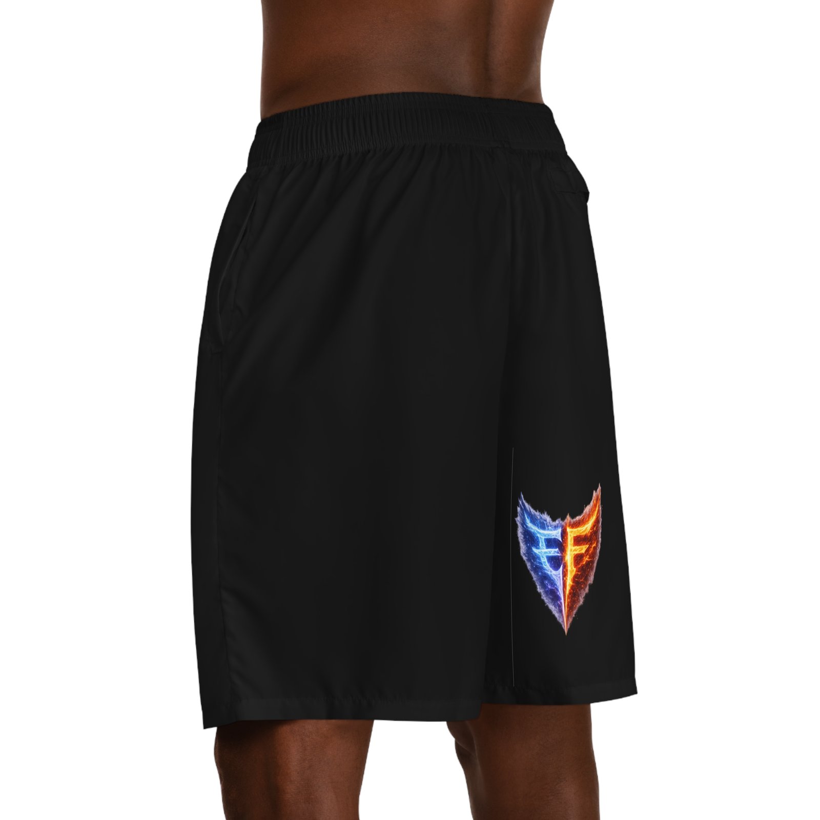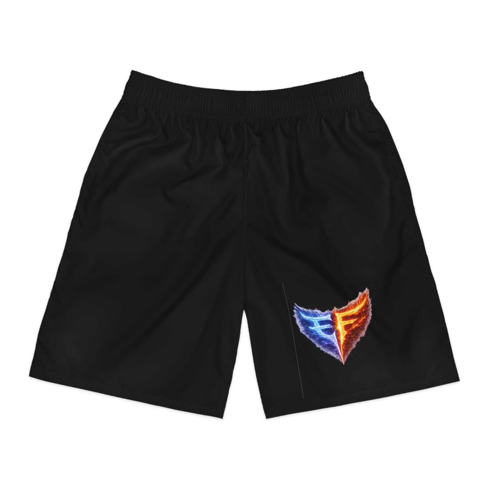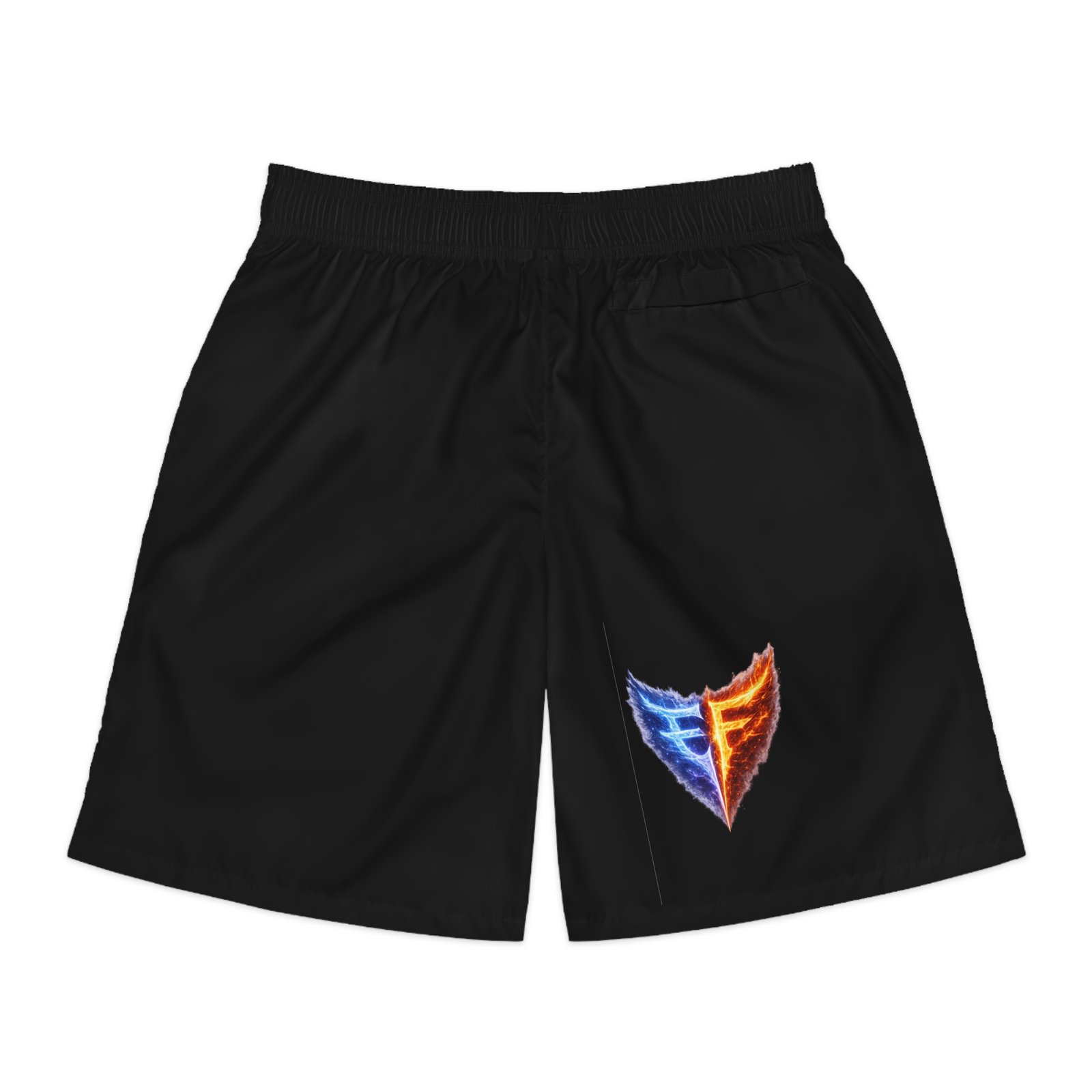 Lightweight jogger shorts built for movement and everyday wear. The breathable, moisture-wicking polyester keeps you dry whether you’re training or lounging; a soft elastic waistband with interior drawstring holds the fit in place without pinching. Deep side-slit pockets and a secure back pocket with Velcro give safe spots for keys, cards, and small devices — and the pocket interiors can be customized for a personal touch. The all-over print option allows the bold emblem to sit flush against a black canvas, giving a sporty, modern look that reads athletic and confident. Loose cut and fast-drying fabric make these shorts easy to grab on game day, at the gym, or during a long travel day.