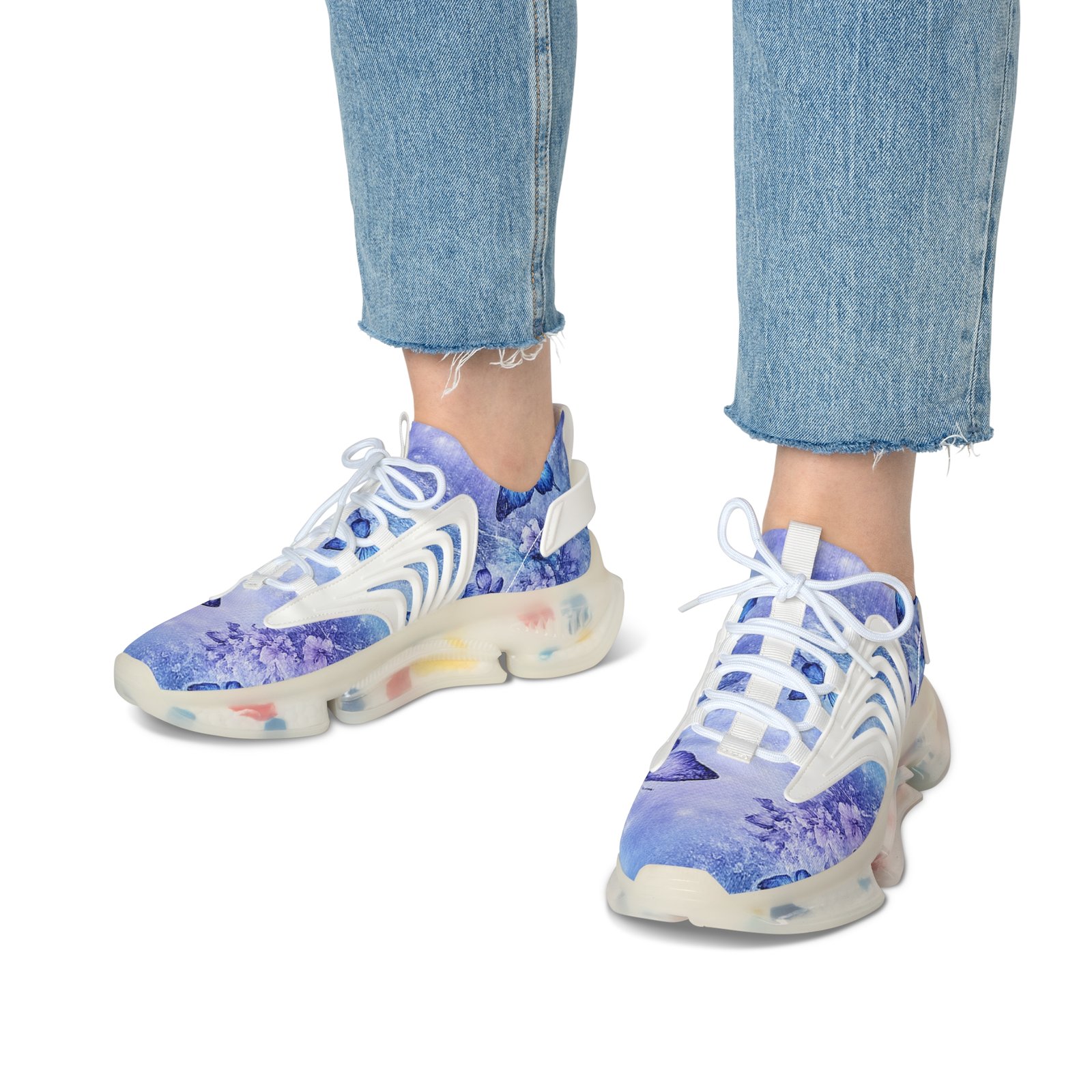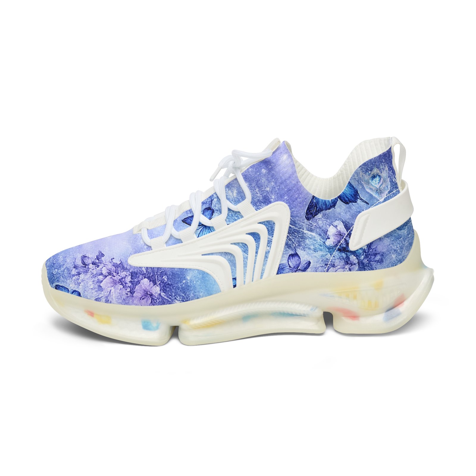Lightweight mesh sneakers that blend soft comfort with statement-making color. The airy mesh-knit upper breathes while the deodorant memory foam insole cushions every step and helps keep feet fresh. A flexible EVA shock-absorbing sole and TPU overlays give resilient support for day-long wear. The all-over floral-inspired print wraps the shoe for an expressive, artful look, with durable KPU accents that hold up in varied weather. Lace-up closure and choice of black or white detailing let you tune the contrast, while color-matched stitching keeps the finish clean. Wear them for long walks, weekend errands, or when you want a splash of serene, watercolor-style color in your outfit.
