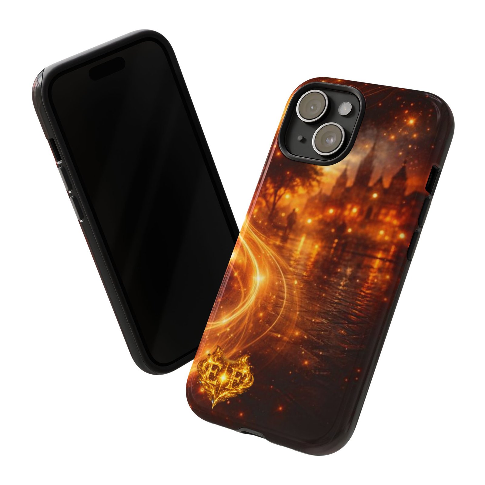 Warm, luminous, and protective — this phone case wraps your device in a shimmering city-at-night scene where golden light dances across water and streets. The dual-layer build cushions against drops while the glossy (or matte) printed surface preserves the rich, high-density wraparound artwork. It’s for people who carry a little evening magic with them: those who love nights filled with soft glows, quiet river walks, and stories whispered under lamplight. The subtle heart emblem and swirling trails of light add a personal, storybook touch that pairs nicely with evening strolls, date nights, or any outing when you want your phone to feel like a tiny keepsake of a luminous memory.
