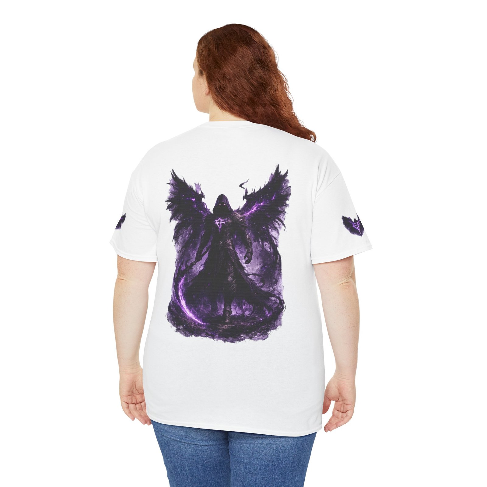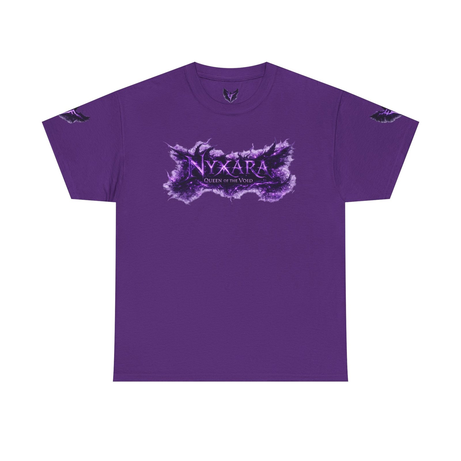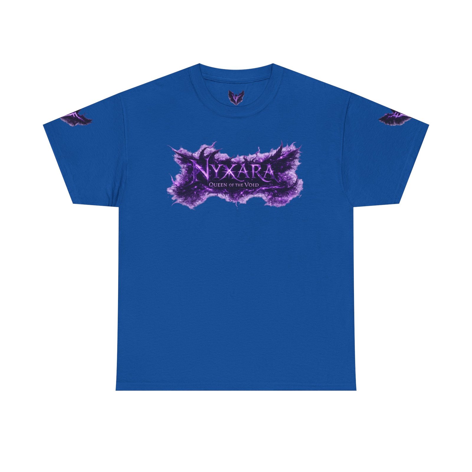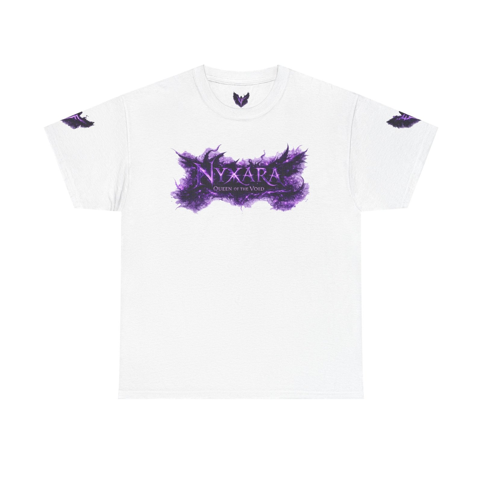 A soft, sturdy cotton tee that wears like a favorite from day one. The front shows a smoky purple sigil with the word “Nyxara” drifting in shadow; the back reveals a winged, hooded figure rising from a swirl of violet mist. Small matching motifs sit on the sleeves and inside the neck for a cohesive, lore-driven look. The medium-weight cotton drapes comfortably while holding crisp, detailed prints that keep their depth wash after wash. Wear it layered under a jacket for game nights, at late-night meetups, or anywhere you want to bring a touch of mysterious, fantasy energy to your outfit.