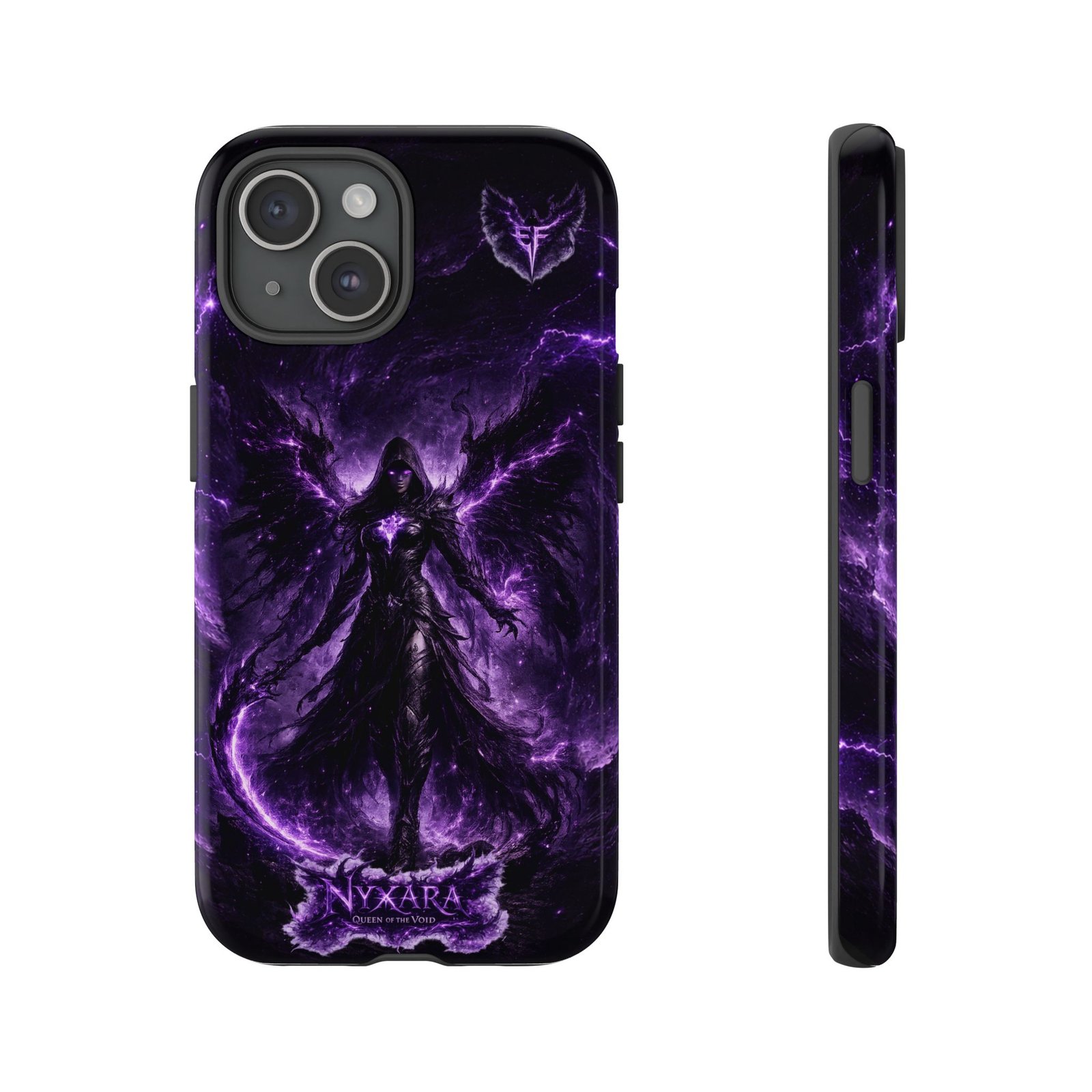 A striking protective phone case that wraps your device in dark, otherworldly energy. Deep purples and shadowed blacks form the silhouette of a cloaked figure surrounded by crackling arcane light — a look that reads like a page from a grim fantasy bestiary. The dual-layer construction pairs a rigid polycarbonate shell with a TPU silicone liner for secure shock absorption, while the 3D full-wrap print keeps the design vivid across edges. Weather-resistant inks and UV protection help preserve the dramatic tones, and clear port openings keep everyday use seamless. This case feels at home on late-night gaming runs, convention floors, or whenever you want a bold, gothic statement on your phone.