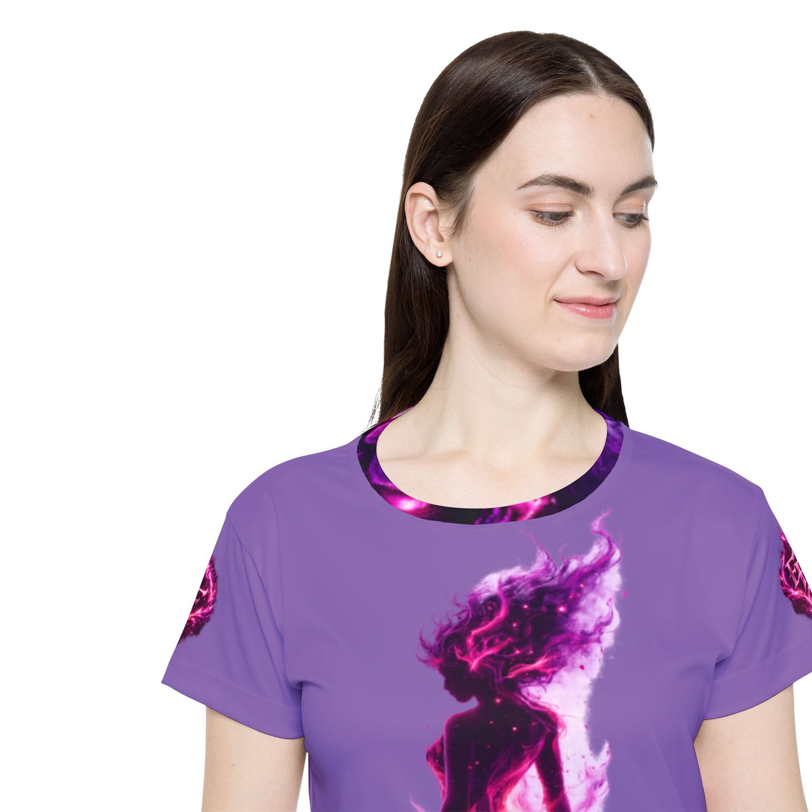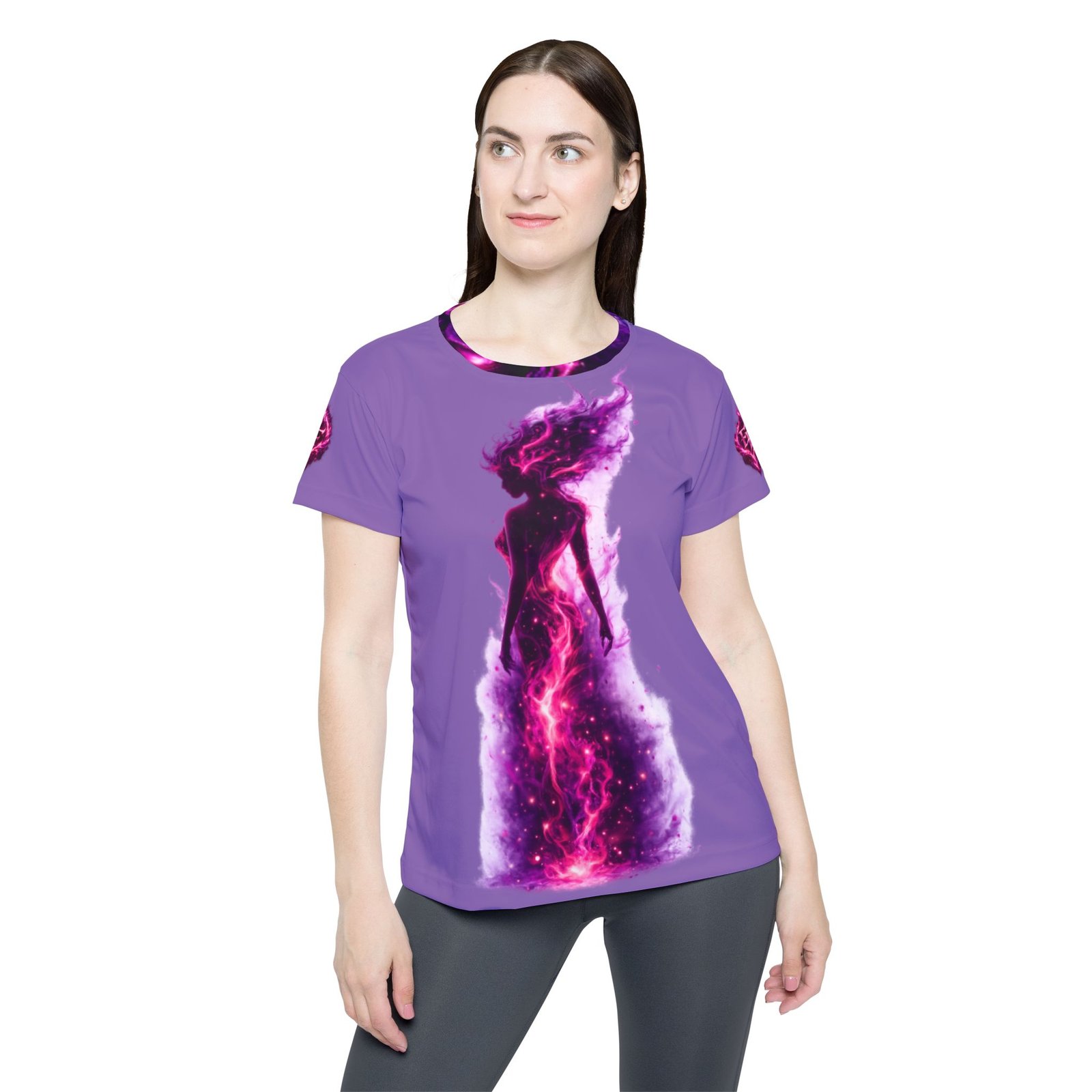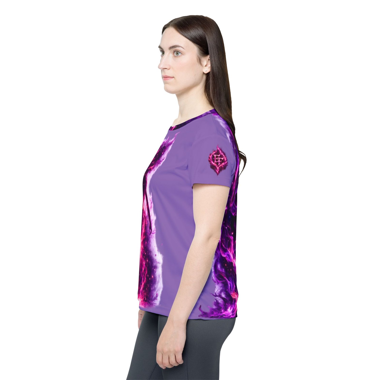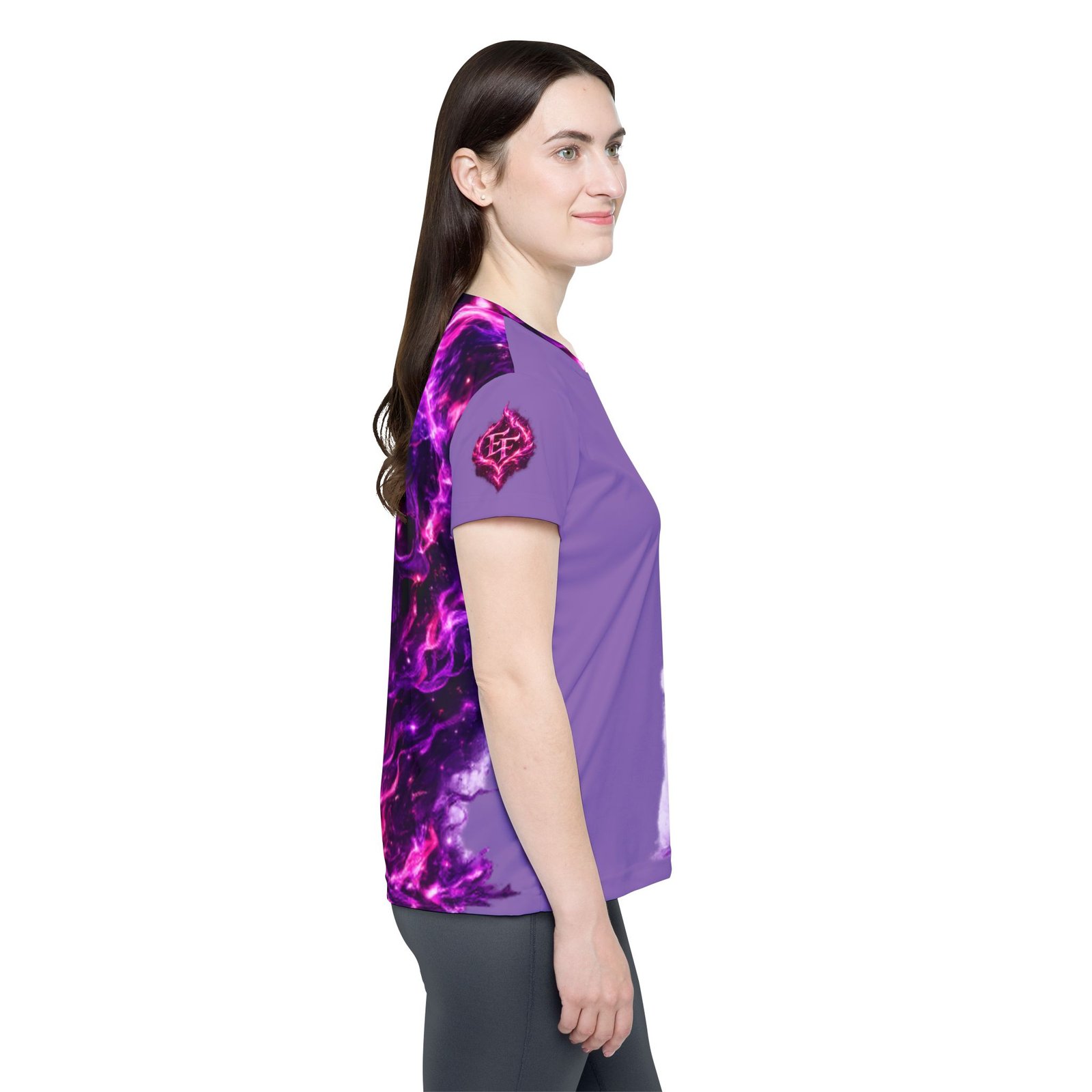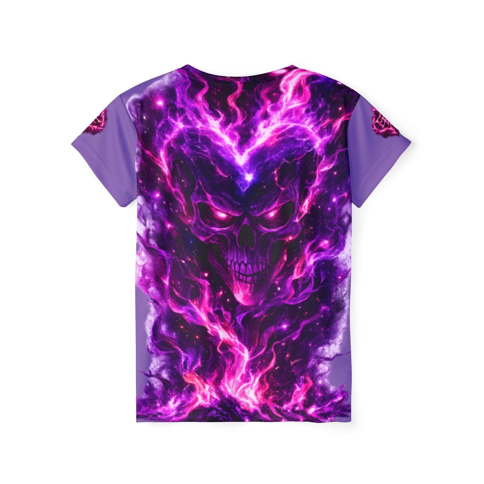 A bold, lightweight sports jersey that fuses edgy fantasy with athletic performance. The all-over print showcases a vivid, magenta-and-purple spirit figure on the front and a roaring spectral skull in swirling flames across the back — visuals that feel like channeling raw energy into motion. The breathable, moisture-wicking polyester keeps skin dry during runs, gym sessions, or outdoor practice, while the 1×1 ribbed collar and armholes stretch on and spring back for a clean fit. Colors stay intense thanks to modern printing, so the design stays striking wash after wash. Wear it on training days, at late-night rides, or when you want your workout wardrobe to reflect a fearless, otherworldly vibe.