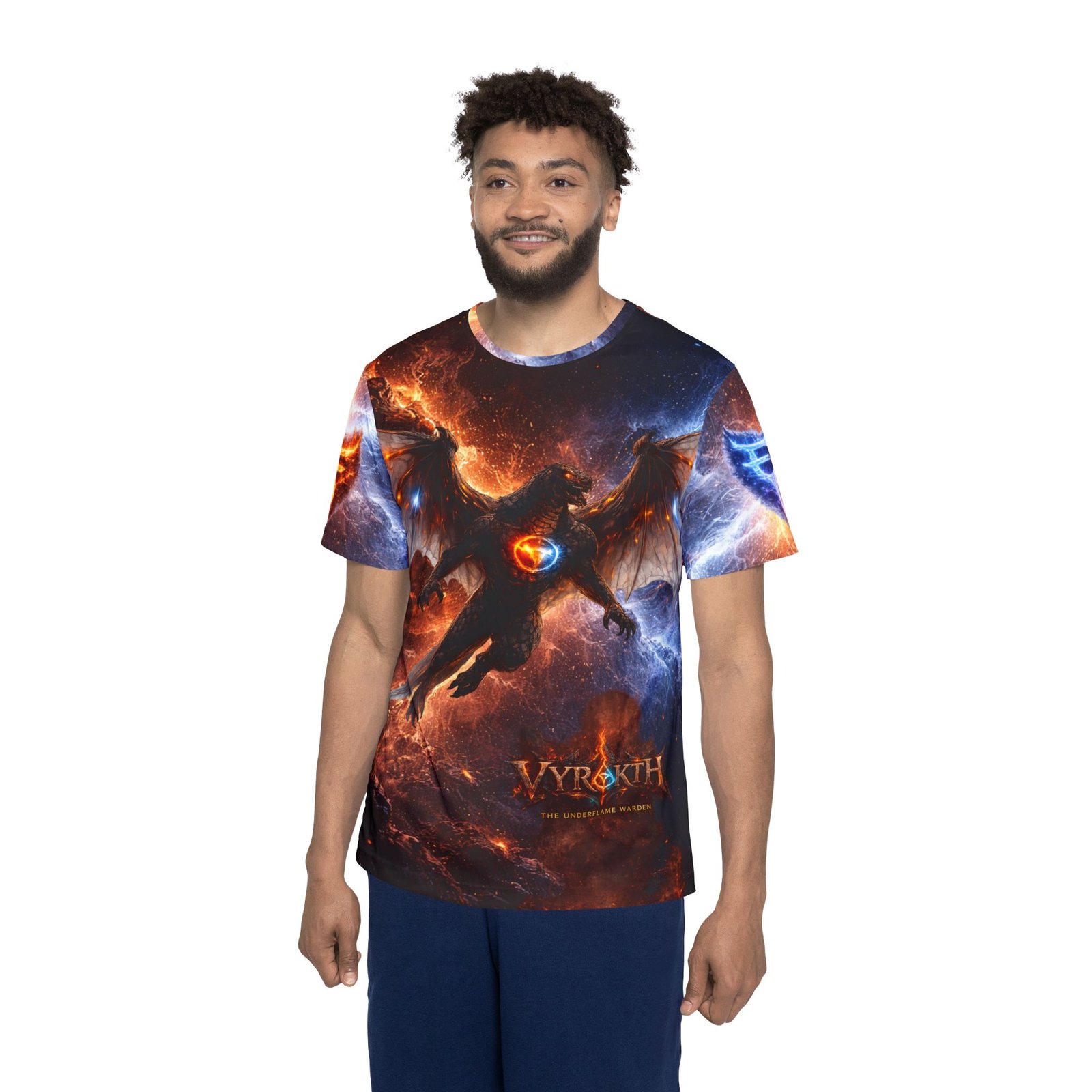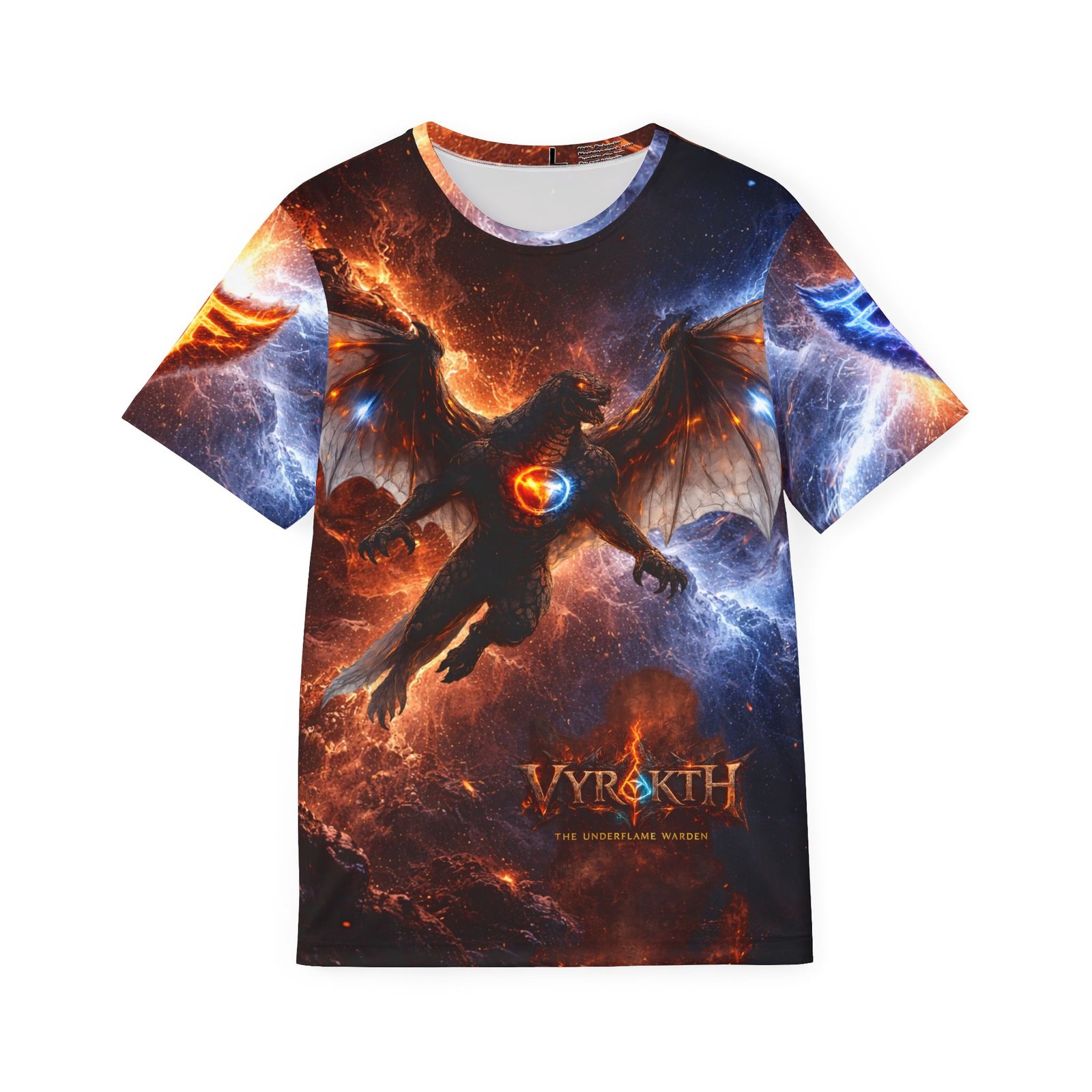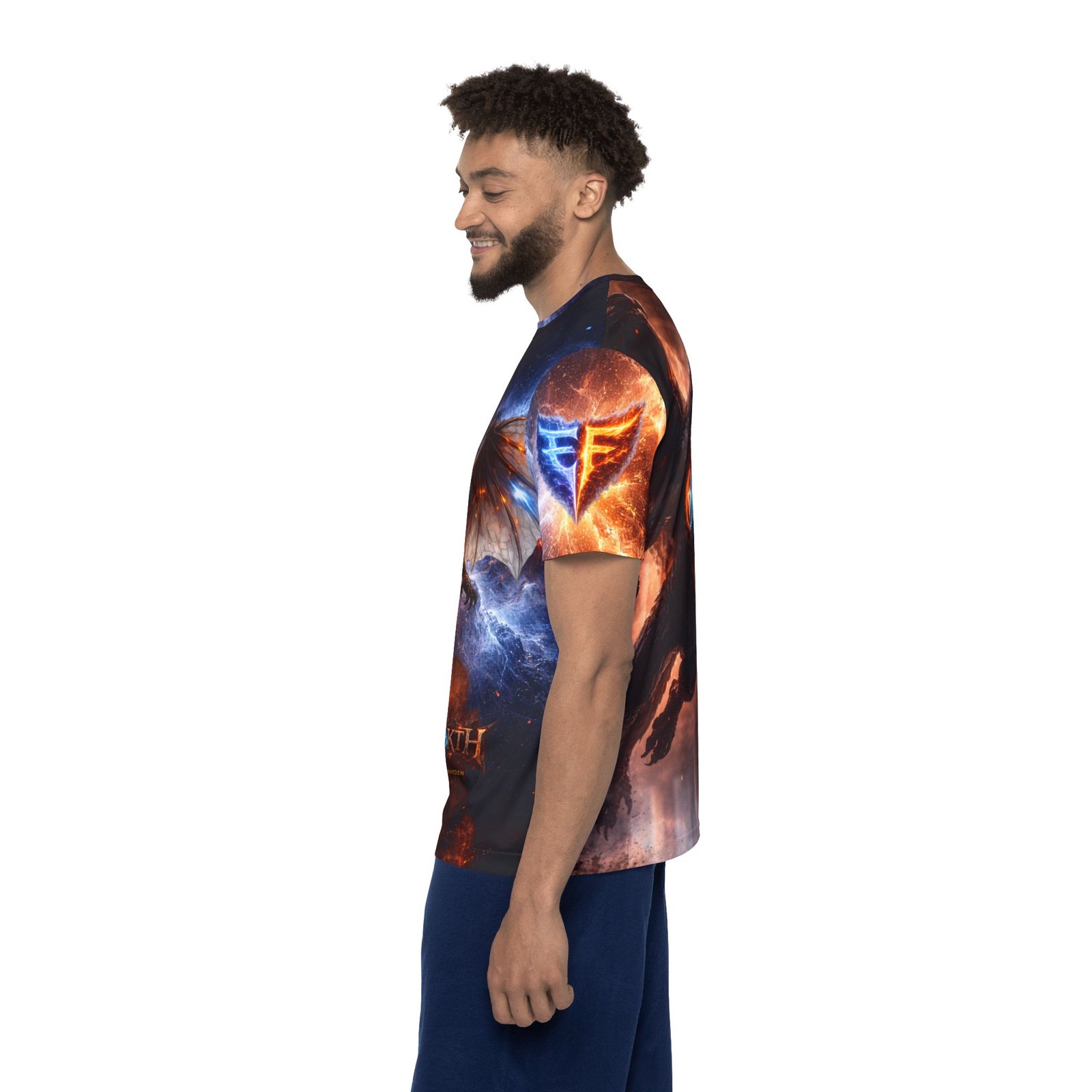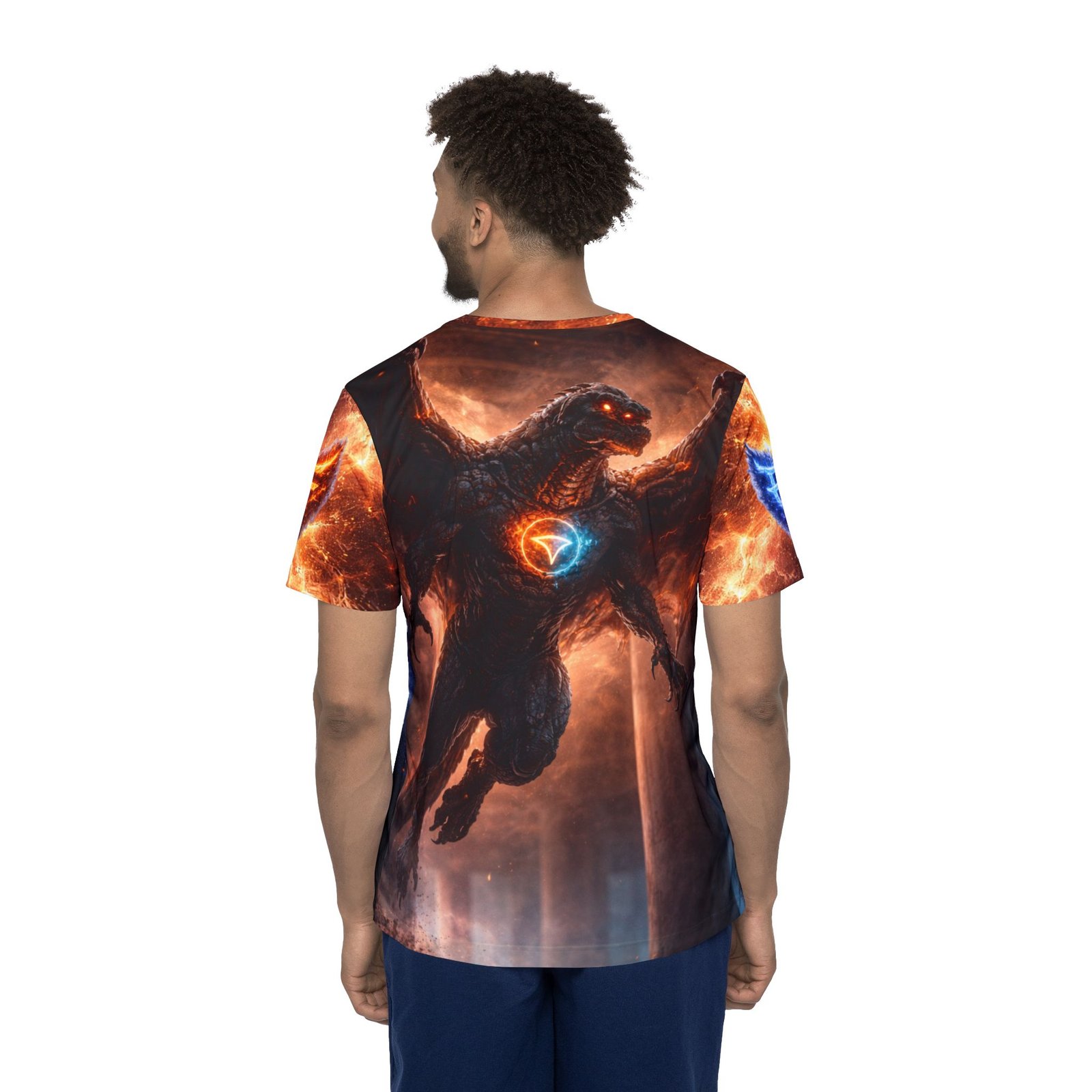 This all-over print sports jersey brings high-energy fantasy to everyday wear. A colossal dragon bursts through storm and flame across the front and back, its glowing core and embered wings rendered in vivid, saturated color. Lightweight, breathable fabric moves with you during intense sessions or long days on the go. The classic fit and ribbed collar keep the silhouette familiar while the moisture-wicking polyester keeps sweat at bay. Wear it when you want to channel that fierce, otherworldly momentum—training, gaming nights, conventions, or mornings when you need to feel unstoppable.