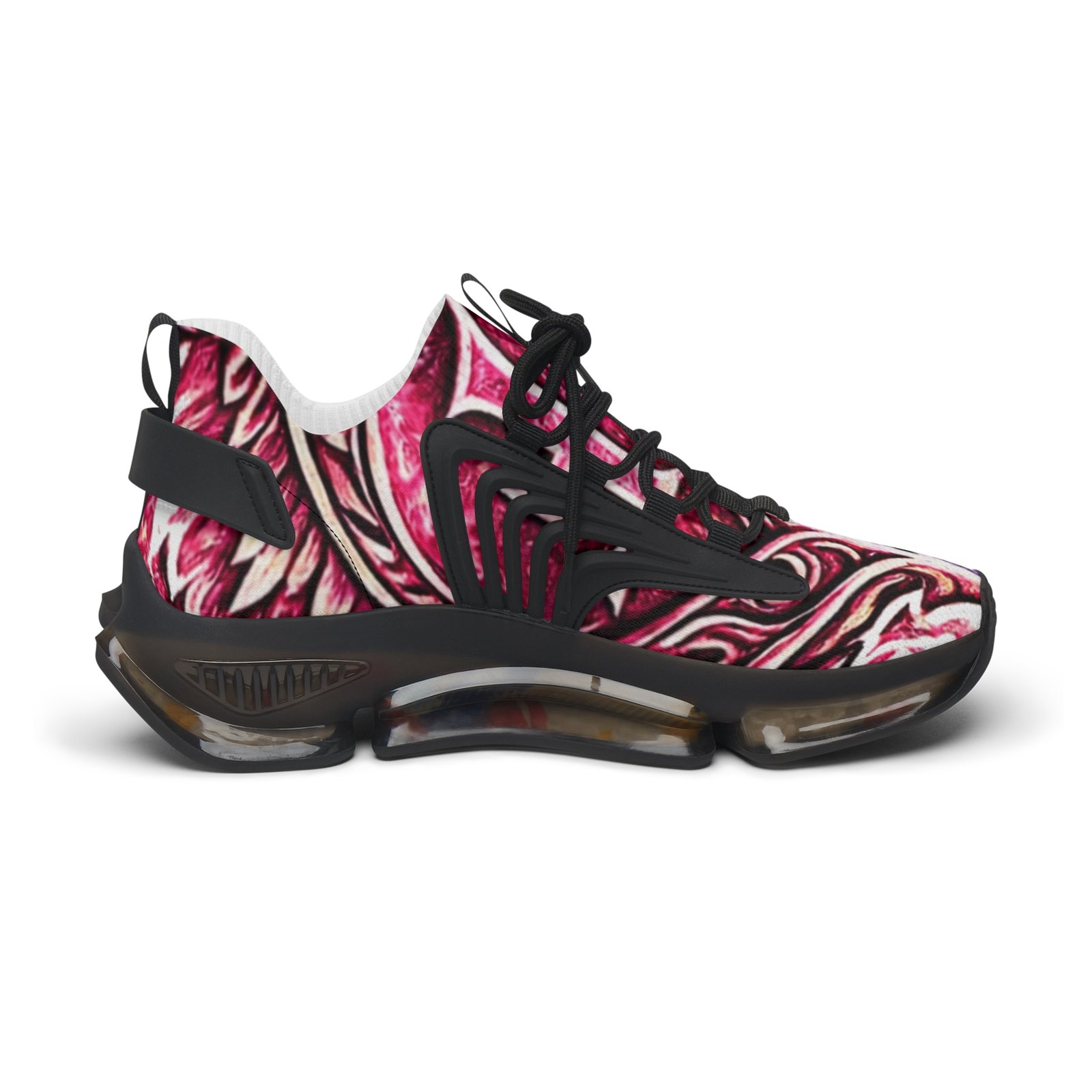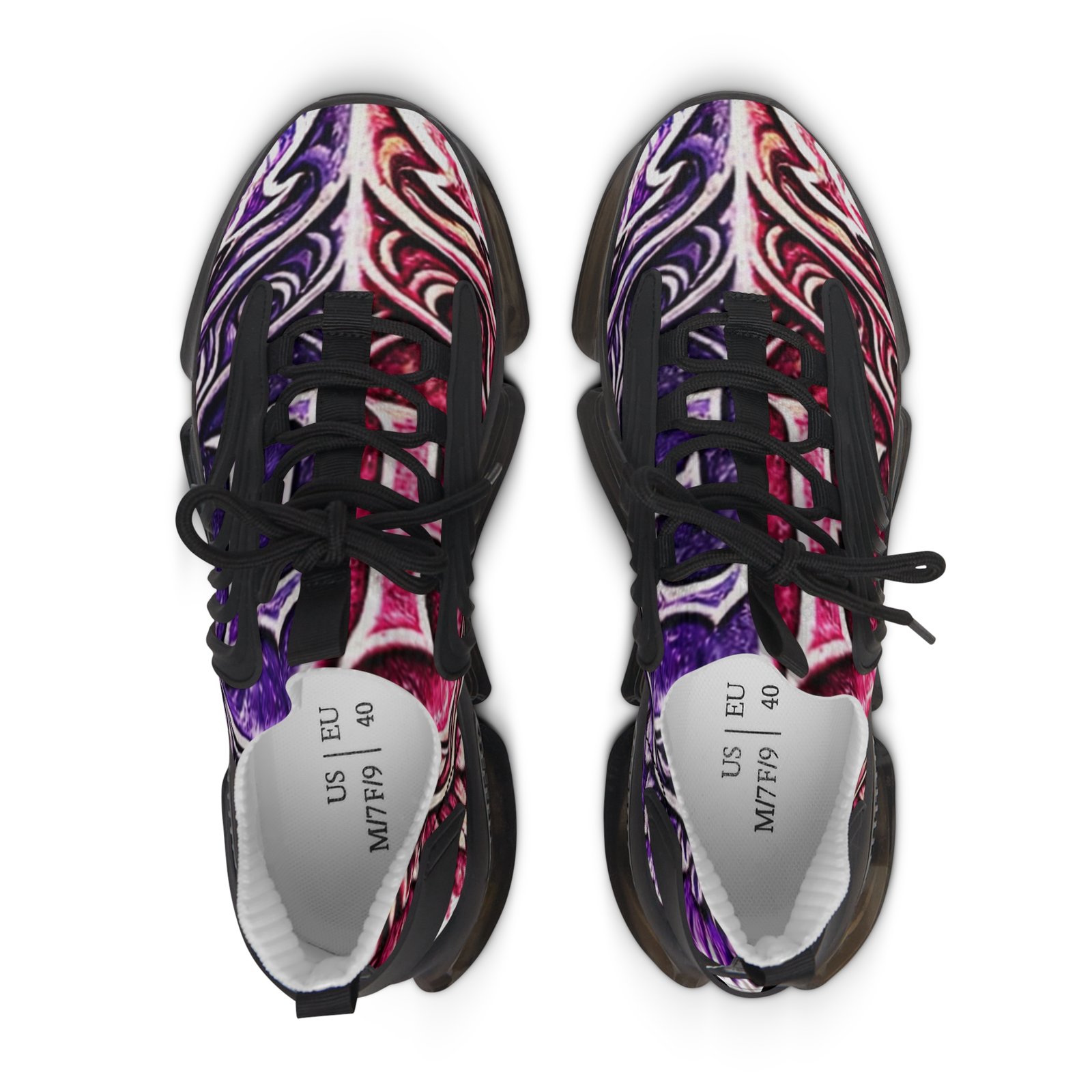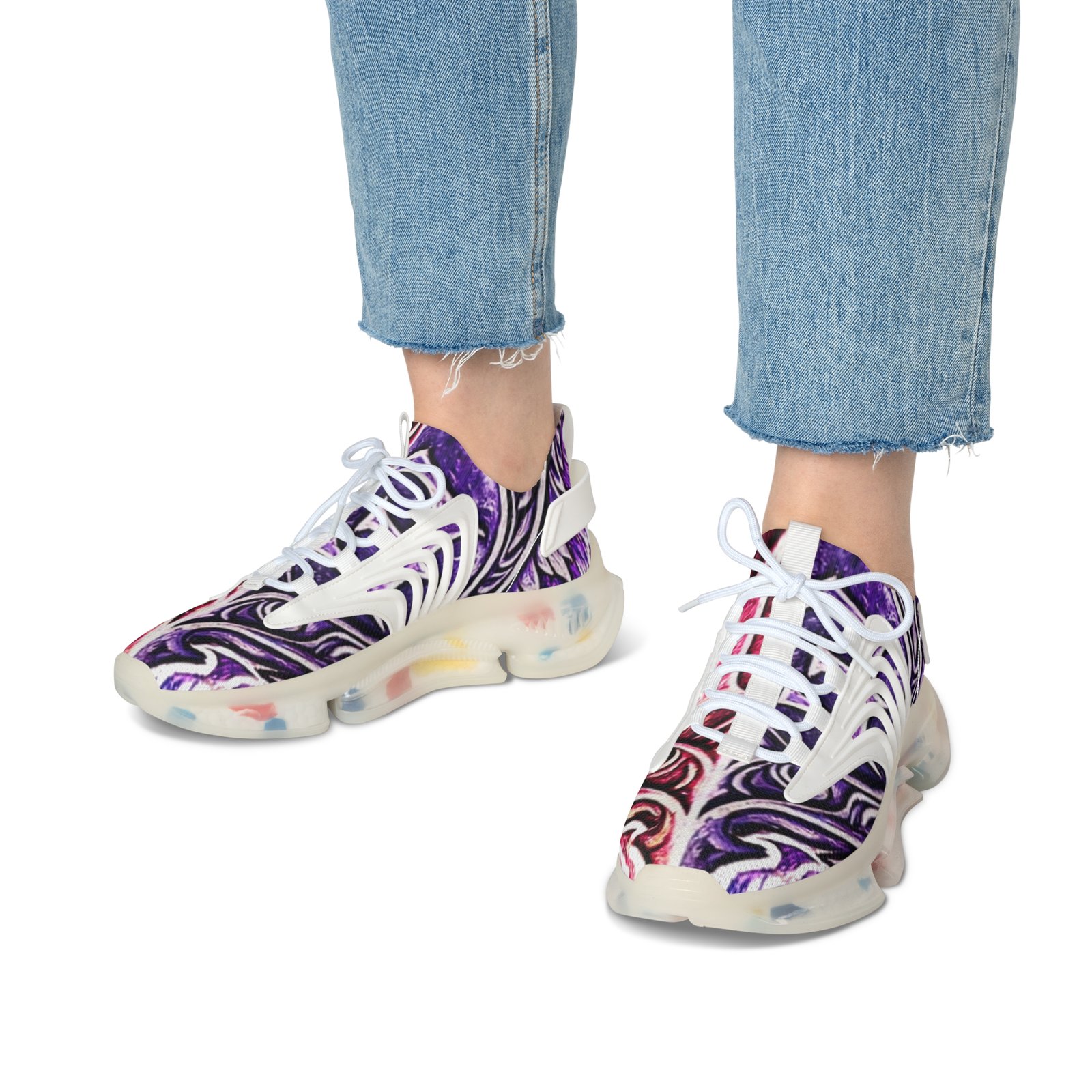 These lightweight mesh sneakers bring bold, artful energy to everyday steps. The all-over print ripples across a breathable knit upper, while KPU accents add sculptural detail and weather-proof durability. Cushioning comes from deodorant memory foam insoles and an EVA shock-absorbing sole, so long walks and busy days stay comfortable without overheating. Lace-up fit and contrasting black or white trim let you dial the look to your wardrobe. Wear them to add a vivid, modern twist to casual outfits or to keep your feet fresh during long city strolls and weekend adventures.
