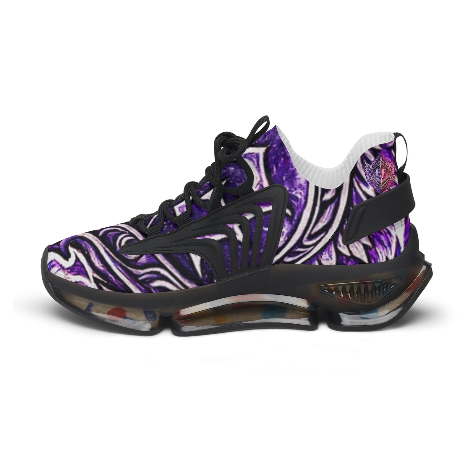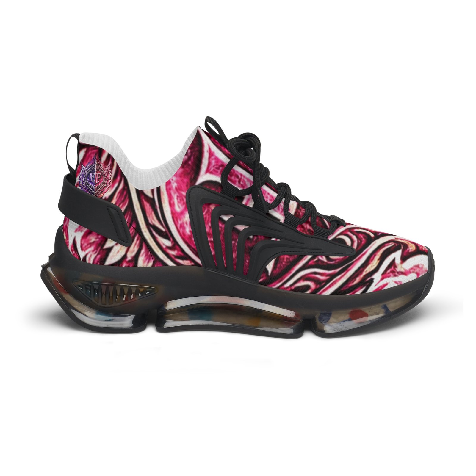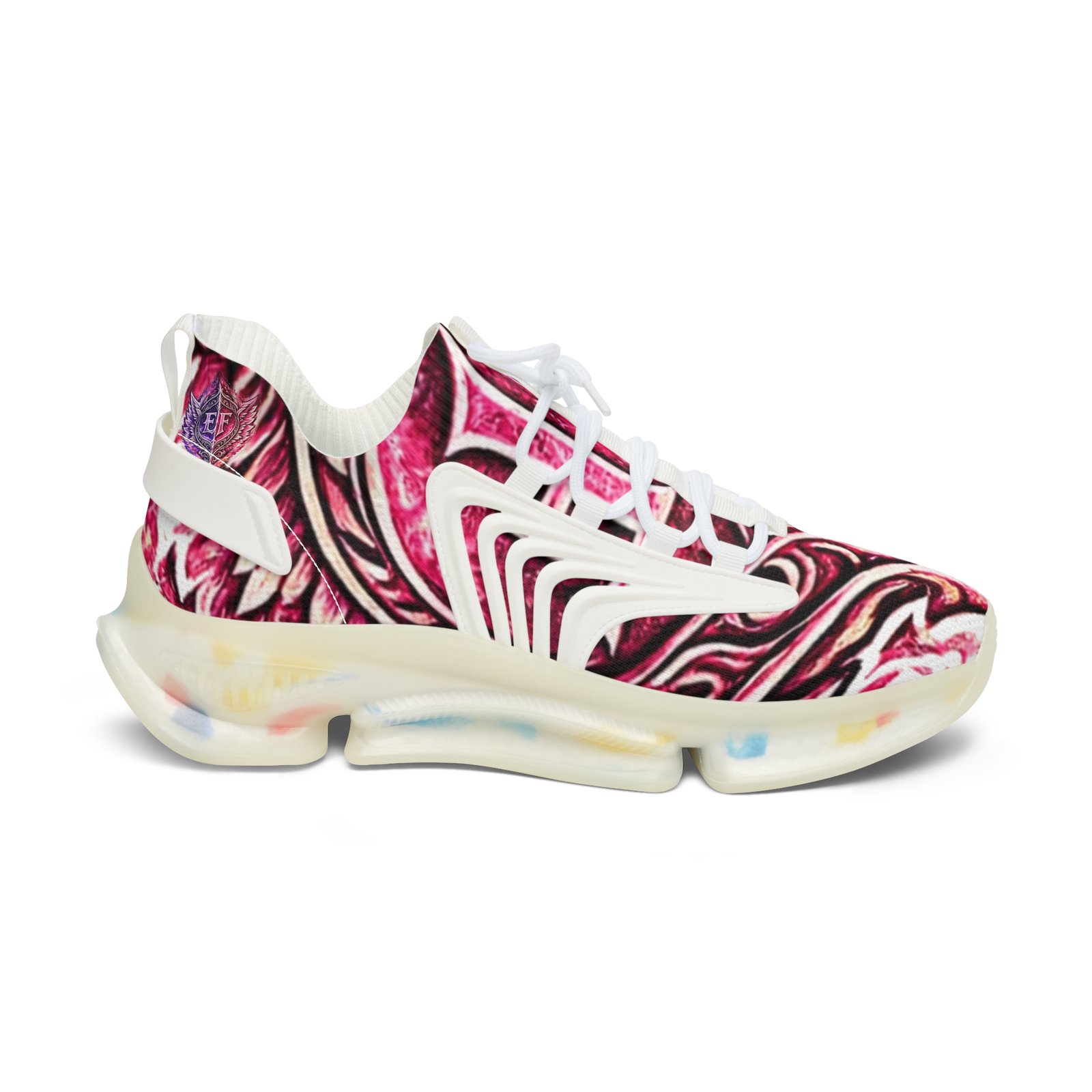 These lightweight mesh sneakers bring bold, artful energy to everyday steps. The all-over print ripples across a breathable knit upper, while KPU accents add sculptural detail and weather-proof durability. Cushioning comes from deodorant memory foam insoles and an EVA shock-absorbing sole, so long walks and busy days stay comfortable without overheating. Lace-up fit and contrasting black or white trim let you dial the look to your wardrobe. Wear them to add a vivid, modern twist to casual outfits or to keep your feet fresh during long city strolls and weekend adventures.