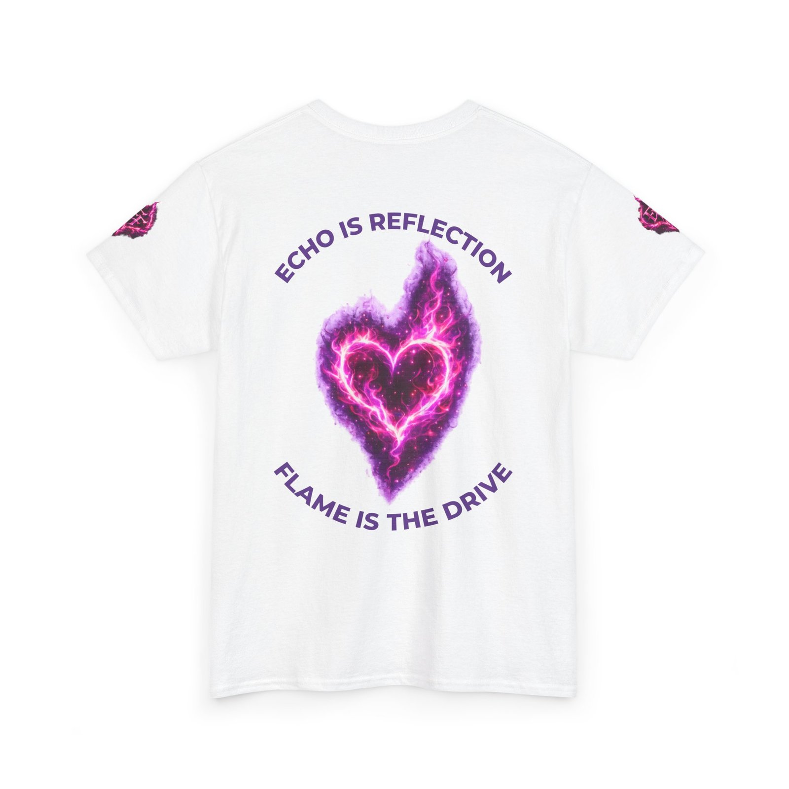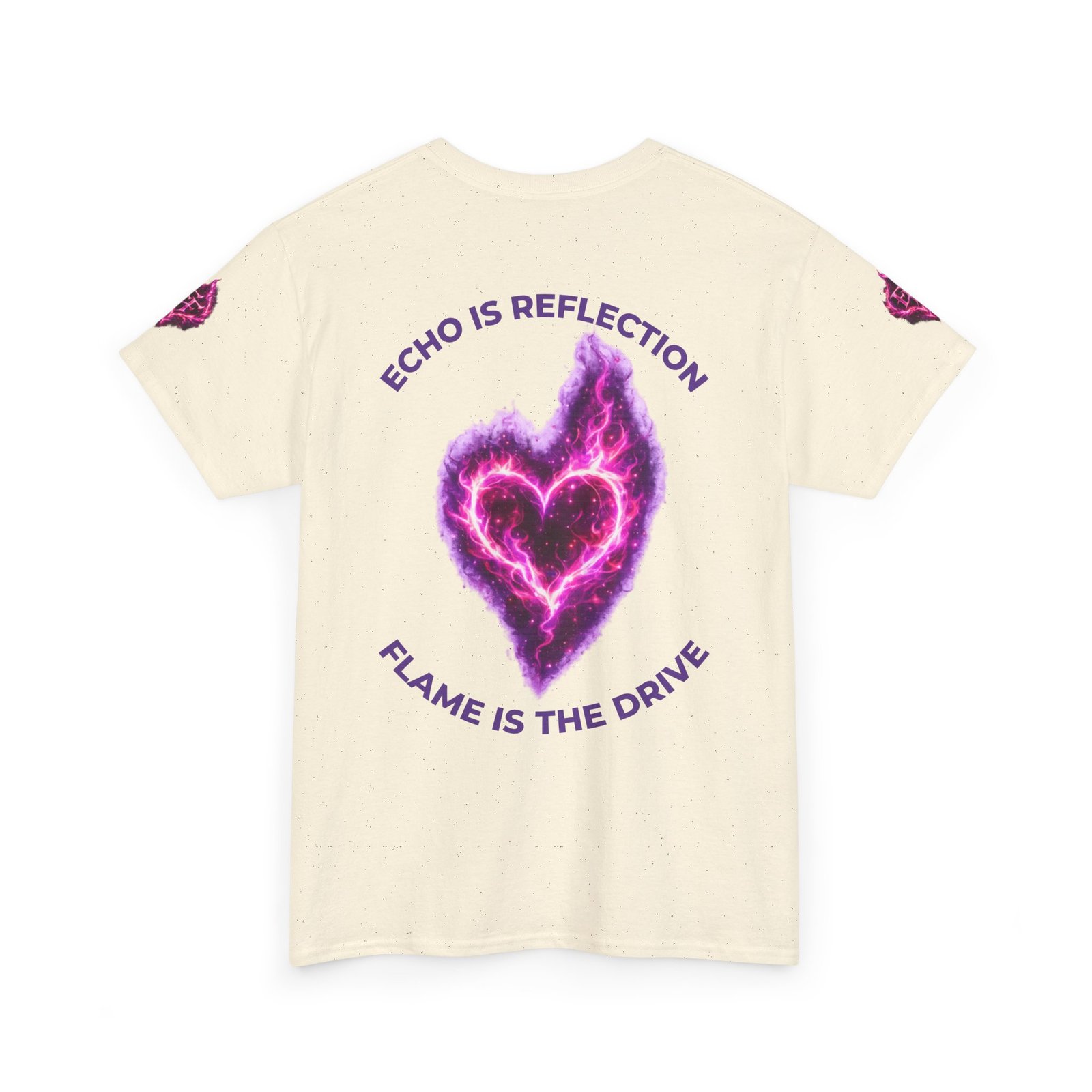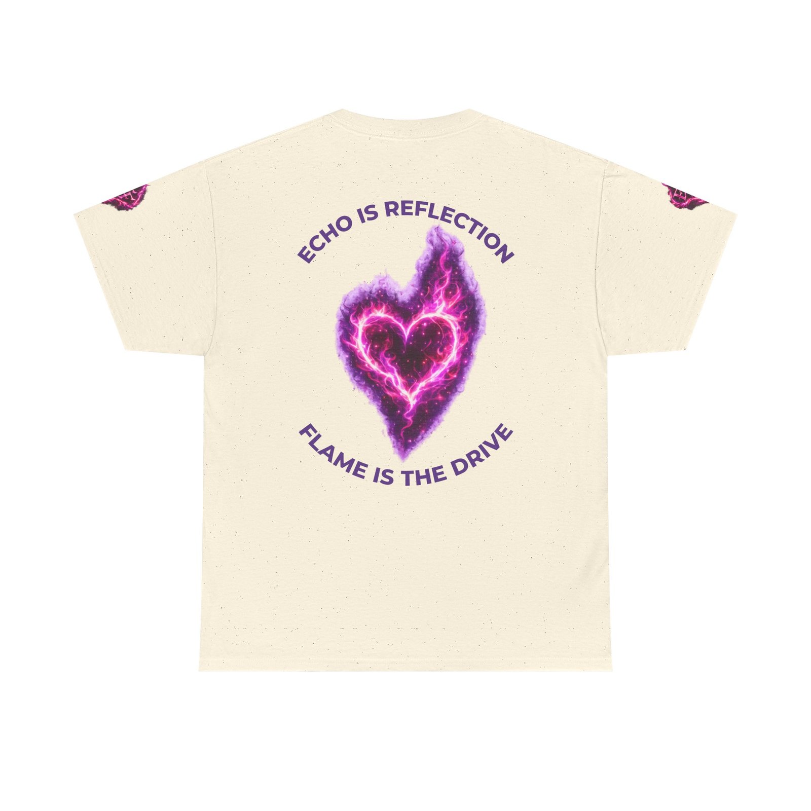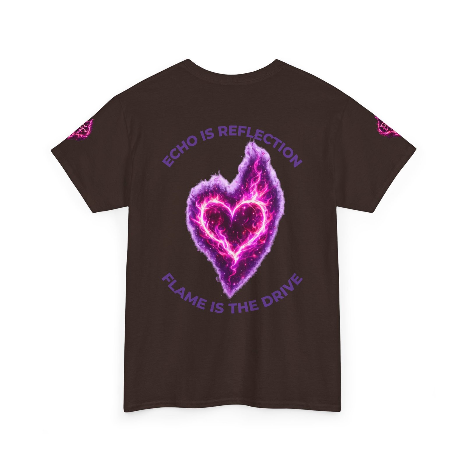 This tee feels like wearing a pulse of starlight. A soft, sturdy cotton canvas carries vibrant magenta-and-violet graphics: a smoldering heart on the chest and a silhouette of a fiery figure on the back, both rendered like cosmic flames. The imagery reads as bold and otherworldly — equal parts galaxy energy and raw emotion — made for someone who wants their outfit to tell a story without saying a word. The classic crew neck and relaxed fit let the art take center stage while staying comfortable for all-day wear. It’s breathable, responsibly sourced, and finished with tear-away labeling so nothing distracts from the look or the feel.