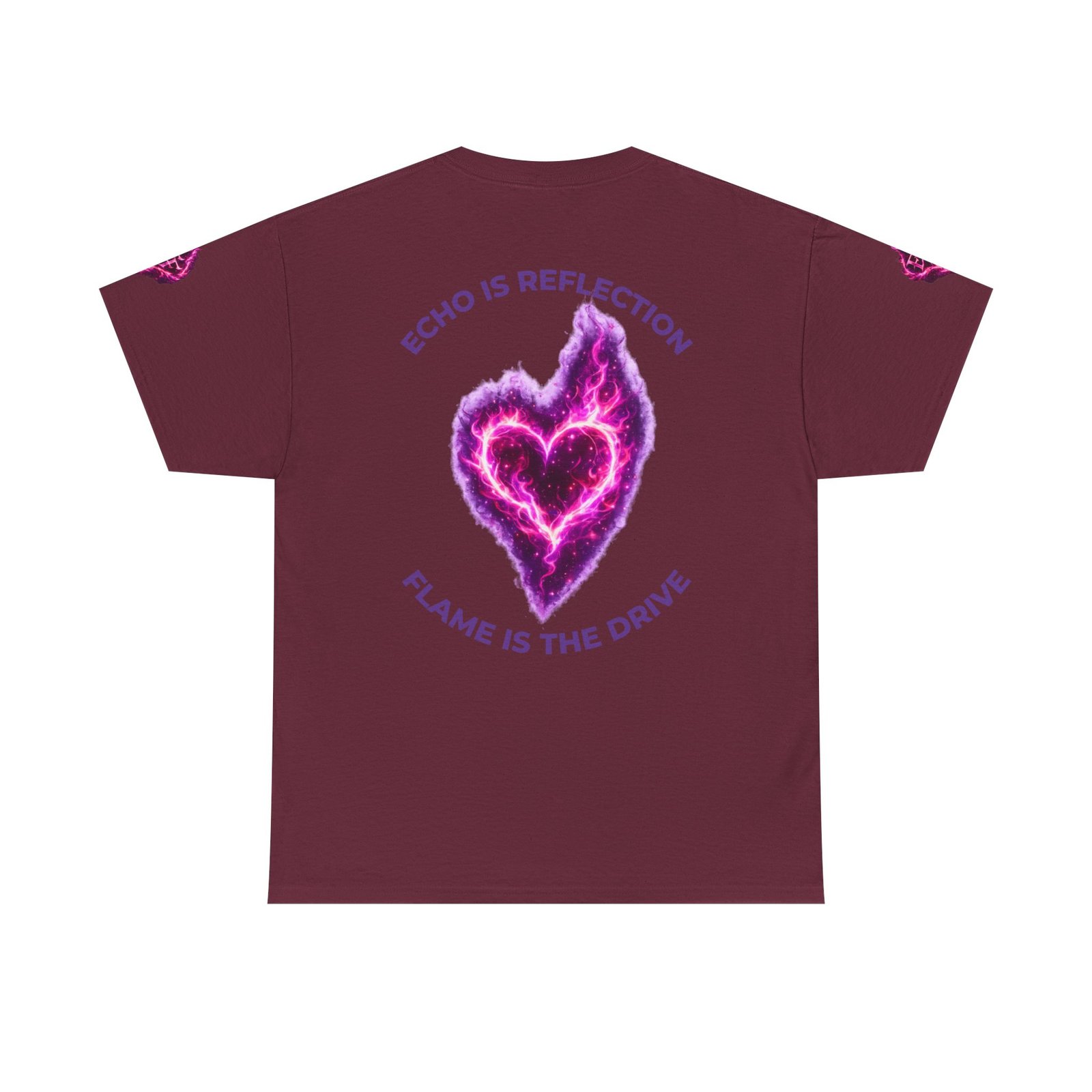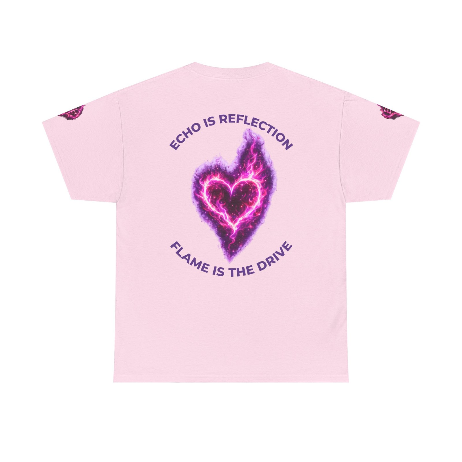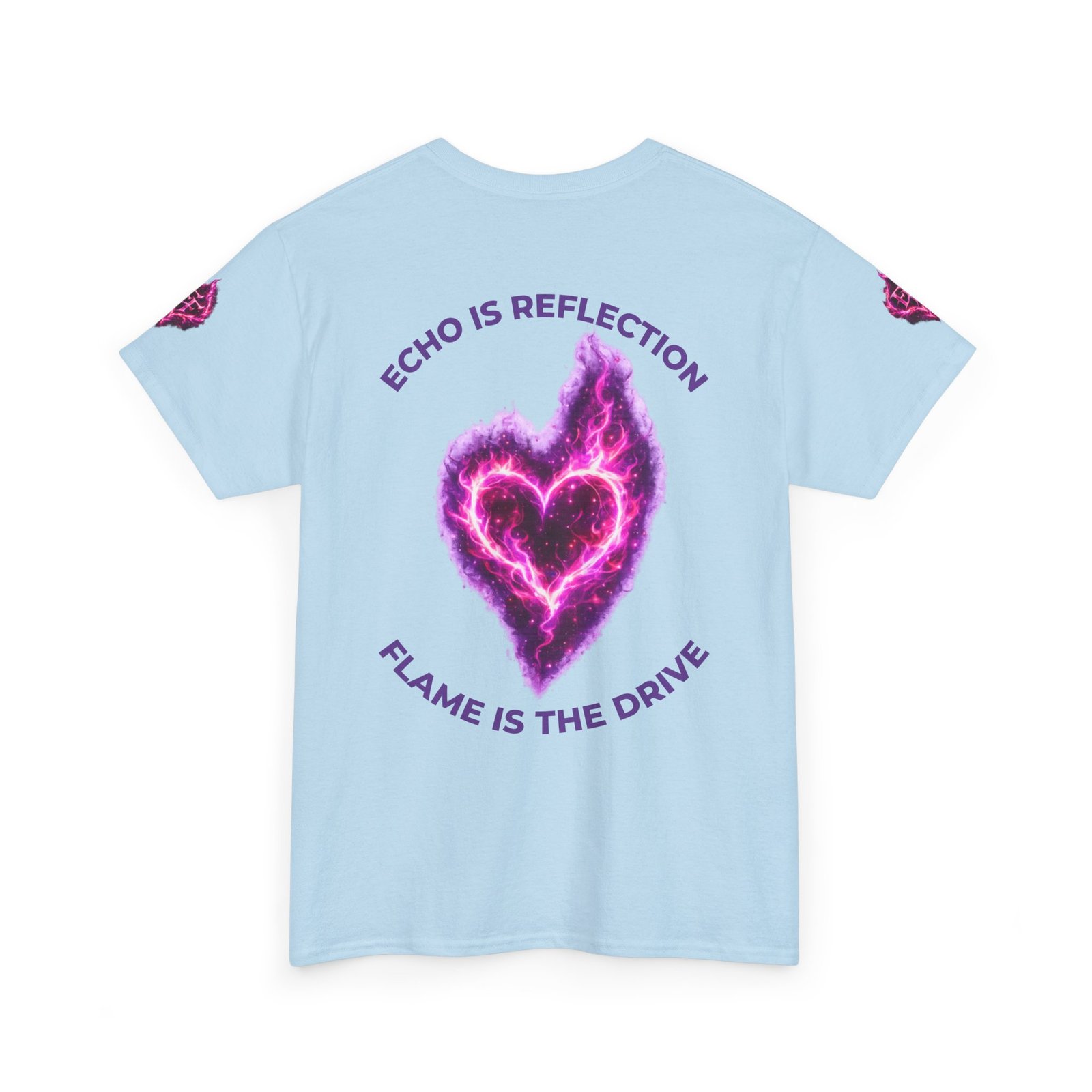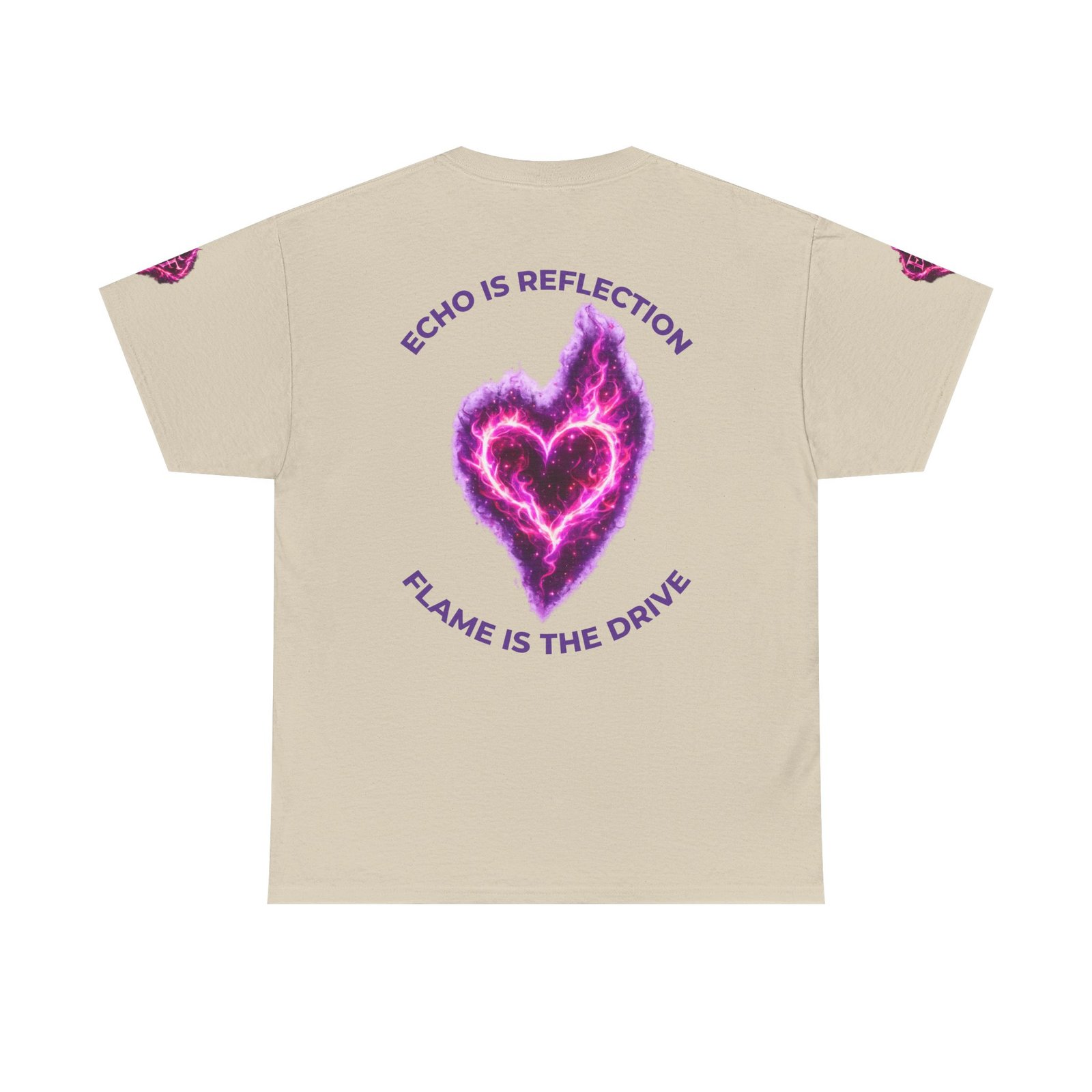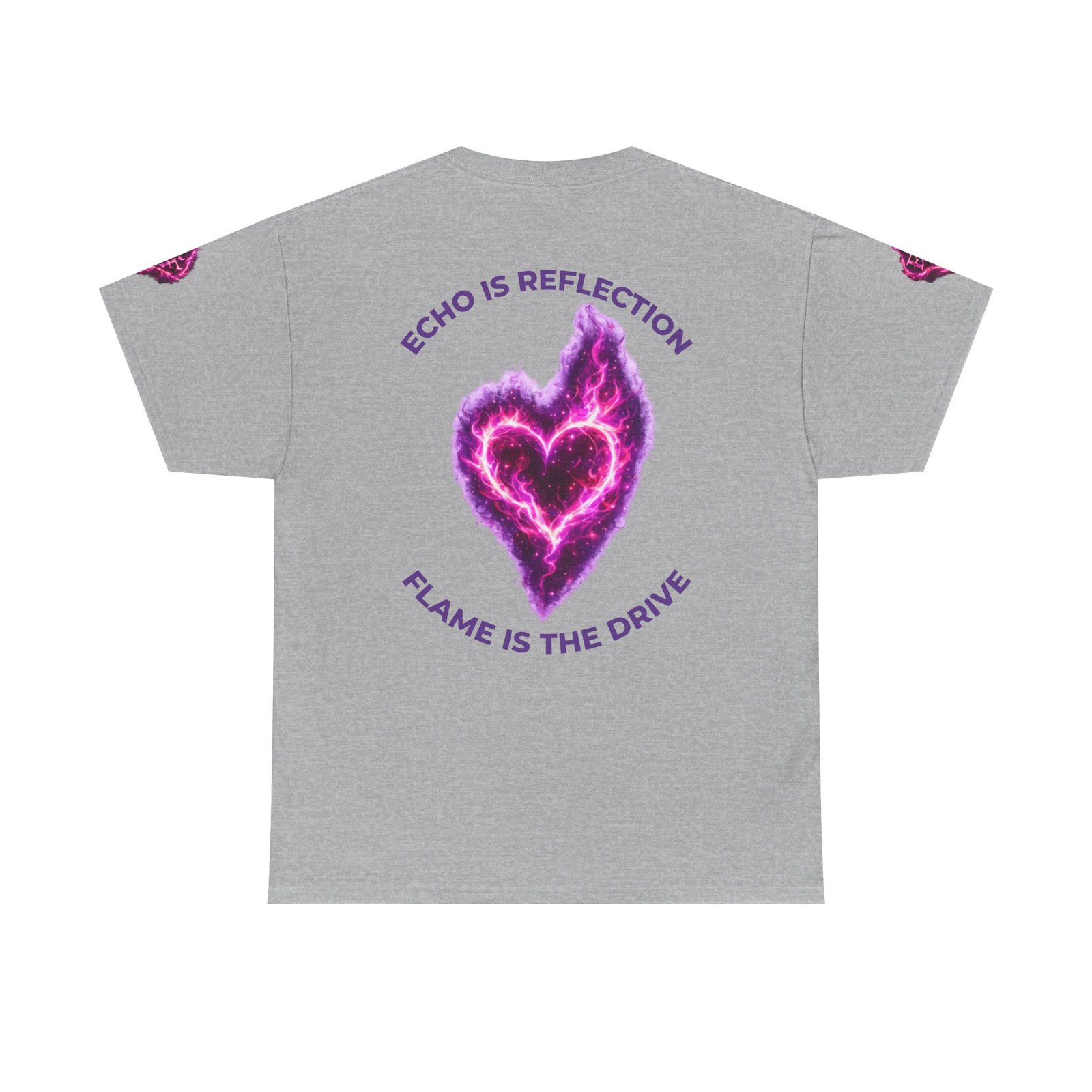 This tee feels like wearing a pulse of starlight. A soft, sturdy cotton canvas carries vibrant magenta-and-violet graphics: a smoldering heart on the chest and a silhouette of a fiery figure on the back, both rendered like cosmic flames. The imagery reads as bold and otherworldly — equal parts galaxy energy and raw emotion — made for someone who wants their outfit to tell a story without saying a word. The classic crew neck and relaxed fit let the art take center stage while staying comfortable for all-day wear. It’s breathable, responsibly sourced, and finished with tear-away labeling so nothing distracts from the look or the feel.